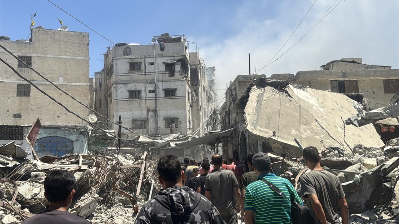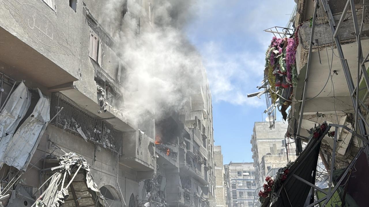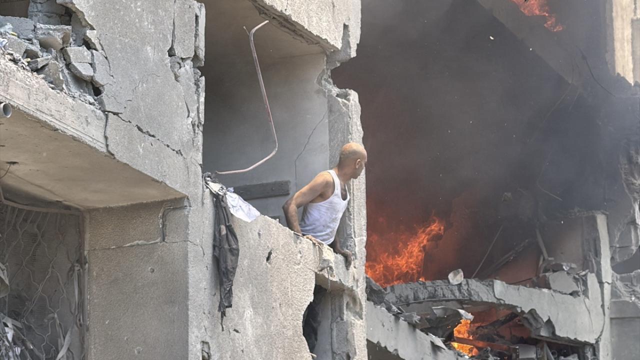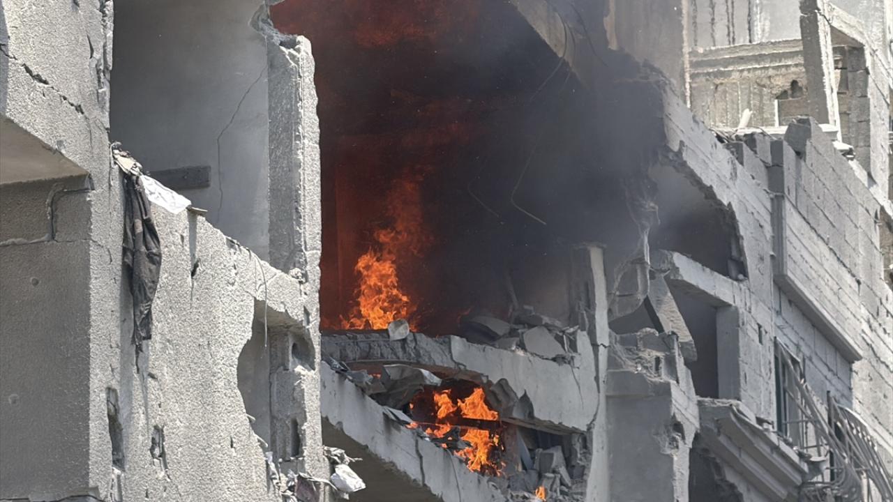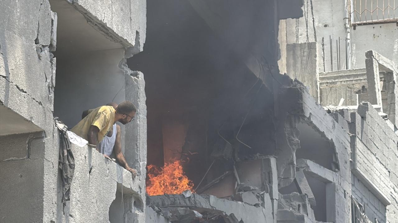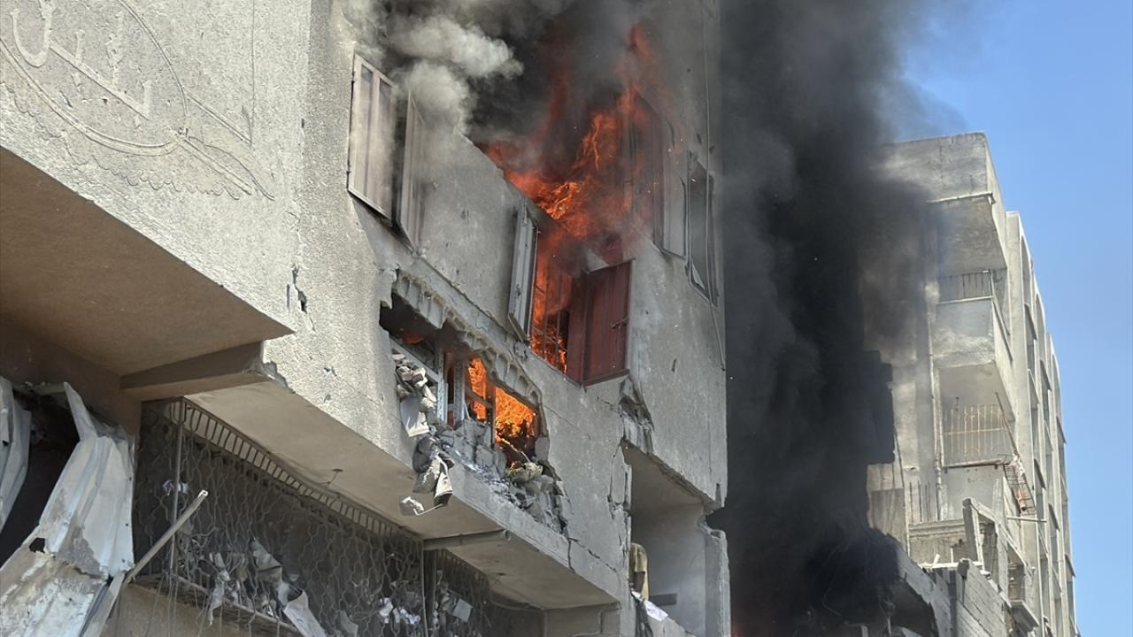 İsrail ordusunun Gazze kentinin Ömer Muhtar Caddesi’nde önceden uyarı yapılan El-Zaviye Çarşısı'nda bulunan bir ticari binaya düzenlediği saldırıda yangın çıktı.