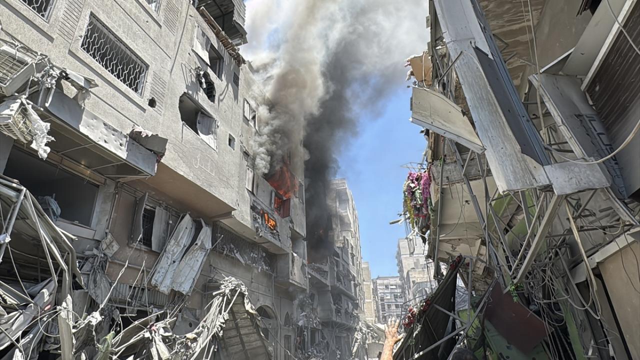 Gazze’de ticari bina ve konut hedef alındı, yangın ve ağır hasar meydana geldi