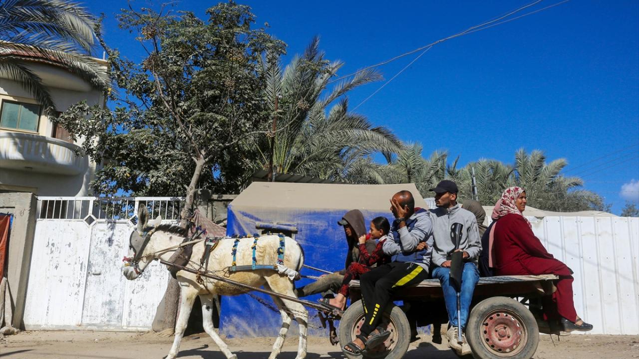 Gazze’nin orta kesiminde yer alan Deyr Belah kentindeki Filistinliler, ulaşım aracı olarak at ve eşek arabaları kullanıyor.