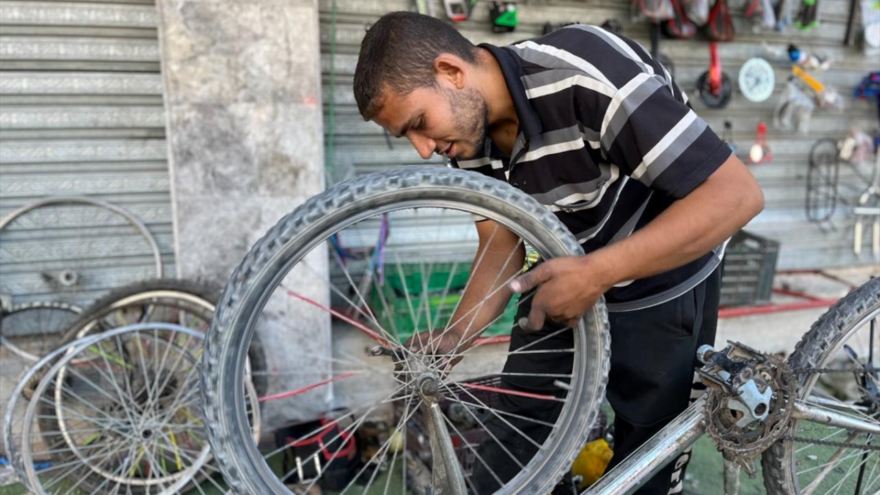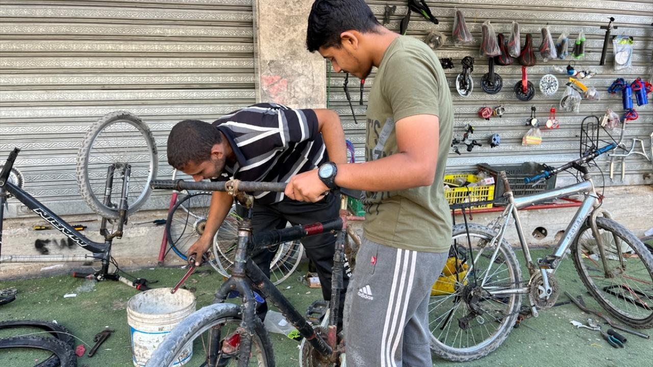 İsrail'in abluka altındaki Gazze Şeridi'ne yönelik acımasız saldırıları devam ederken bölgeye uygulanan tam ambargonun ortaya çıkarttığı yakıt krizi sebebiyle Gazzeliler bisiklet kullanmaya başladı