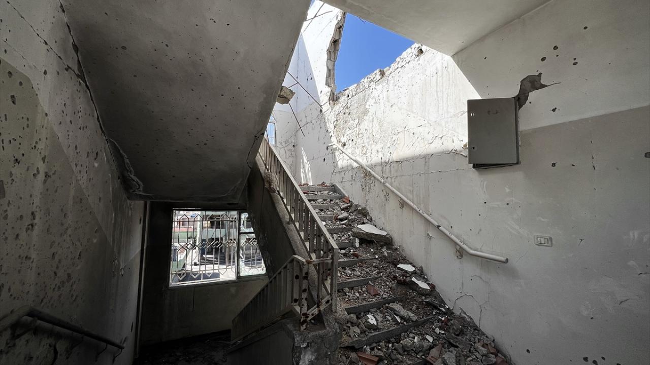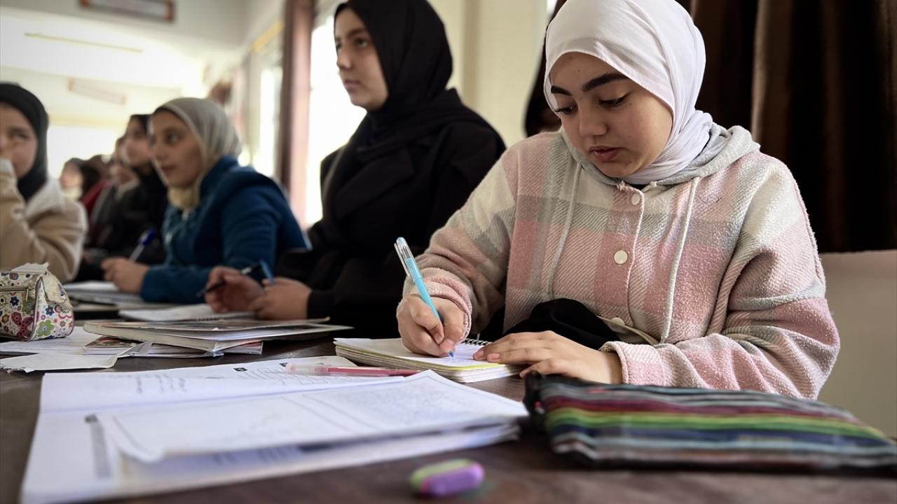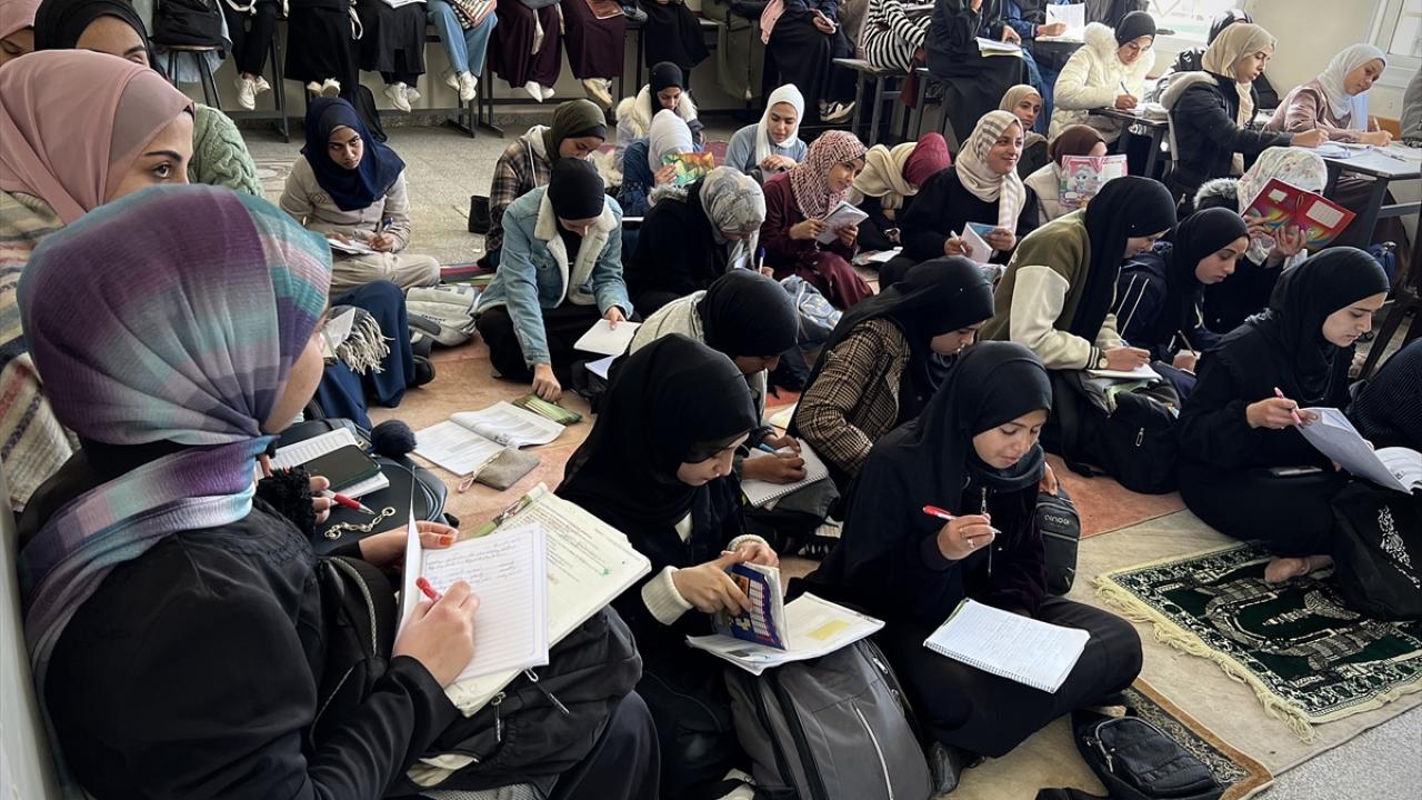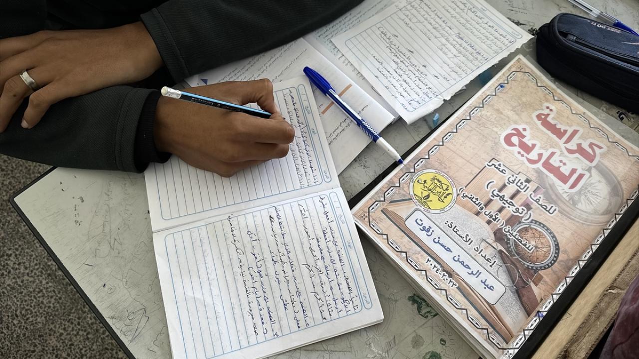 Saldırılarda okulun bir kısmı yıkılmasına rağmen, liseye giriş sınavına hazırlanan öğrenciler, savaşın yol açtığı yıkıma rağmen eğitimlerine devam edebilmek için sınıflarına döndü.
