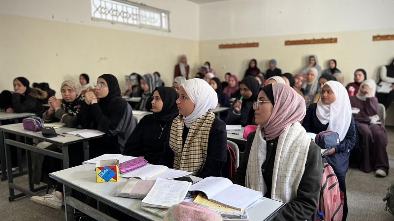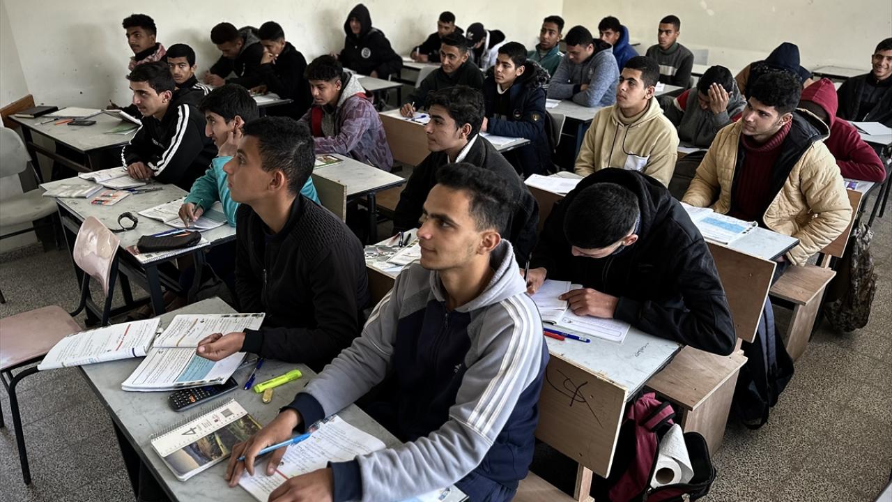 İsrail’in saldırıları nedeniyle yaklaşık bir buçuk yıl önce eğitime ara verilen Gazze Şeridi’nin orta kesimindeki Nuseyrat Mülteci Kampı’nda yer alan Maskat Lisesi, ateşkesin ardından yeniden eğitime başladı.