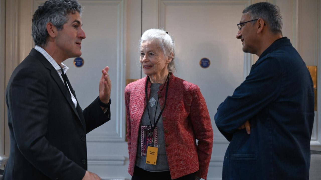 Toplantıya Ussama Makdisi (solda), Victoria Brittain (ortada) ve Hatem Bazian (sağda) da katıldı.