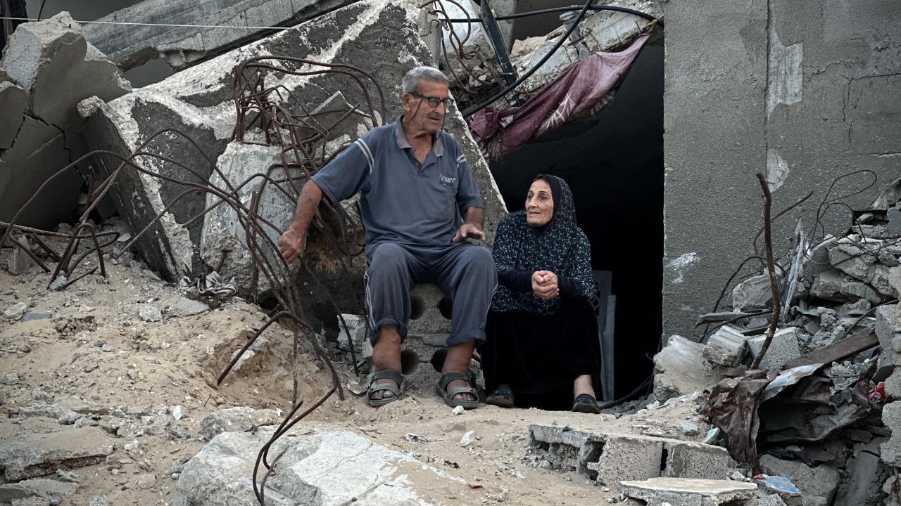 Filistinli çift Safa ve Cemil Al-Anani, Gazze Şeridi'nin güneyindeki Han Yunus kentinde, İsrail'in düzenlediği saldırı sonucu yıkılan evlerinin enkazında yaşamlarını sürdürüyor. Evlerini terk etmek istemeyen çift, zor koşullara rağmen soğuk hava ve devam eden saldırılar karşısında hayatta kalma mücadelesi veriyor.