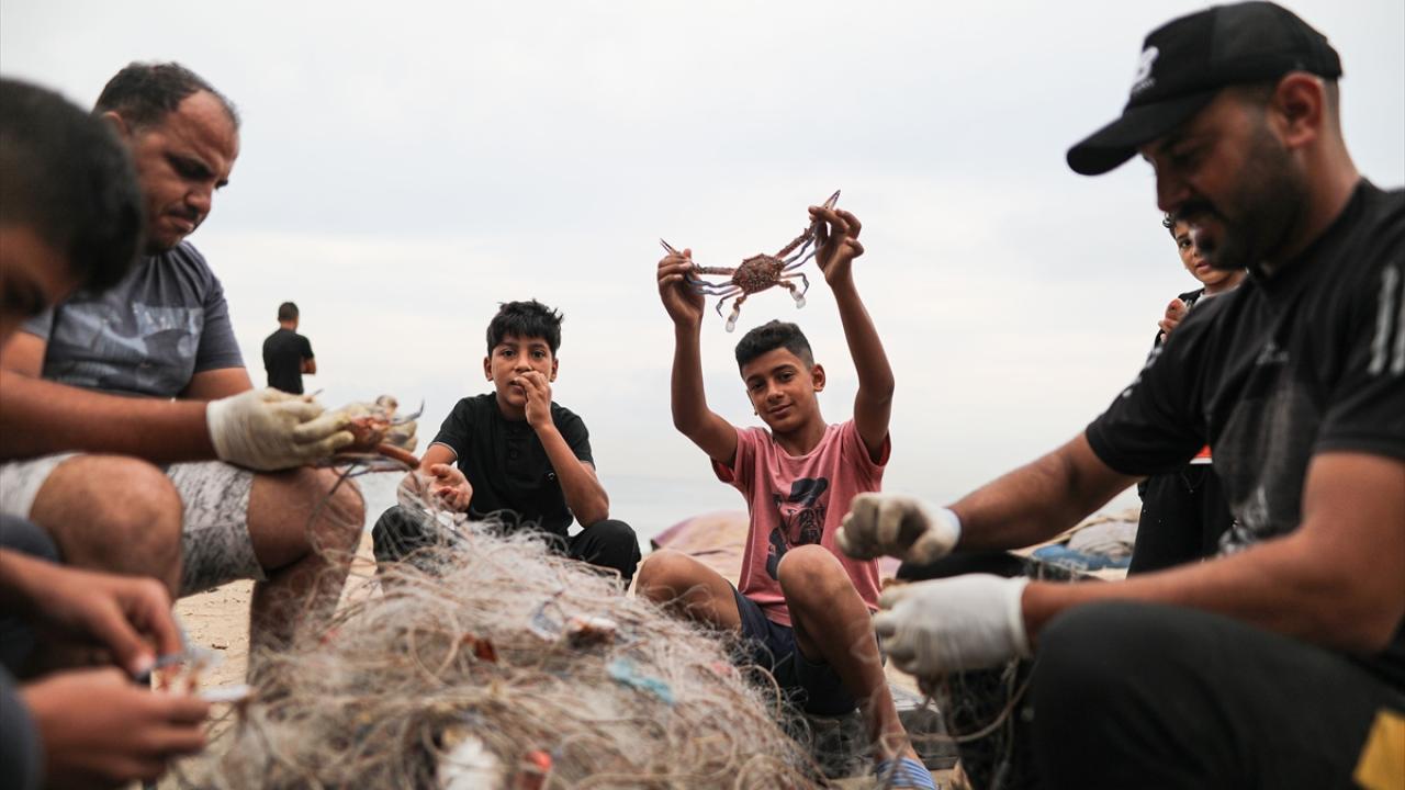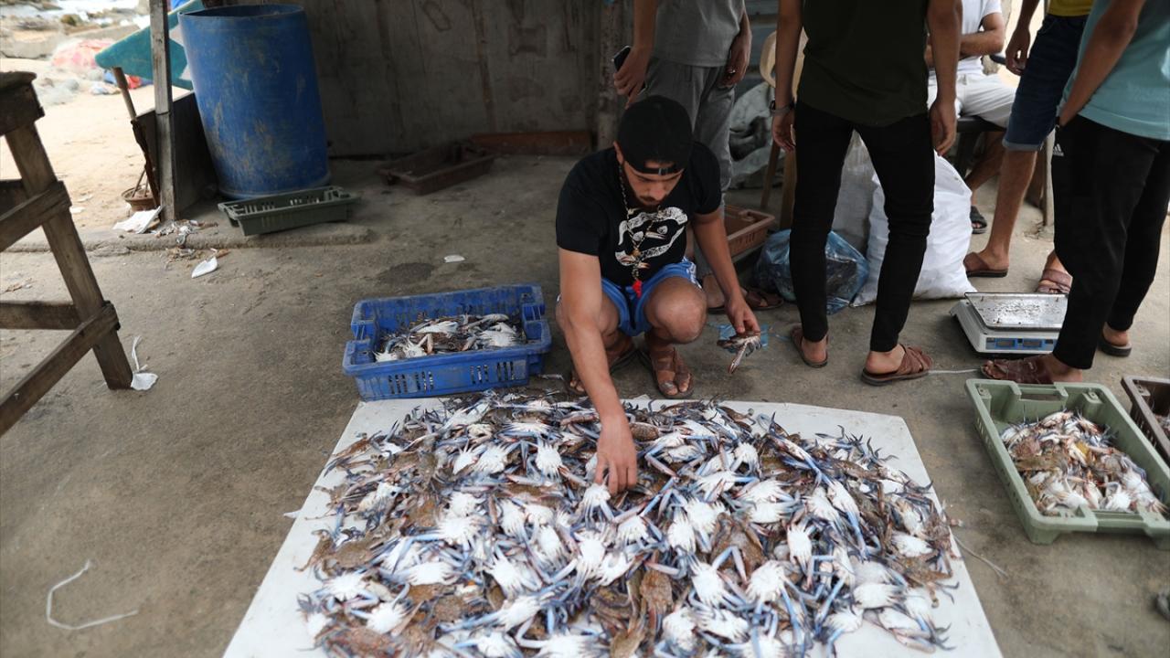 Gazze'de yengeç bolluğu balıkçıların yüzünü güldürdü