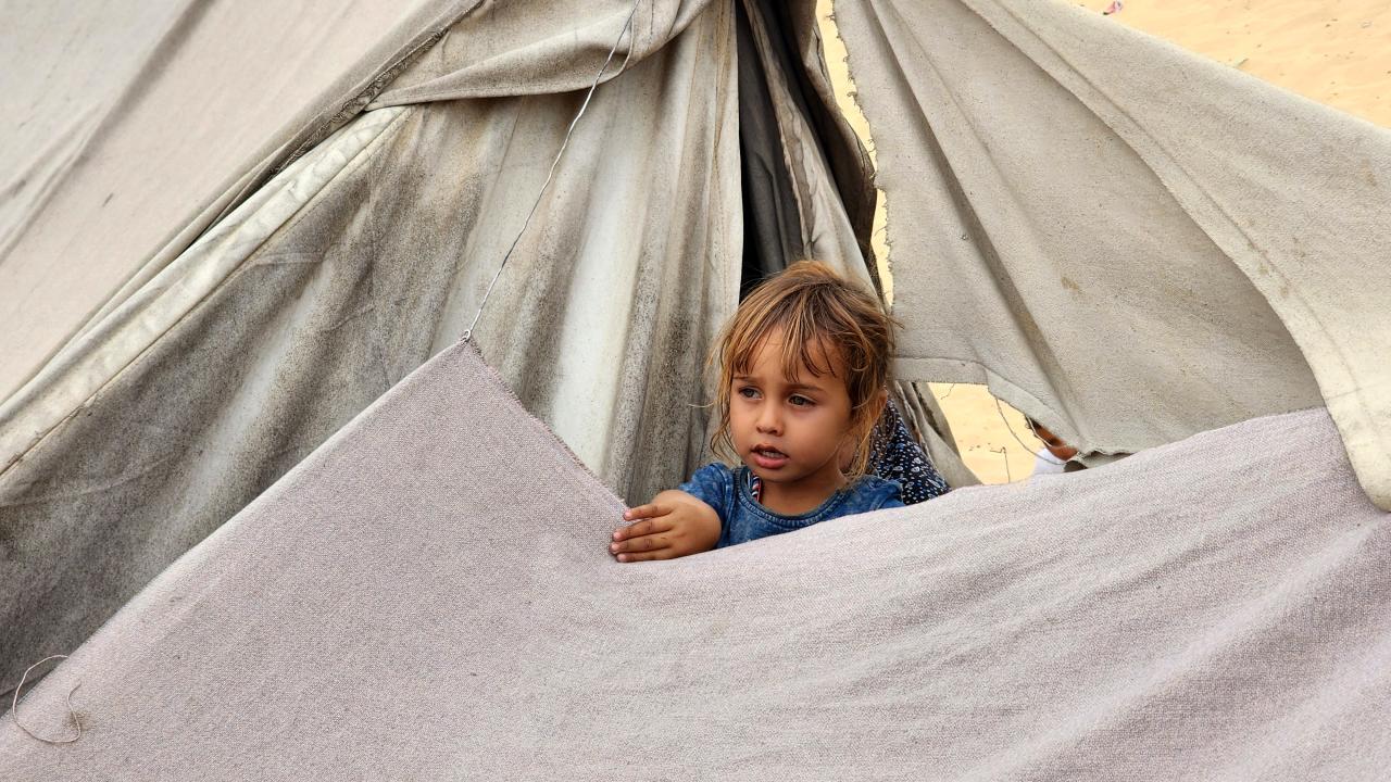 Refah kentinde yerinden edilen Filistinliler derme çatma çadırlarda yaşamlarını sürdürüyor.
