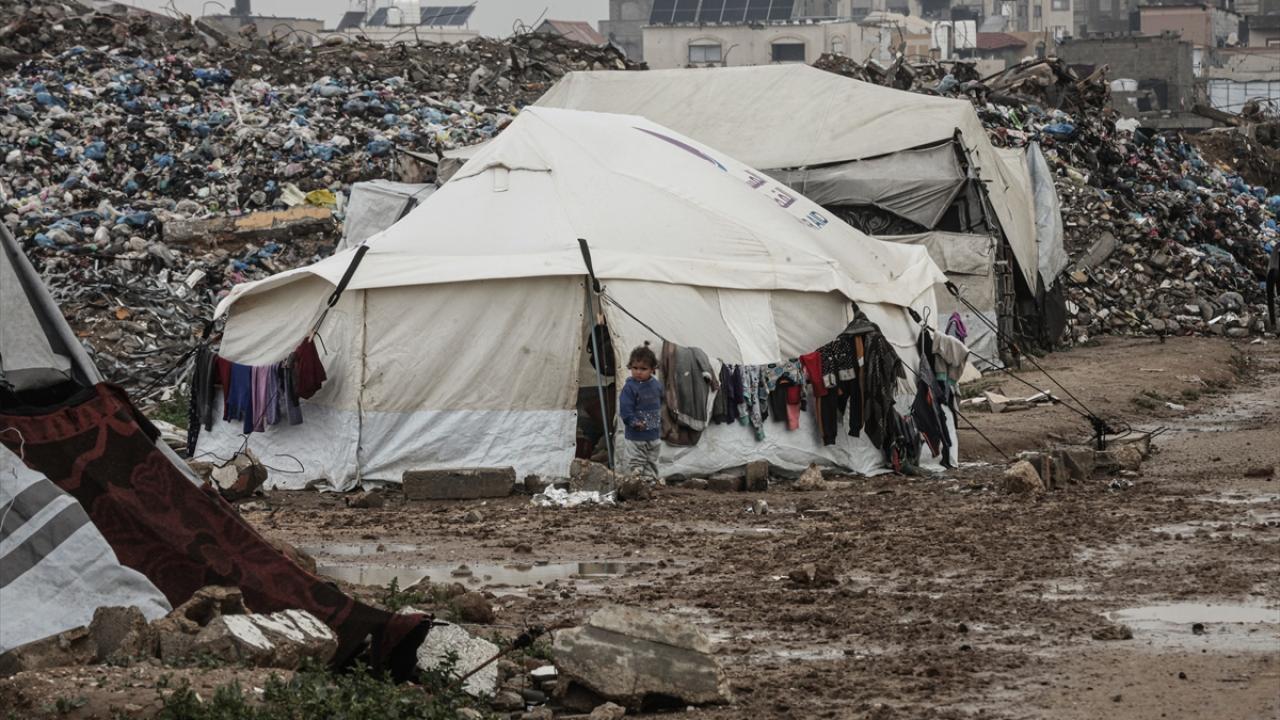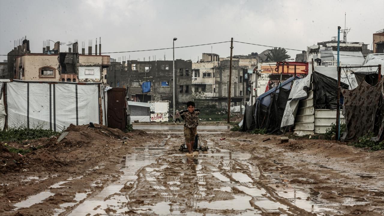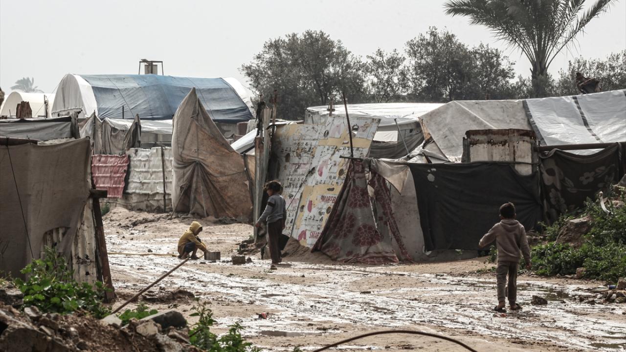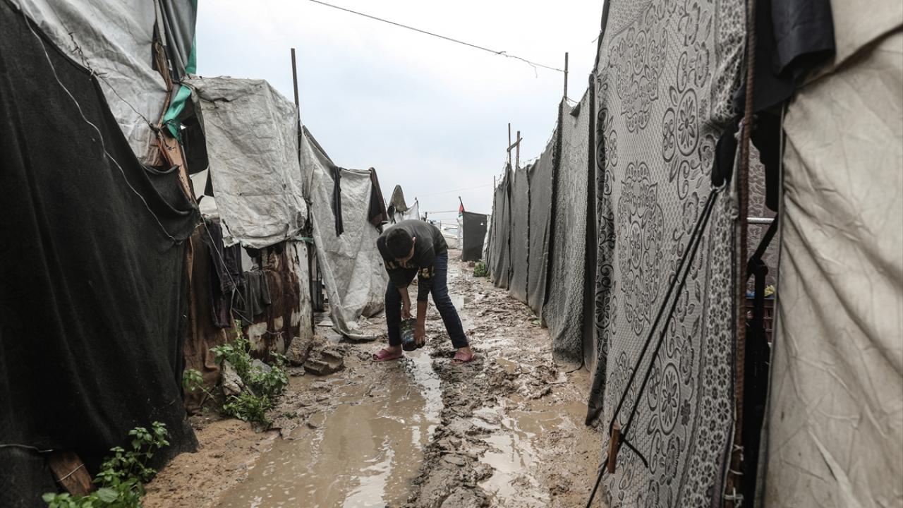İsrail'in saldırıları nedeniyle evlerin büyük çoğunluğunun yıkıldığı Gazze Şeridi'nde etkili olan şiddetli yağışlar, çok sayıda çadırı sular altında bırakırken yollarda çamur oluştu. Sağanak nedeniyle Gazze Şeridi’nin orta kesimindeki Bureyc Mülteci Kampı’nda yüzlerce çadırın su altında kalması, zorlu insani koşullar altında yaşamını sürdüren yerinden edilen Filistinlilerin durumunu daha da kötüleştirdi.