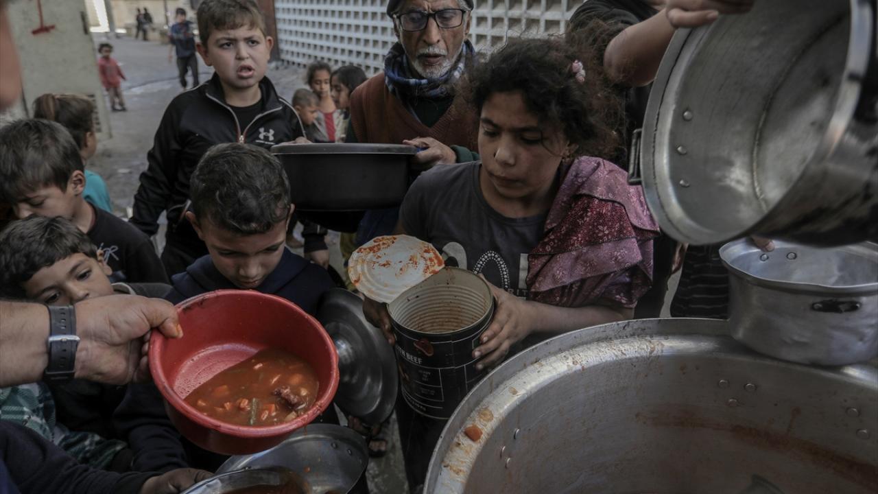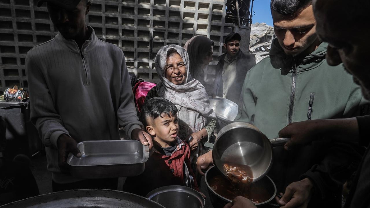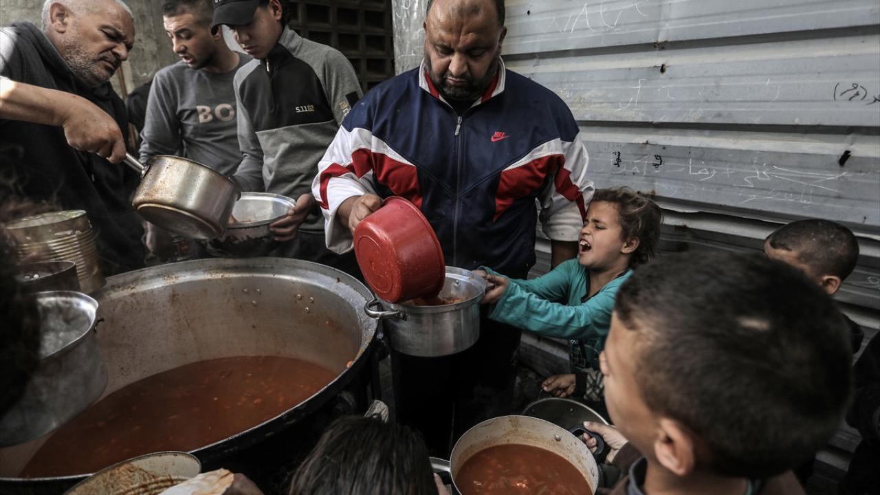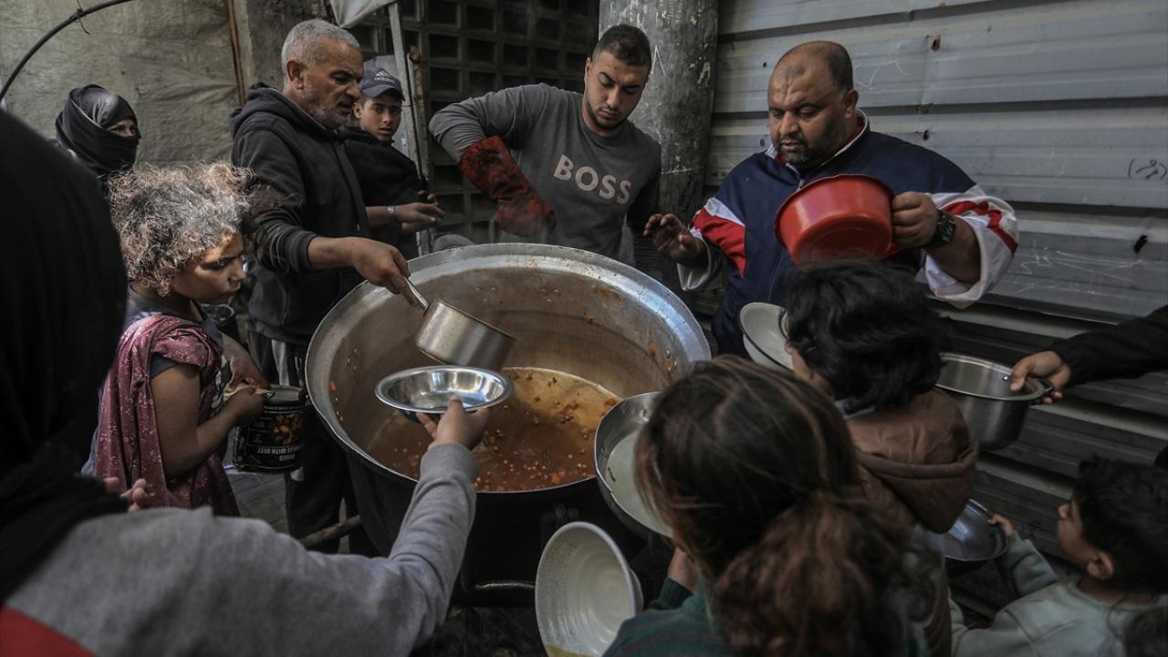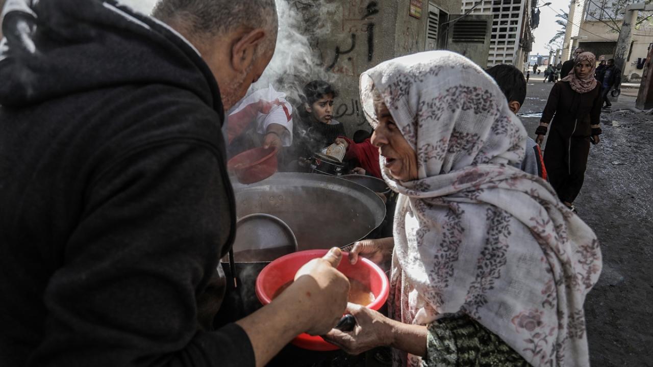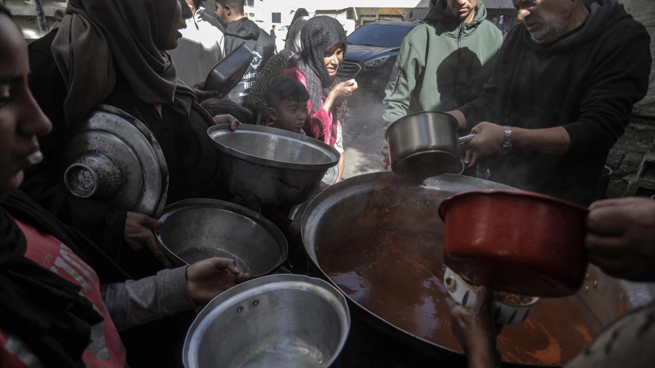 Gazze'de yerinden edilmiş Filistinlilere sıcak yemek dağıtımı yapıldı