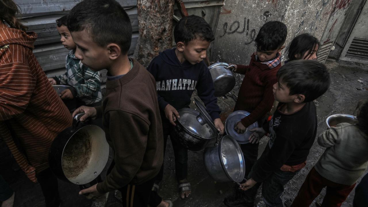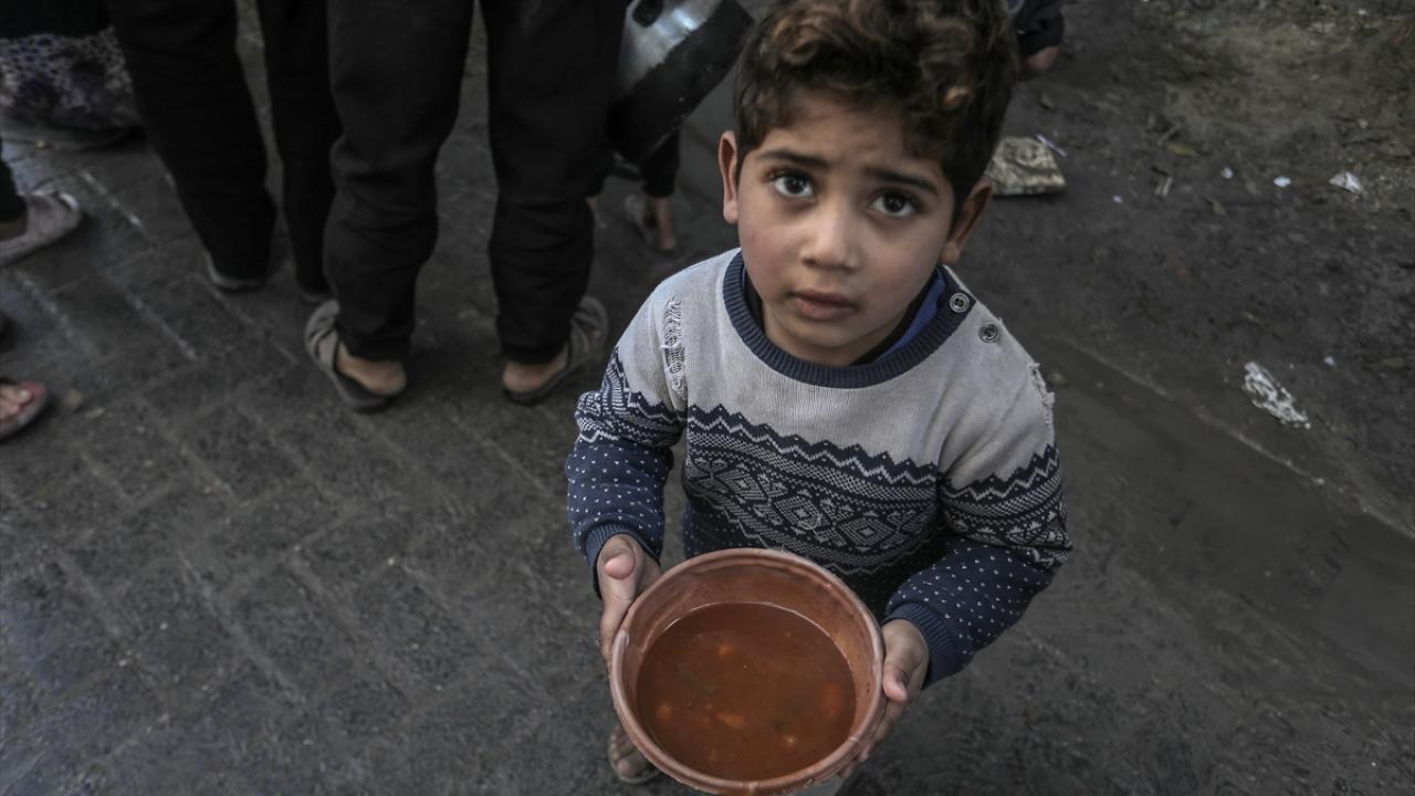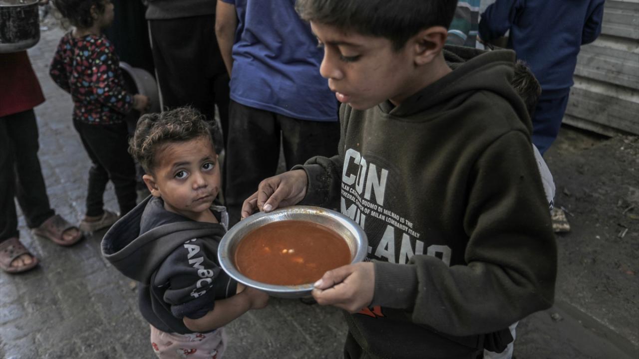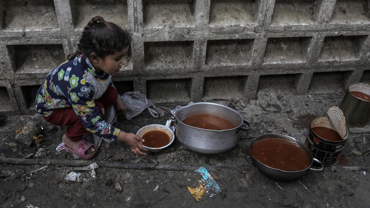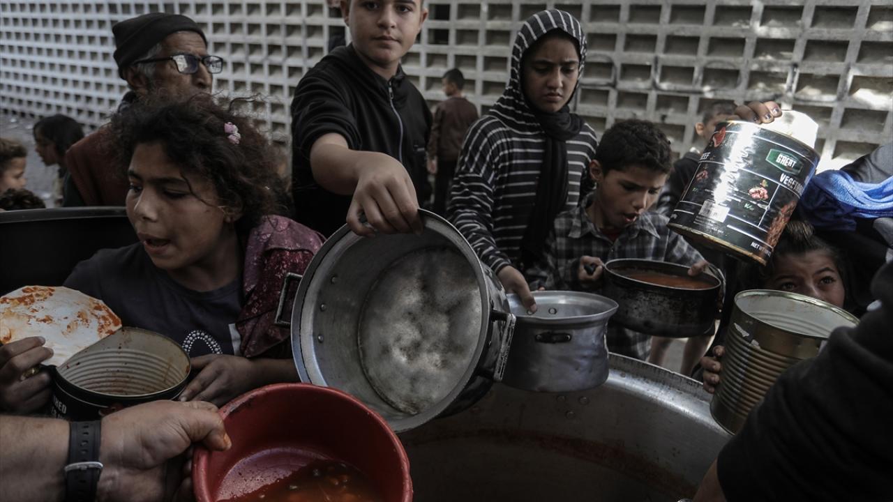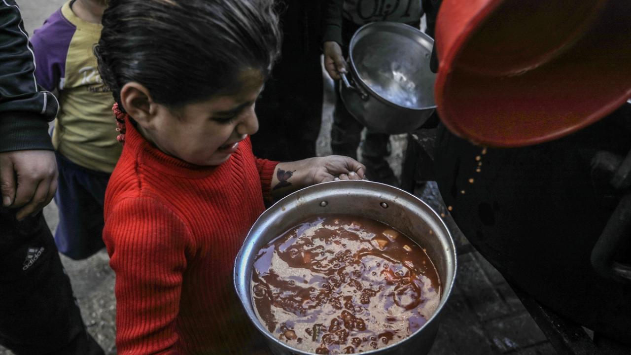 Gazze'de yerinden edilmiş Filistinlilere sıcak yemek dağıtımı yapıldı