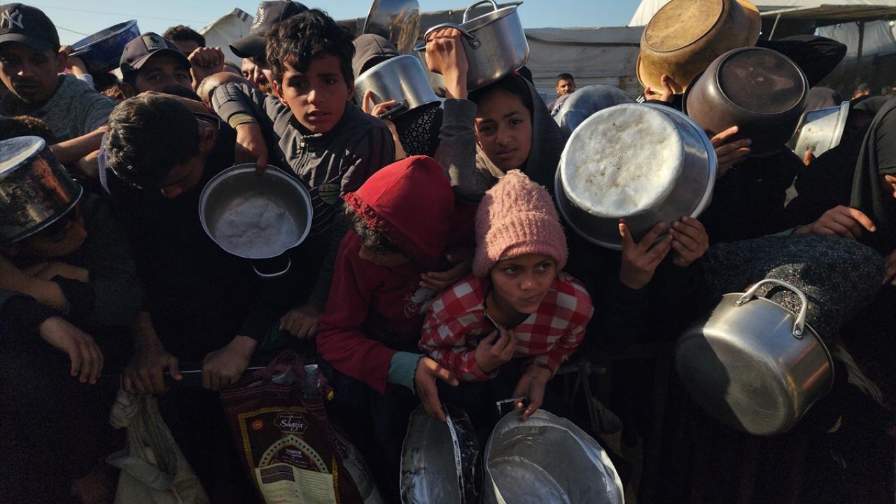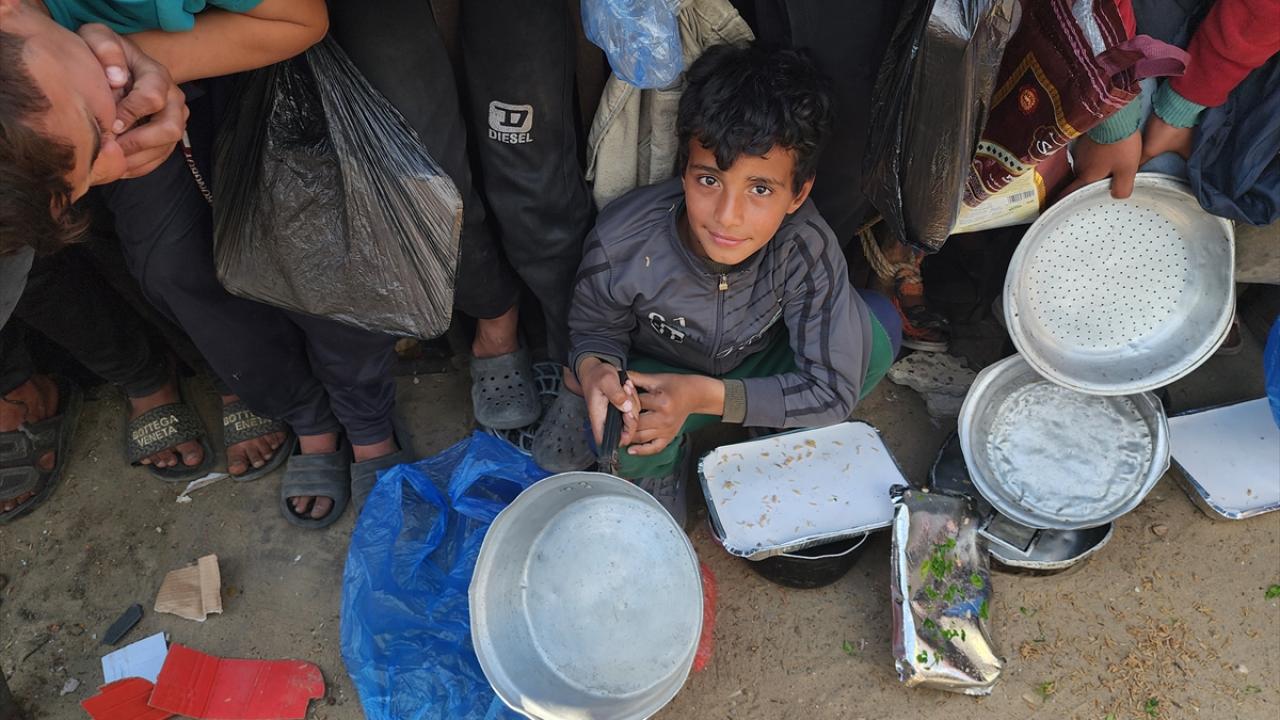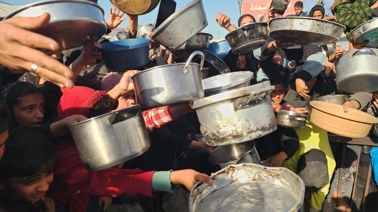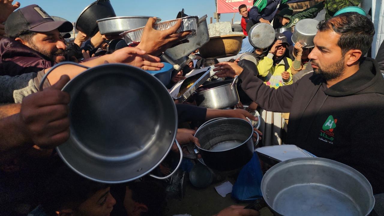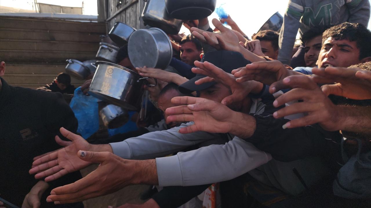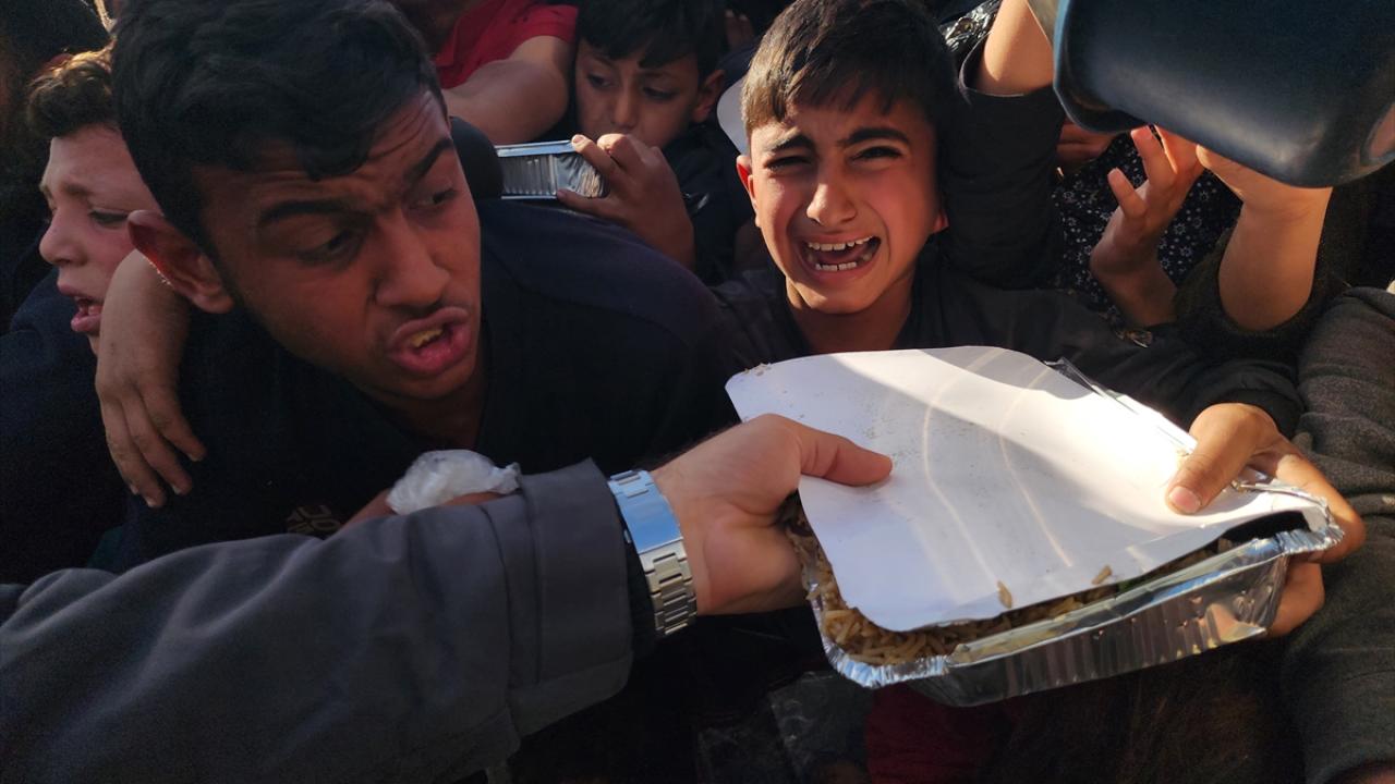 Gazze'de yerinden edilmiş Filistinlilere sıcak yemek dağıtımı yapıldı