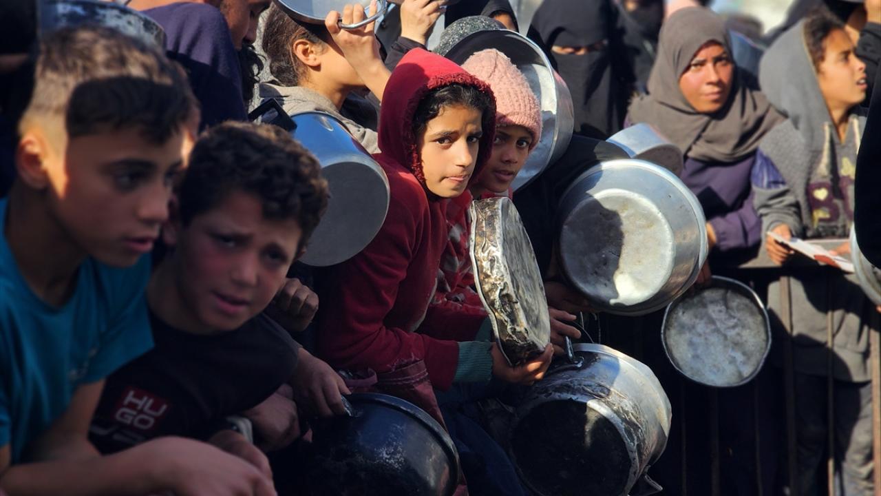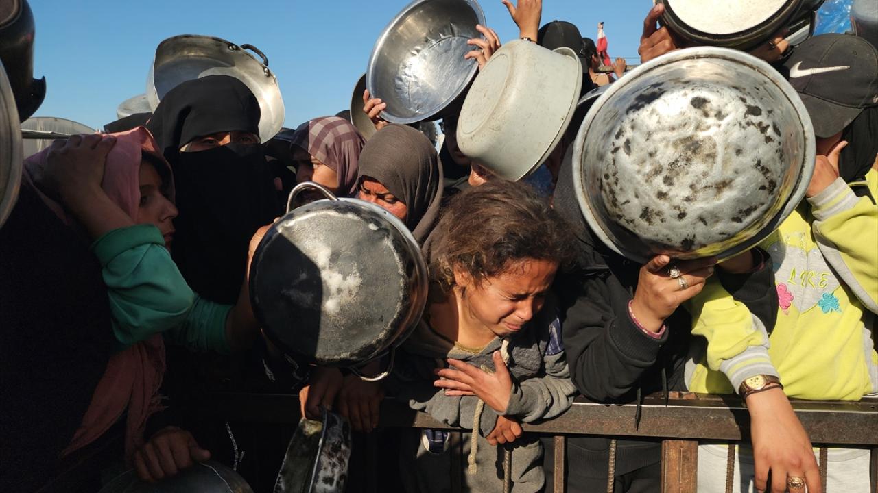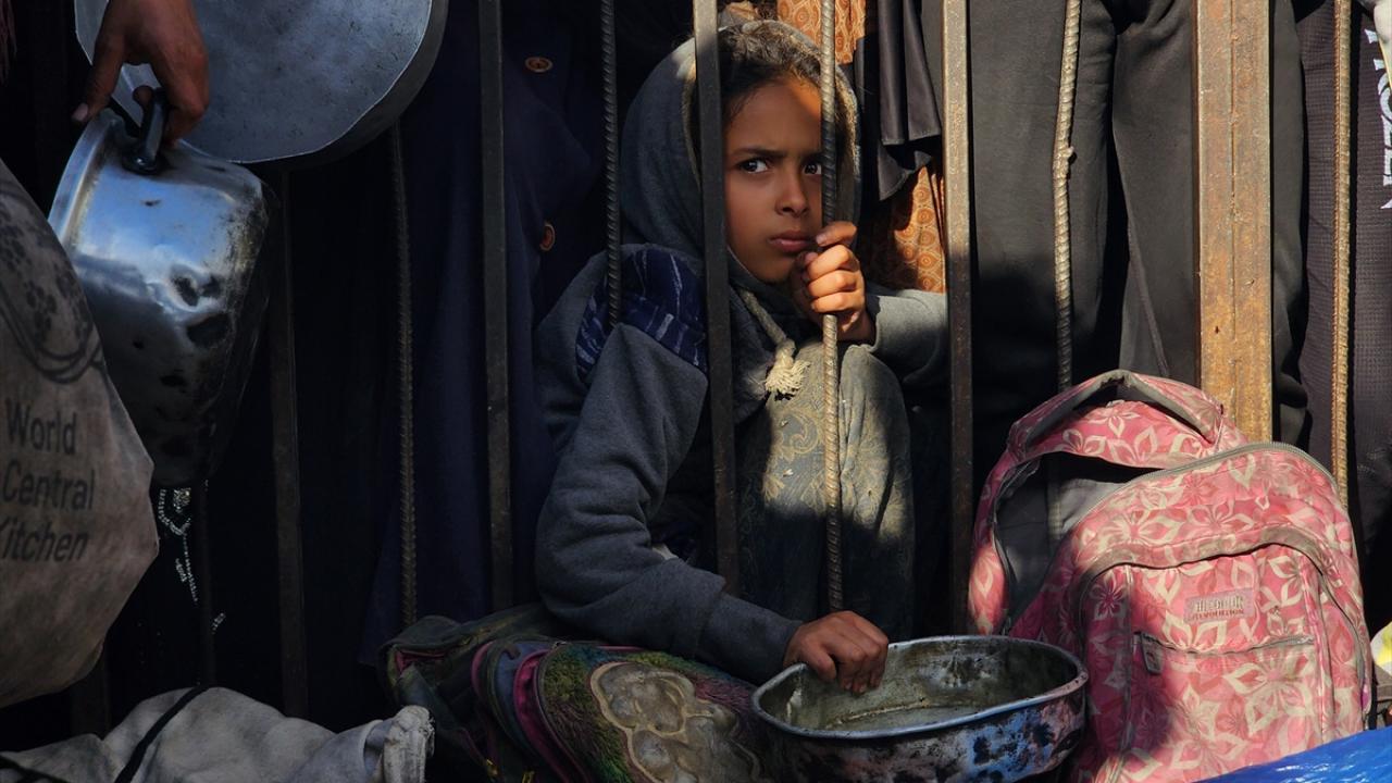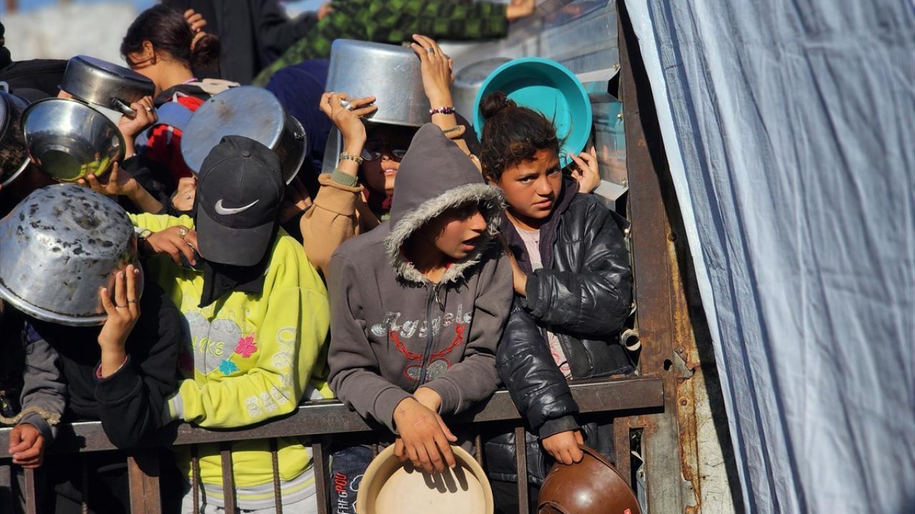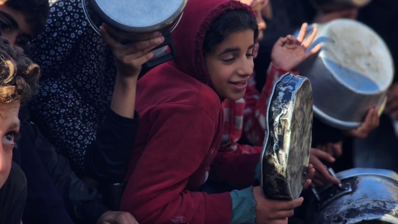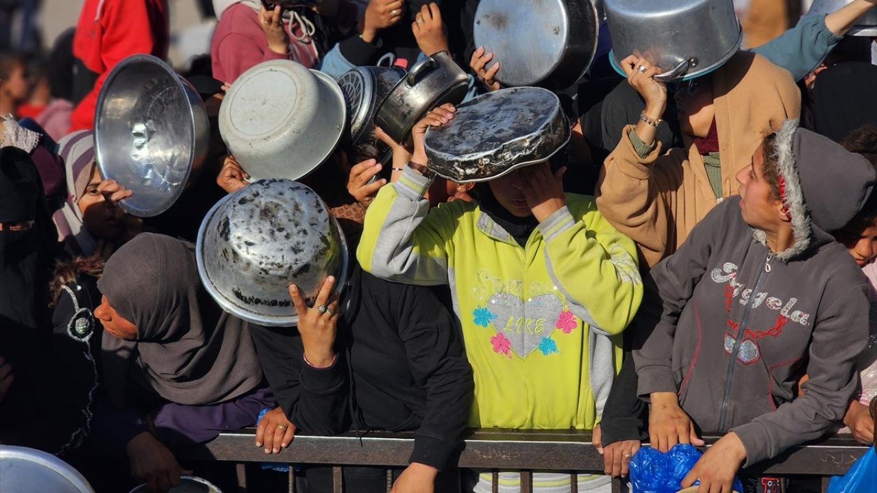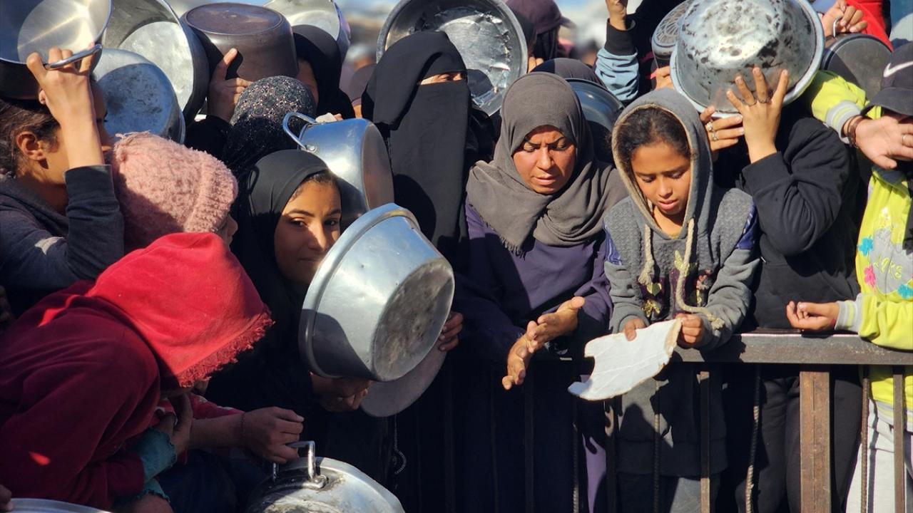 Gazze'de yerinden edilmiş Filistinlilere sıcak yemek dağıtımı yapıldı