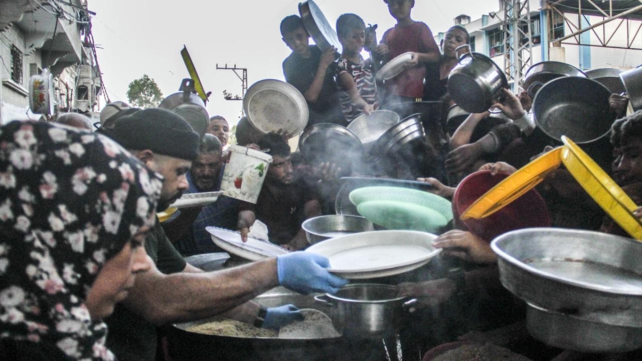 İsrail'in abluka altındaki Gazze Şeridi'ne yönelik saldırıları aralıksız sürerken bölgeye uyguladığı tam ambargo sebebiyle Filistinliler temel gıda malzemeleri dahil birçok hayati ihtiyacı temin etmekten aciz kalıyor. Gazze'nin kuzeyine sığınan Filistinlilere, bir hayır kurumu tarafından sıcak yemek dağıtıldı. Filistinliler, dağıtılan yemekten alabilmek için kuyrukta bekledi.