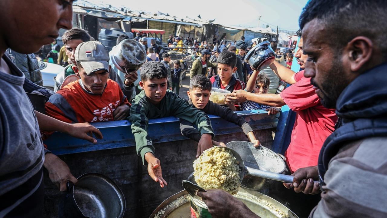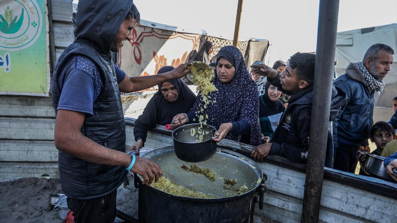 Gazze'de yerinden edilmiş Filistinlilere yemek dağıtıldı