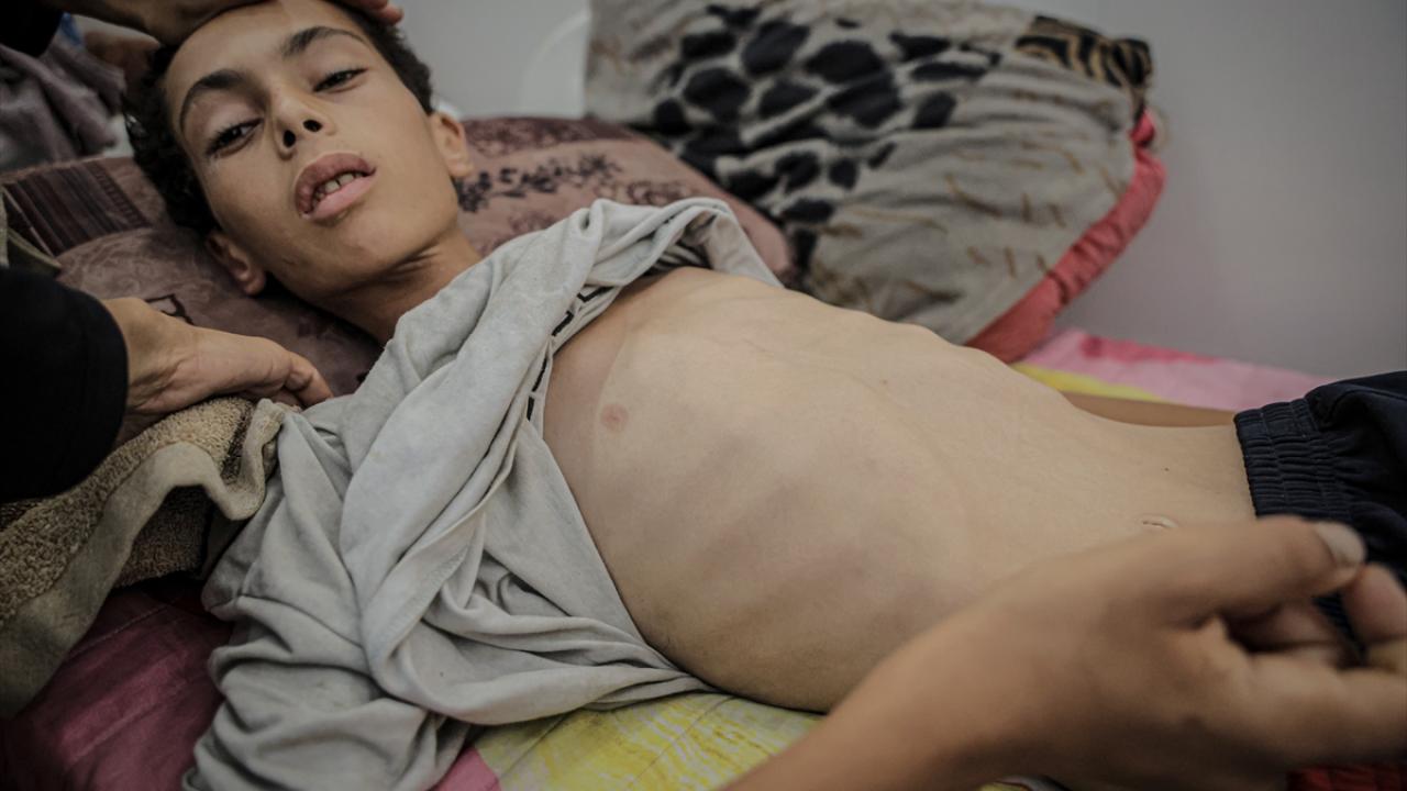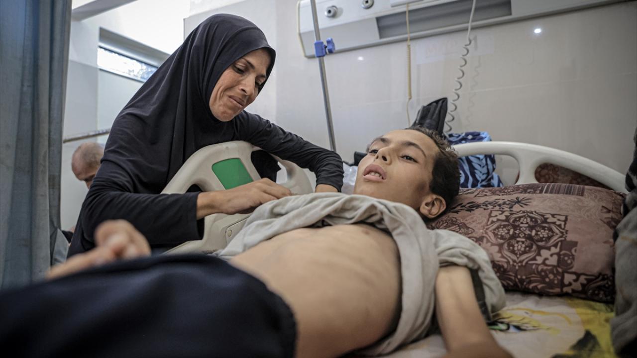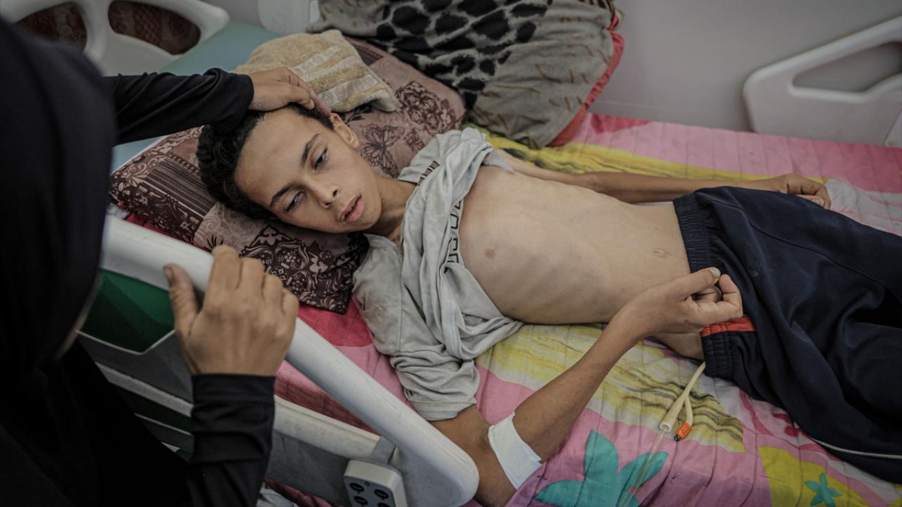 Gazze'de yetersiz beslenme yaşayan sorunu yaşayan genç, tedavi bekliyor