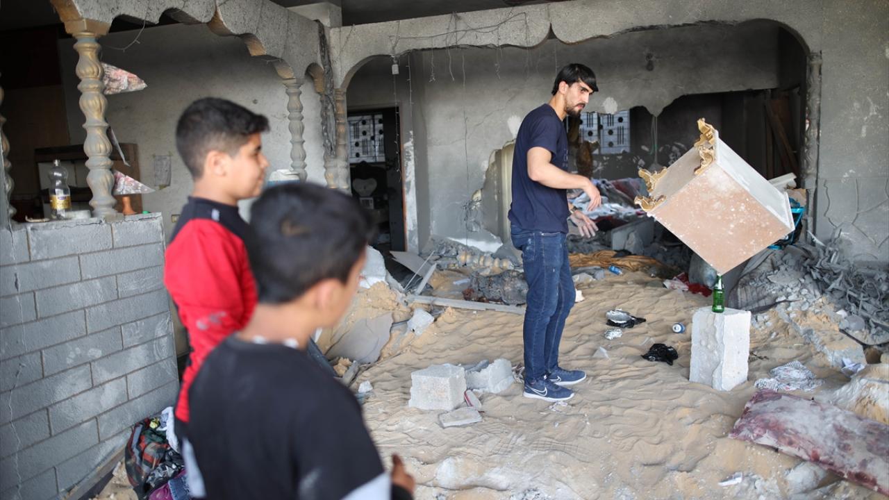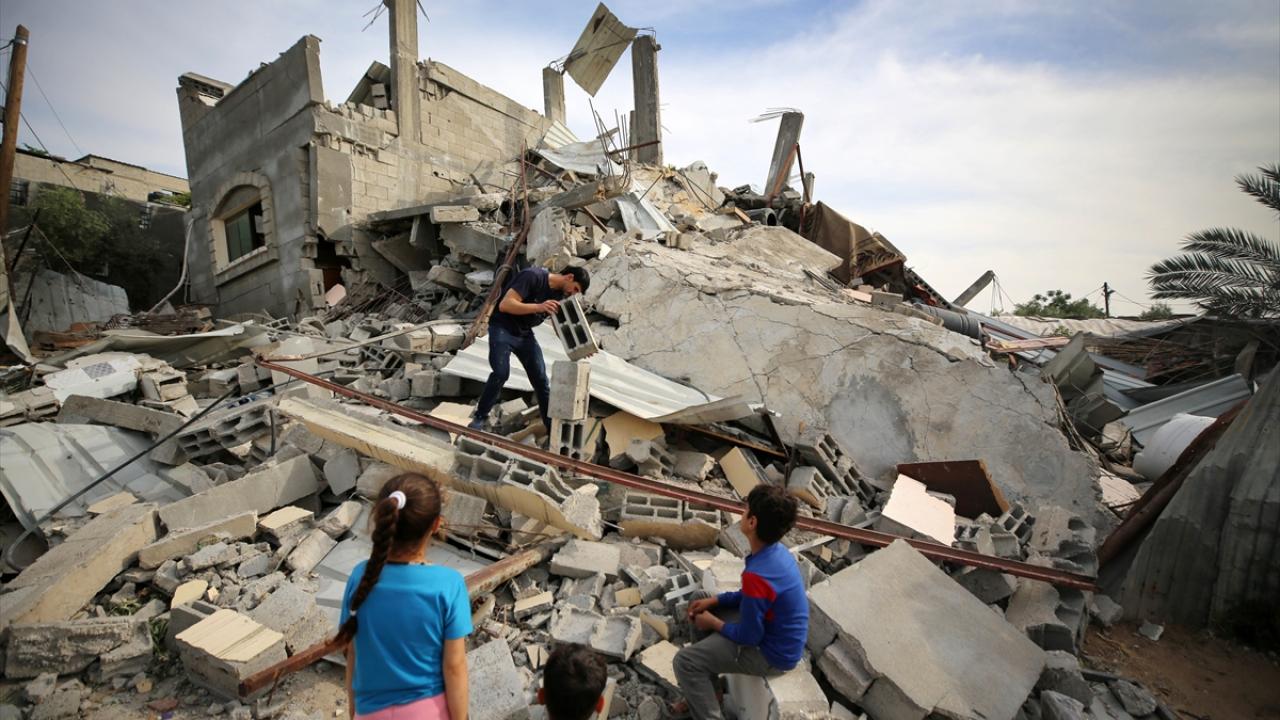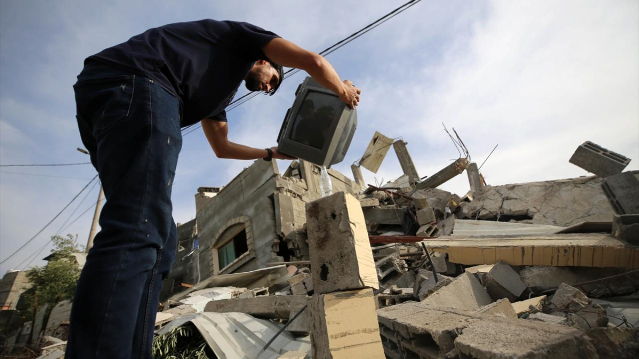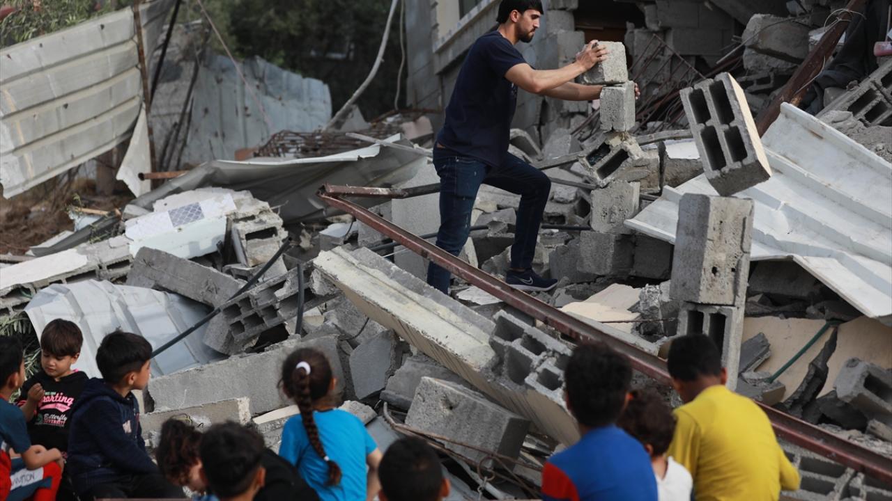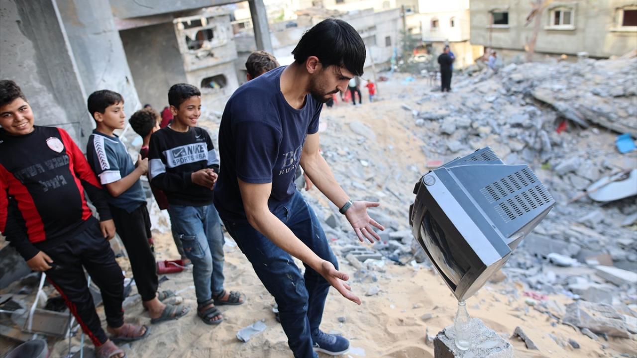 Filistinli Muhammad Al-Shanbari, İsrail'in Gazze'ye yönelik son saldırılarının ardından çocukların yüzlerini güldürmek ve savaşın olumsuz izlerini bir nebze unutturmak için denge gösterileri yapıyor.