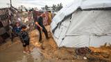 Katil İsrail saldırılarında evleri yıkılan Gazzelilerin kaldığı çadırları su bastı