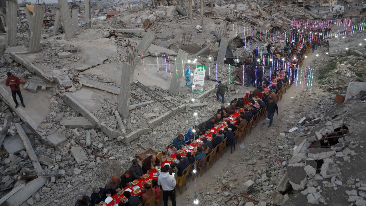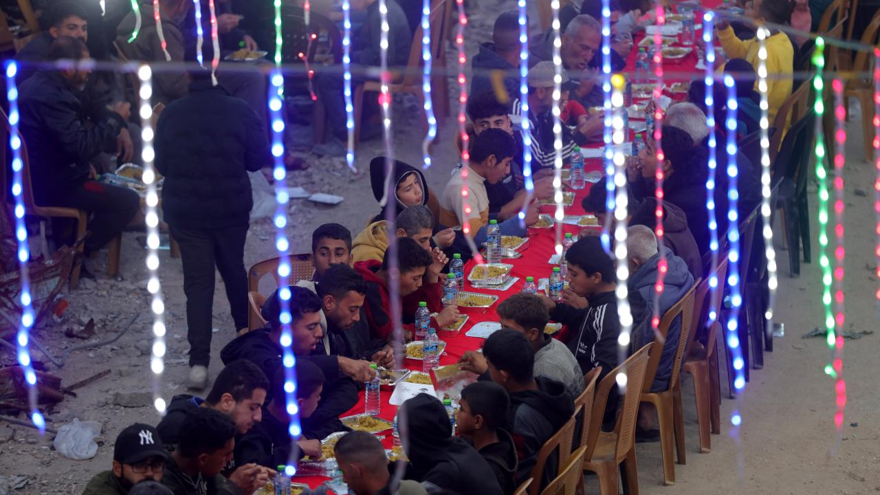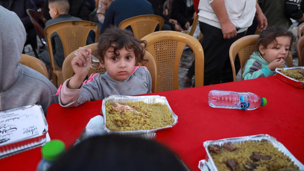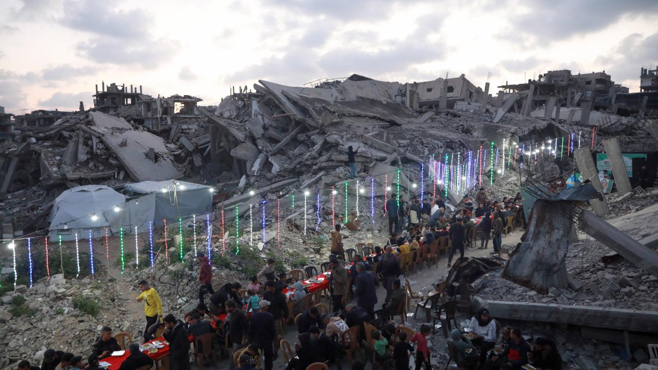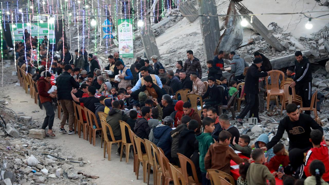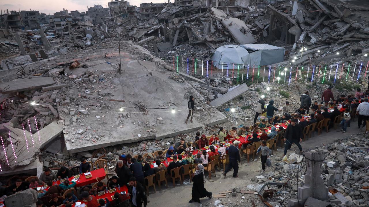 İsrail saldırılarında yıkıma uğrayan Gazze’nin Şeyh Radvan Mahallesi’nde, bir hayır kurumu tarafından toplu iftar programı düzenlendi. Yıkılan binalar arasında bir araya gelen Filistinliler, birlikte oruçlarını açtı.