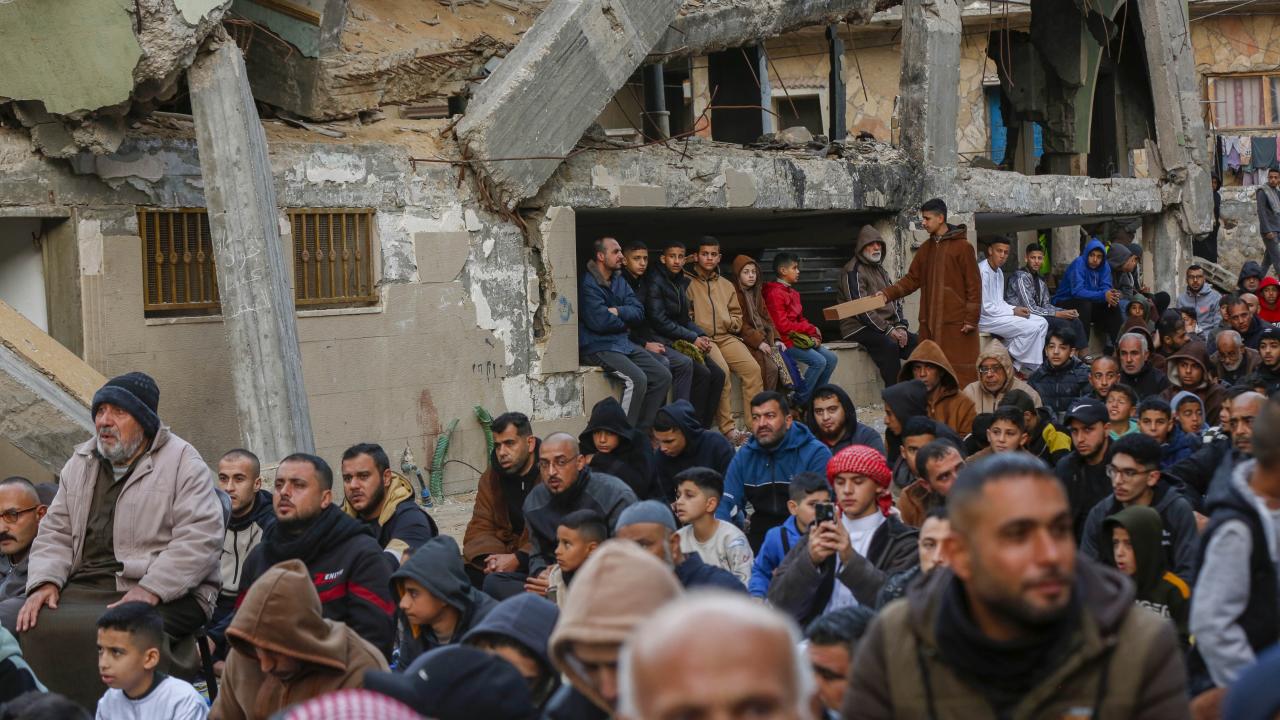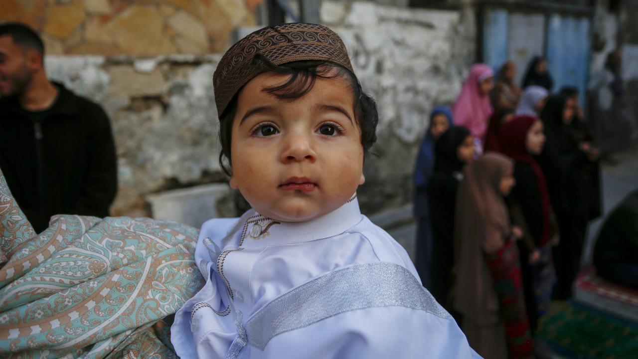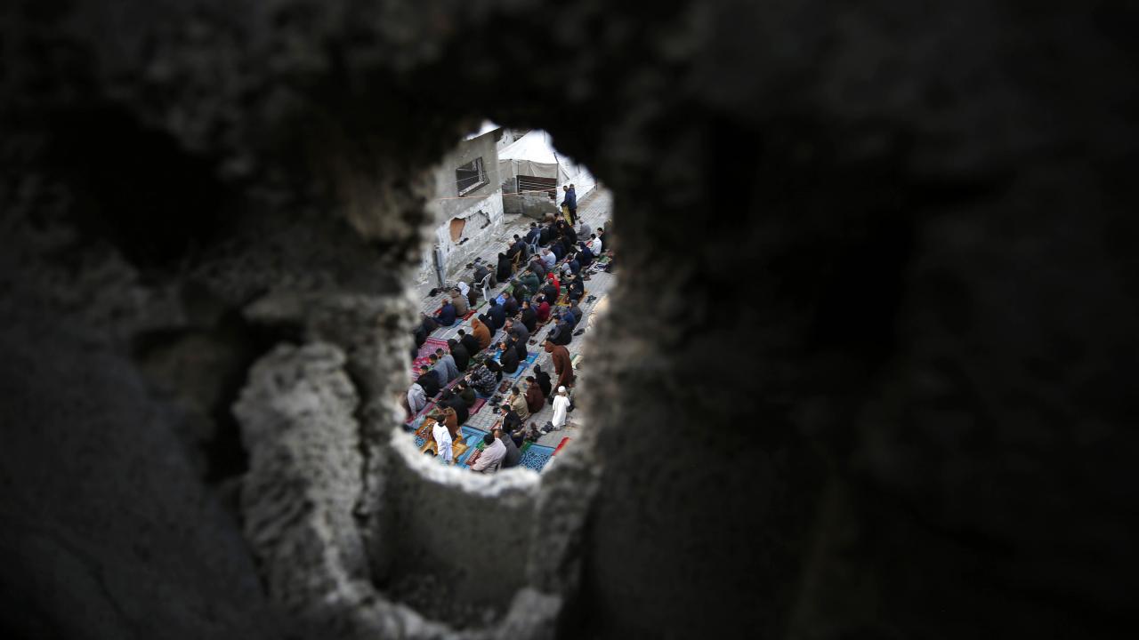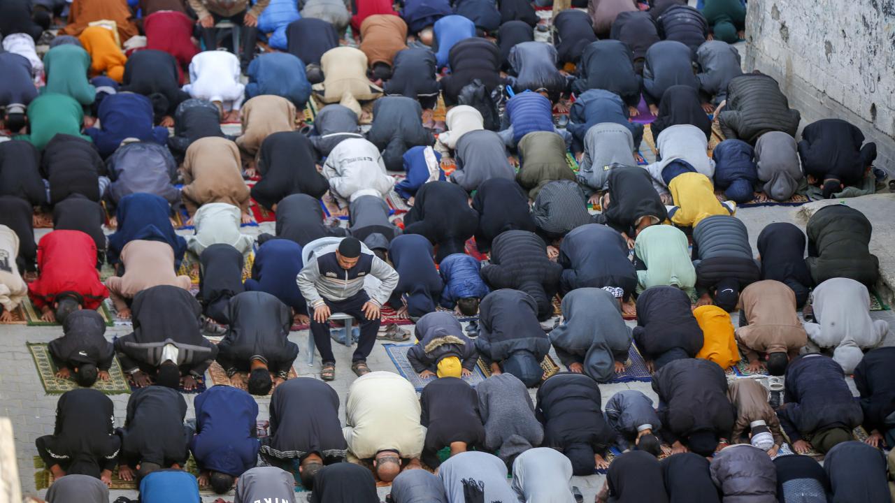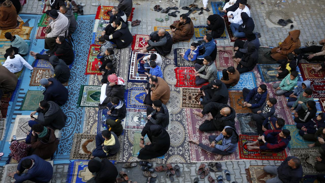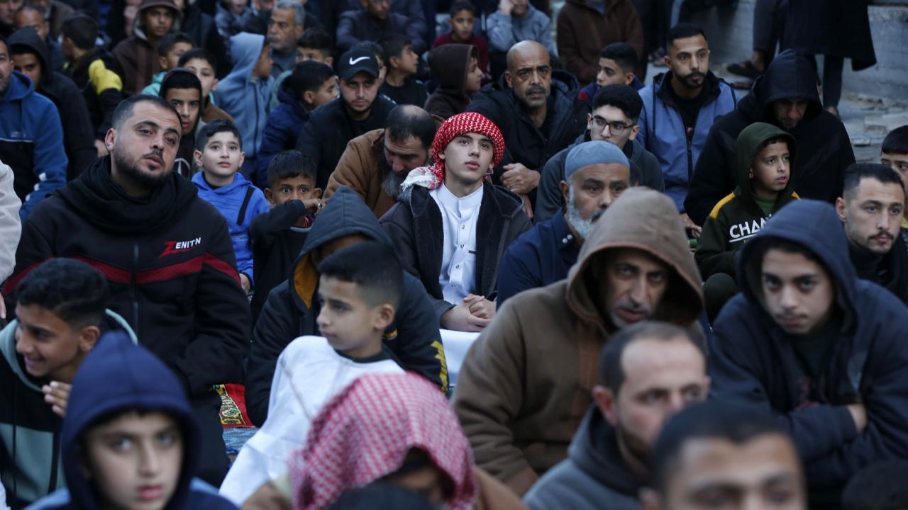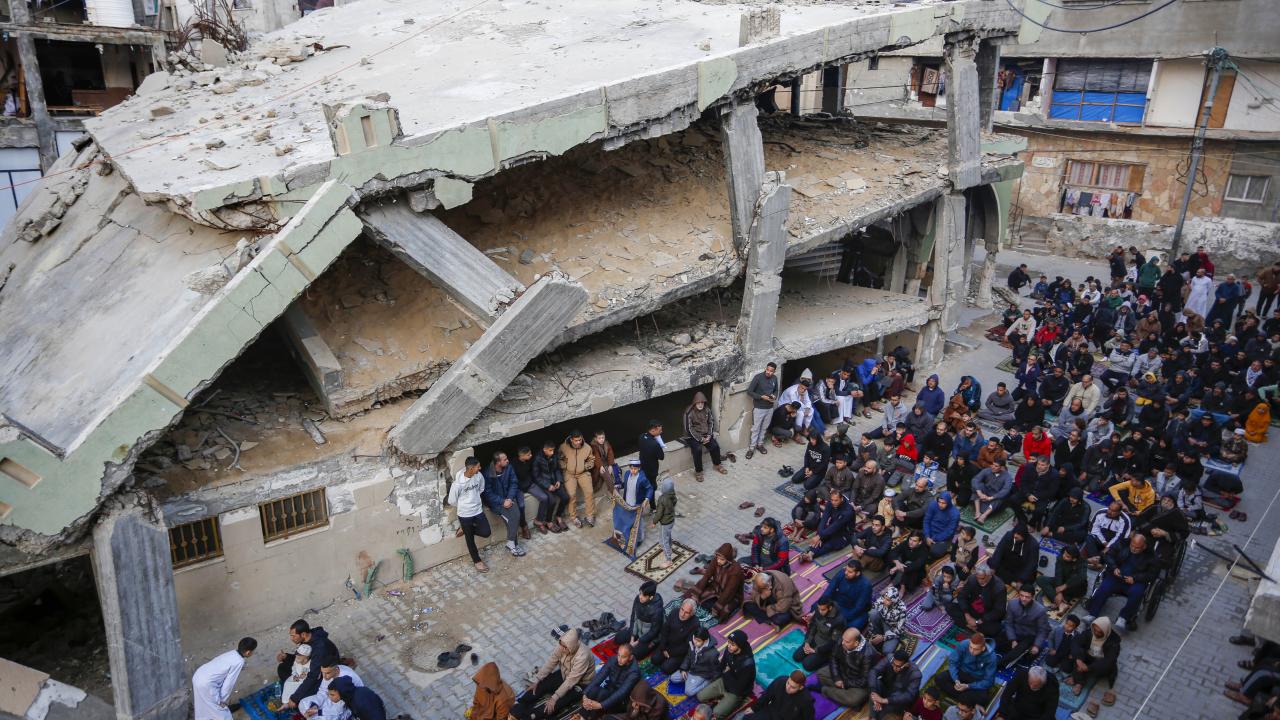 Gazze Şeridi'nin güneyindeki Refah kentindeki Filistinliler, Ramazan Bayramı namazını İsrail saldırılarında yıkılan İbn-i Teymiyye Camii enkazında ve çevresinde kıldı.
