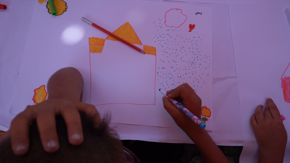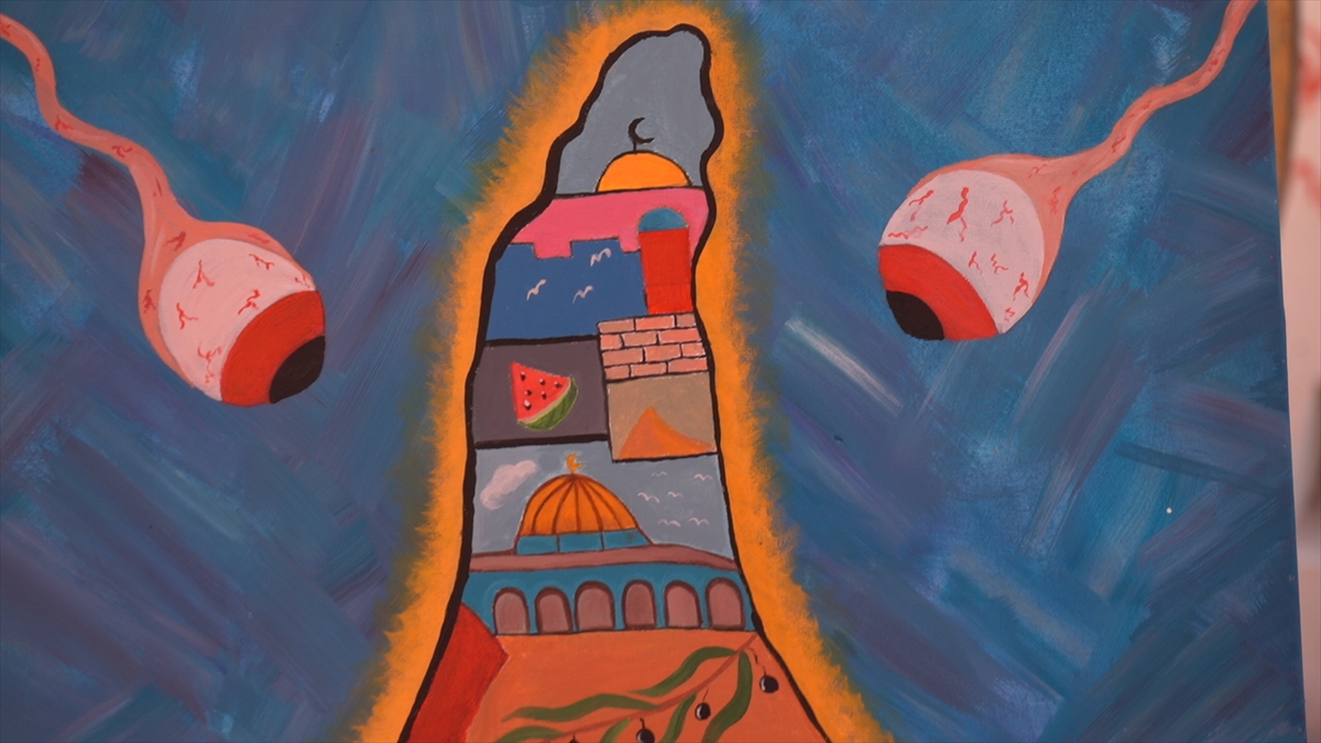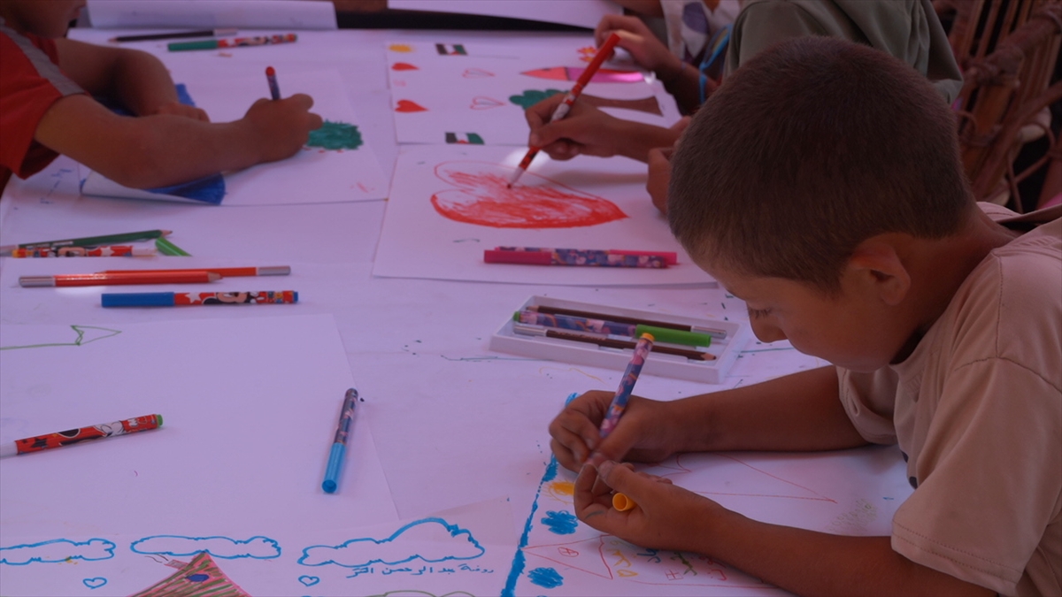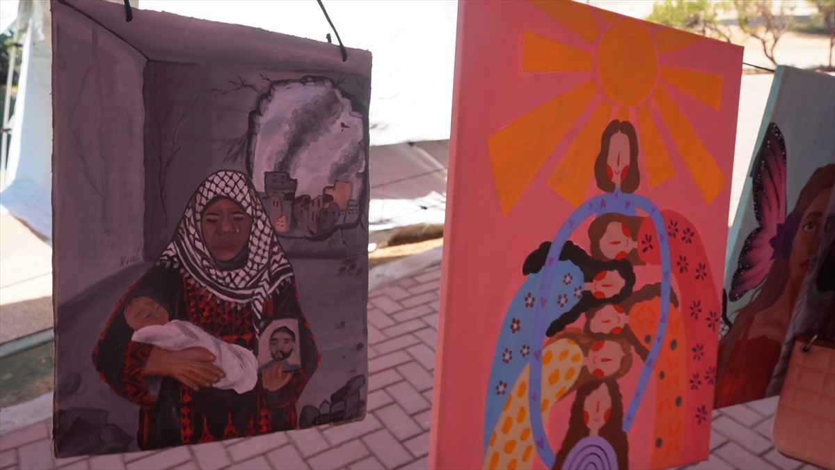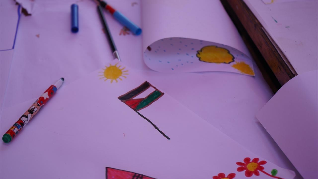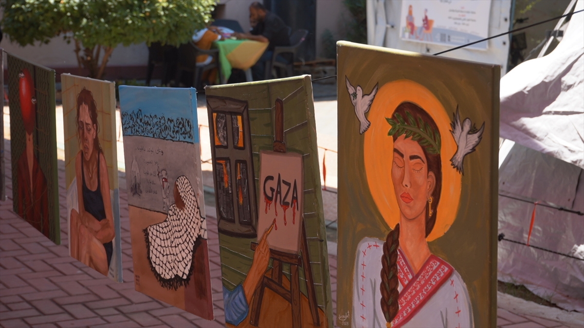 Gazze Belediyesi’ne bağlı Çocuk Esenliği Merkezi tarafından başlatılan “Nefes Al ve Resmet” adlı girişim kapsamında, merkezin savaşta yıkılan binası önünde bir resim ve fotoğraf sergisi düzenlendi.
