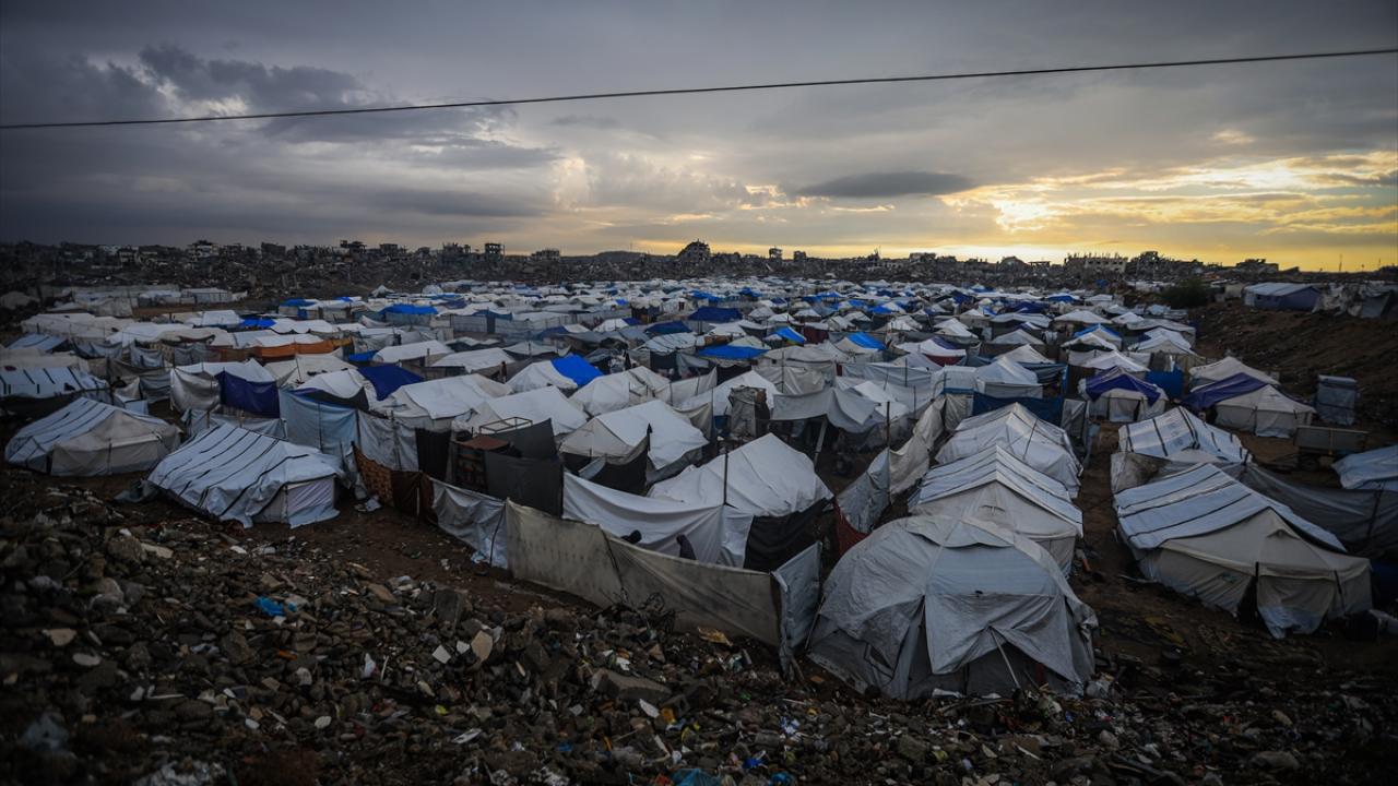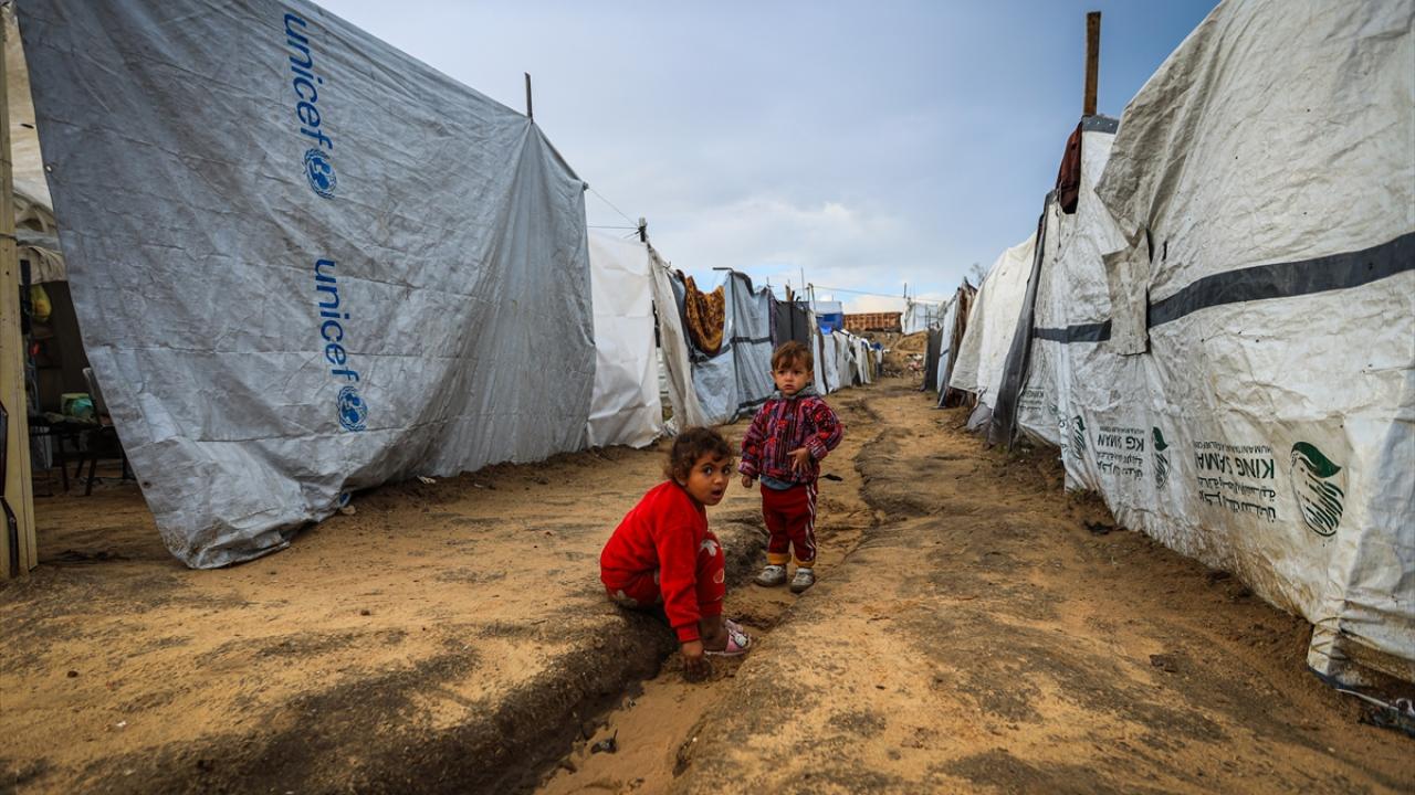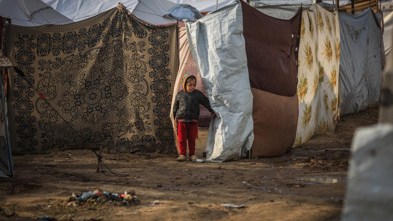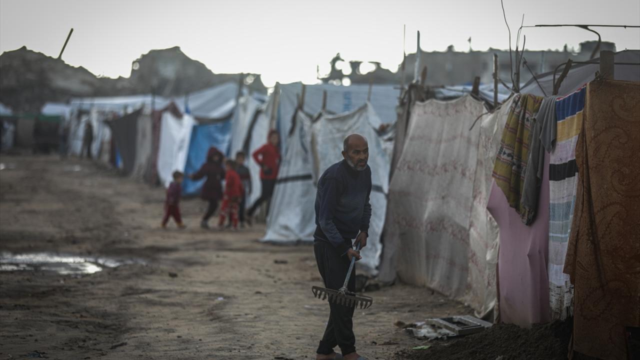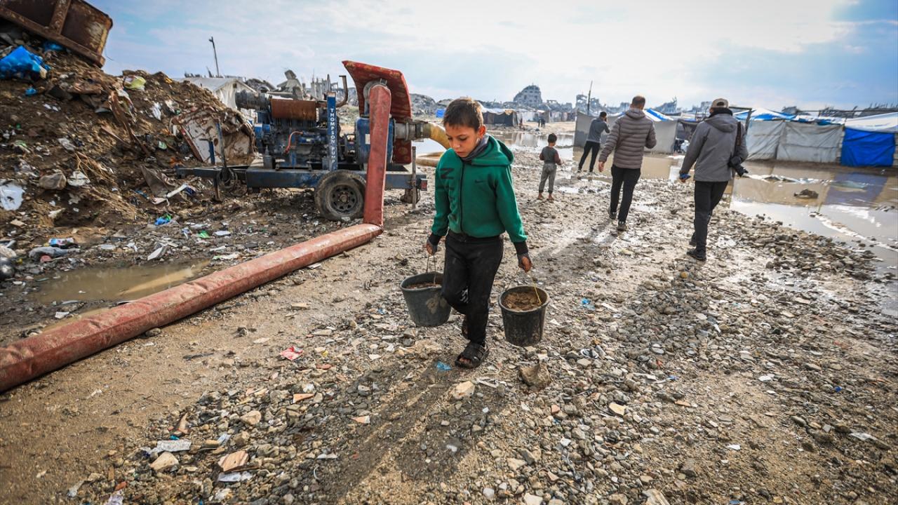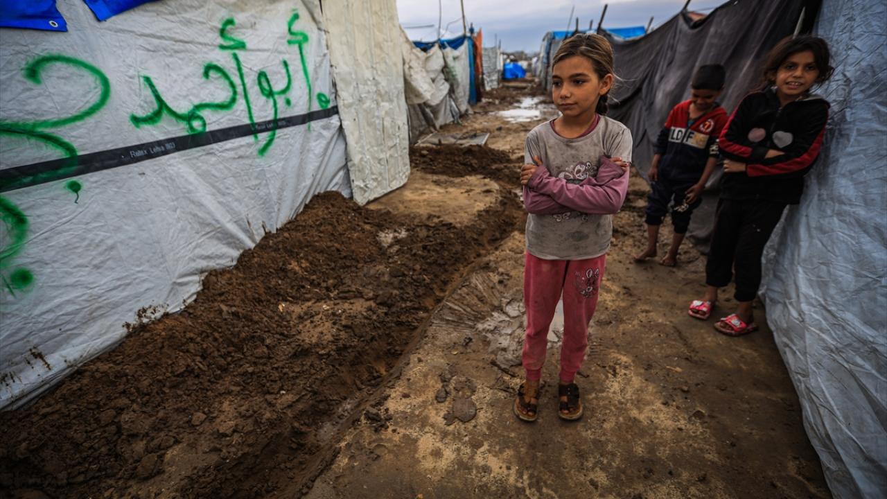 Yağış sonrası su ve çamur birikintilerinin oluştuğu bölgede yaşamlarını sürdüren ve İsrail`in saldırıları nedeniyle evleri yıkılan Filistinliler kötü hava koşullarıyla da mücadele ediyor.