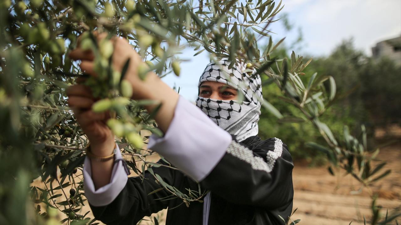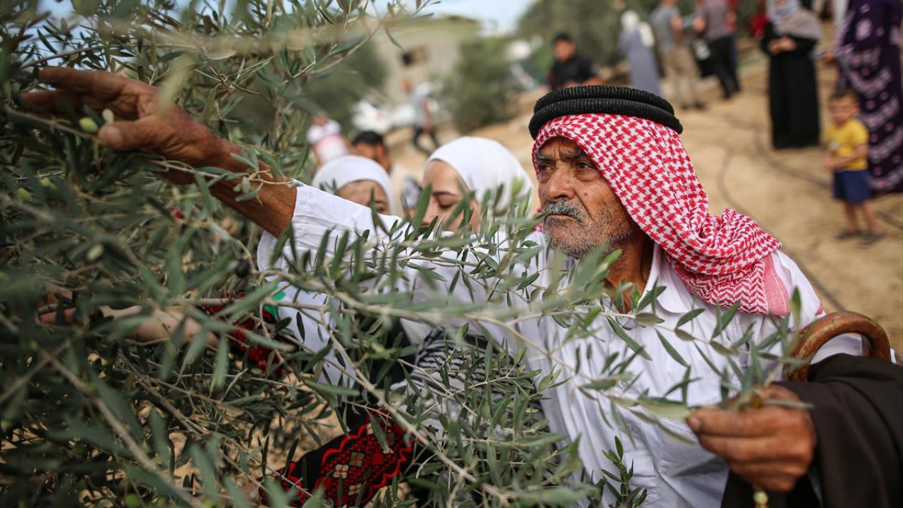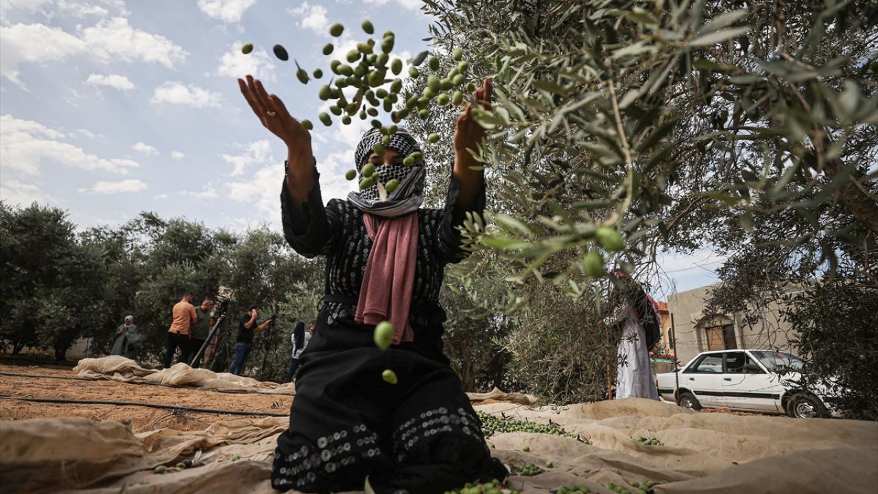 Gazze Şeridi'nde zeytin hasadının başlamasıyla Han Yunus kentindeki Filistinliler, mahsullerini topladı.