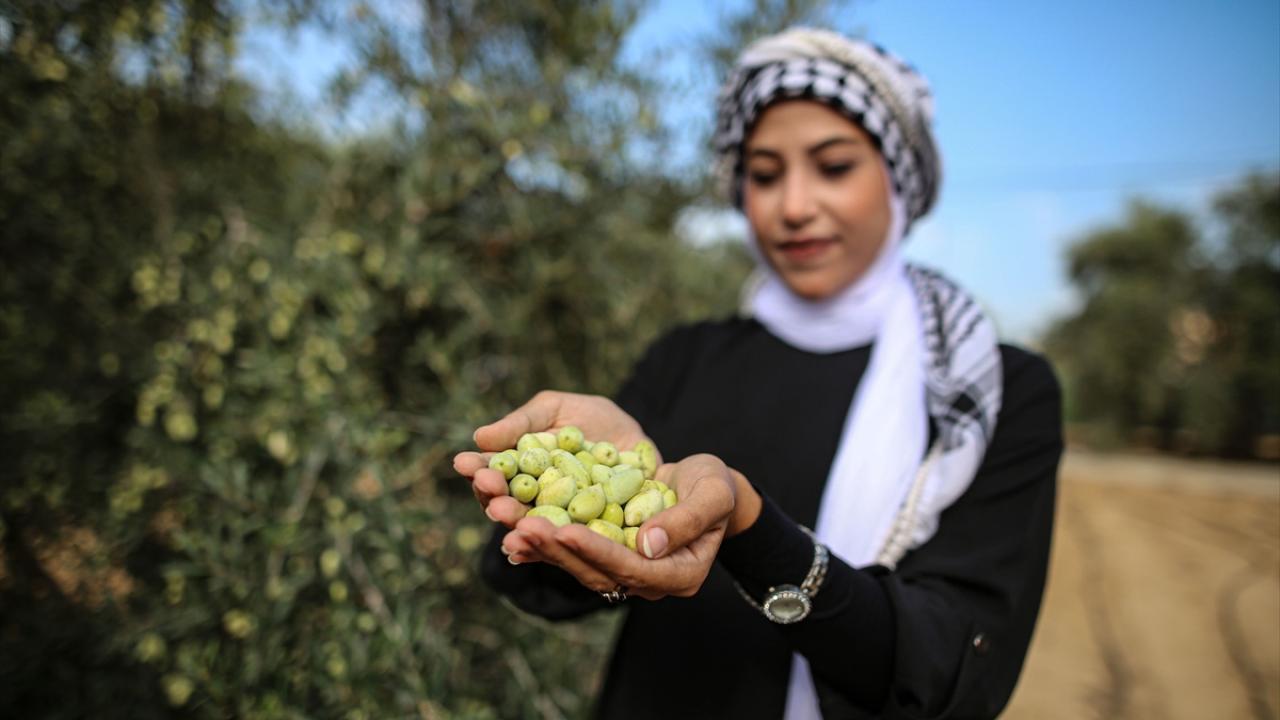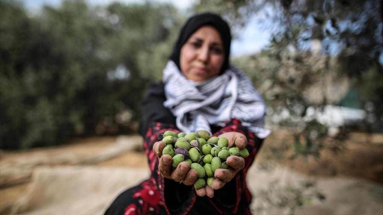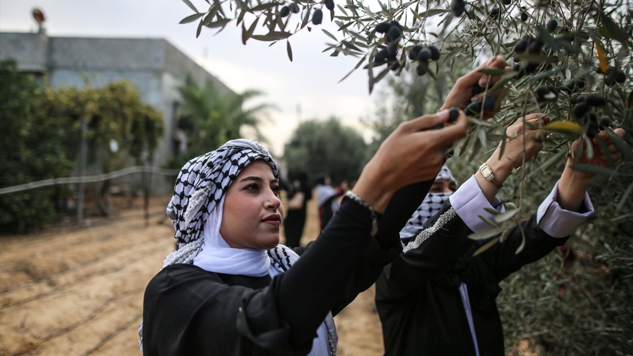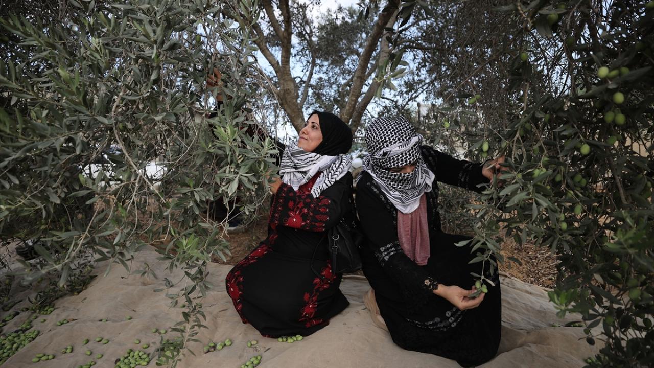 Gazze Şeridi'nde zeytin hasadının başlamasıyla Han Yunus kentindeki Filistinliler, mahsullerini topladı.