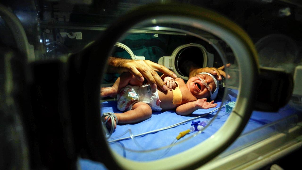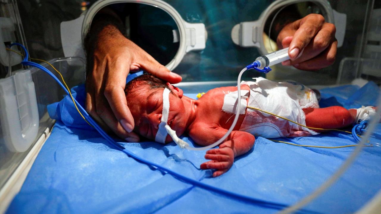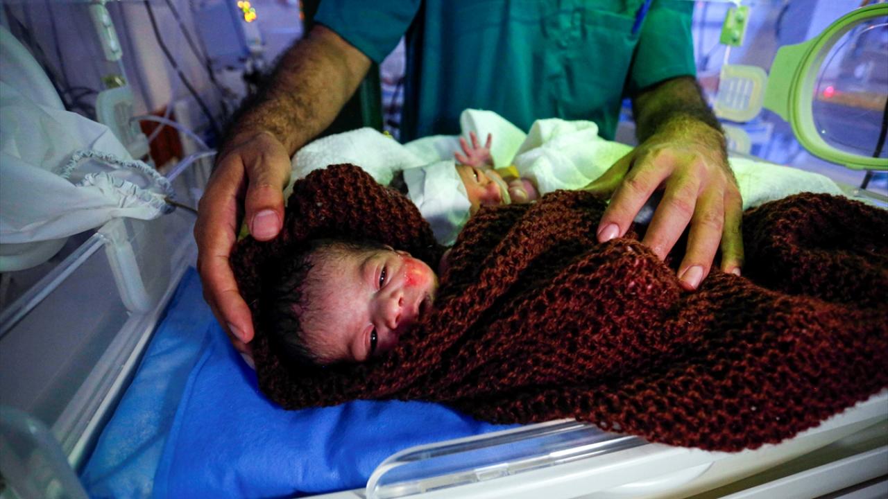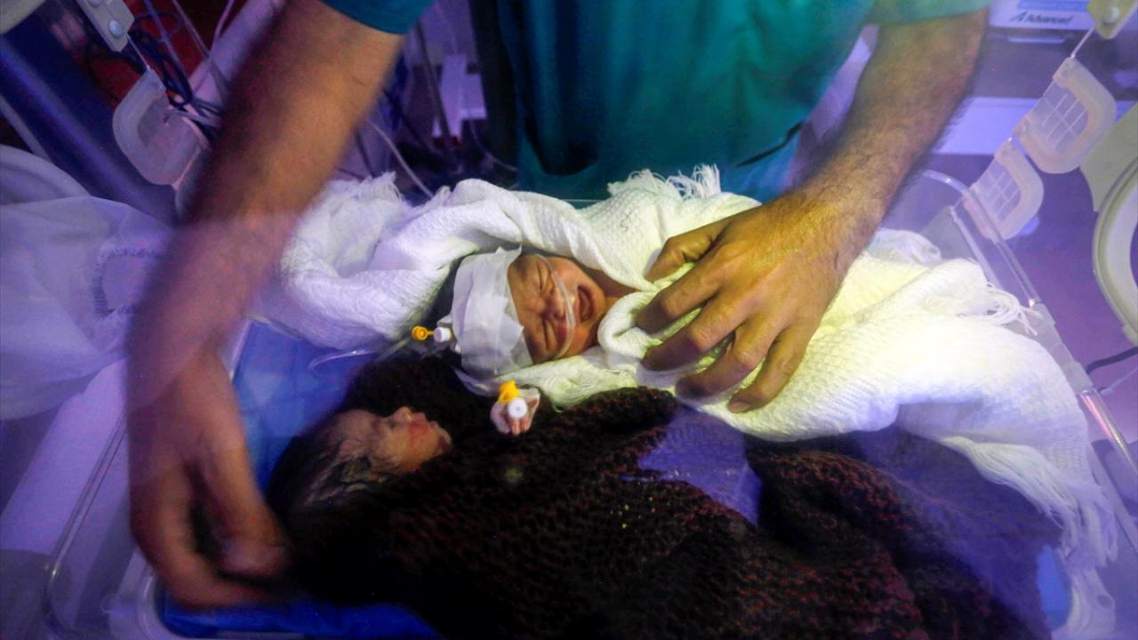 AA kameralarına yansıyan görüntülerde, doktorların, kuvözlerdeki bebeklere müdahale ettiği görüldü.