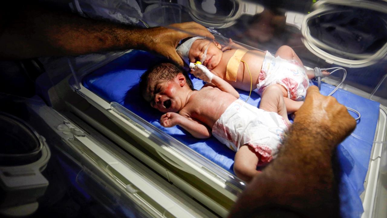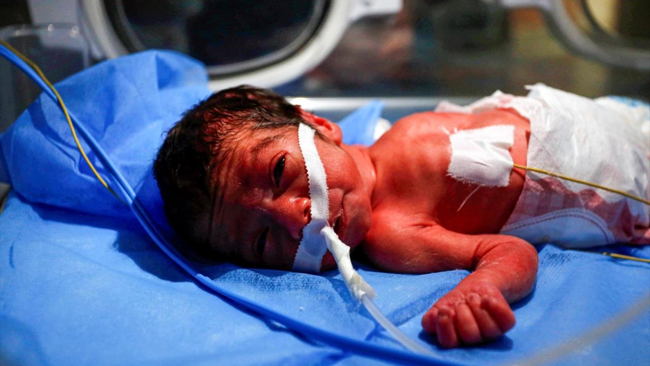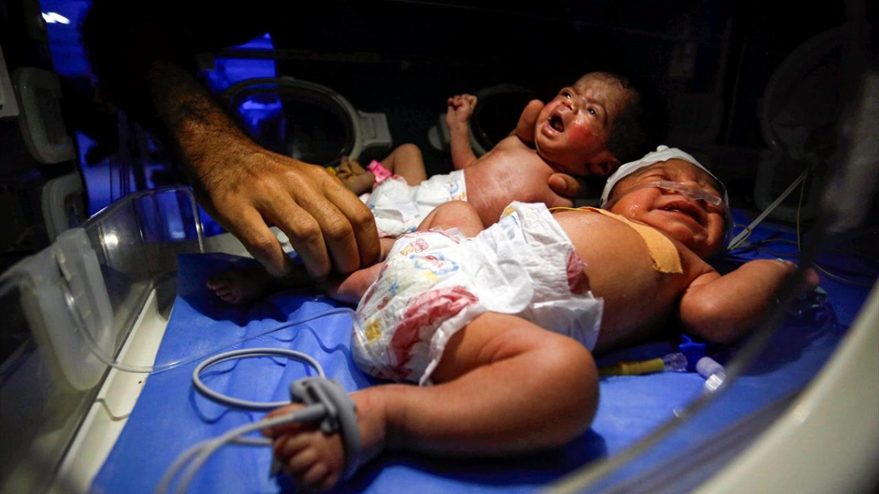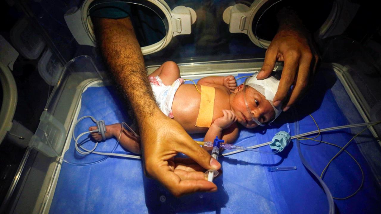 AA kameralarına yansıyan görüntülerde, doktorların, kuvözlerdeki bebeklere müdahale ettiği görüldü.