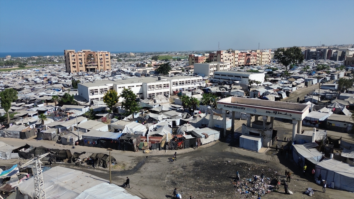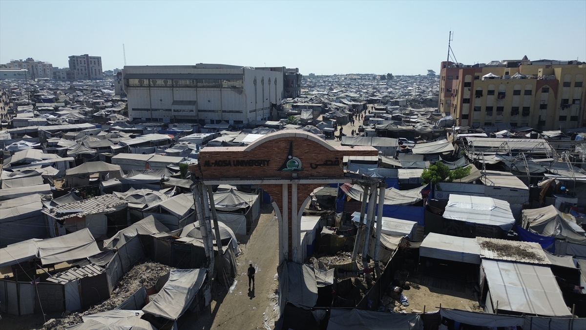 Gazze Şeridi'nin güneyindeki Han Yunus kentinde bulunan Aksa Üniversitesi, İsrail saldırıları nedeniyle yerlerinden edilen Filistinliler için, sağlanan ateşkese rağmen barınma merkezi olmaya devam ediyor.