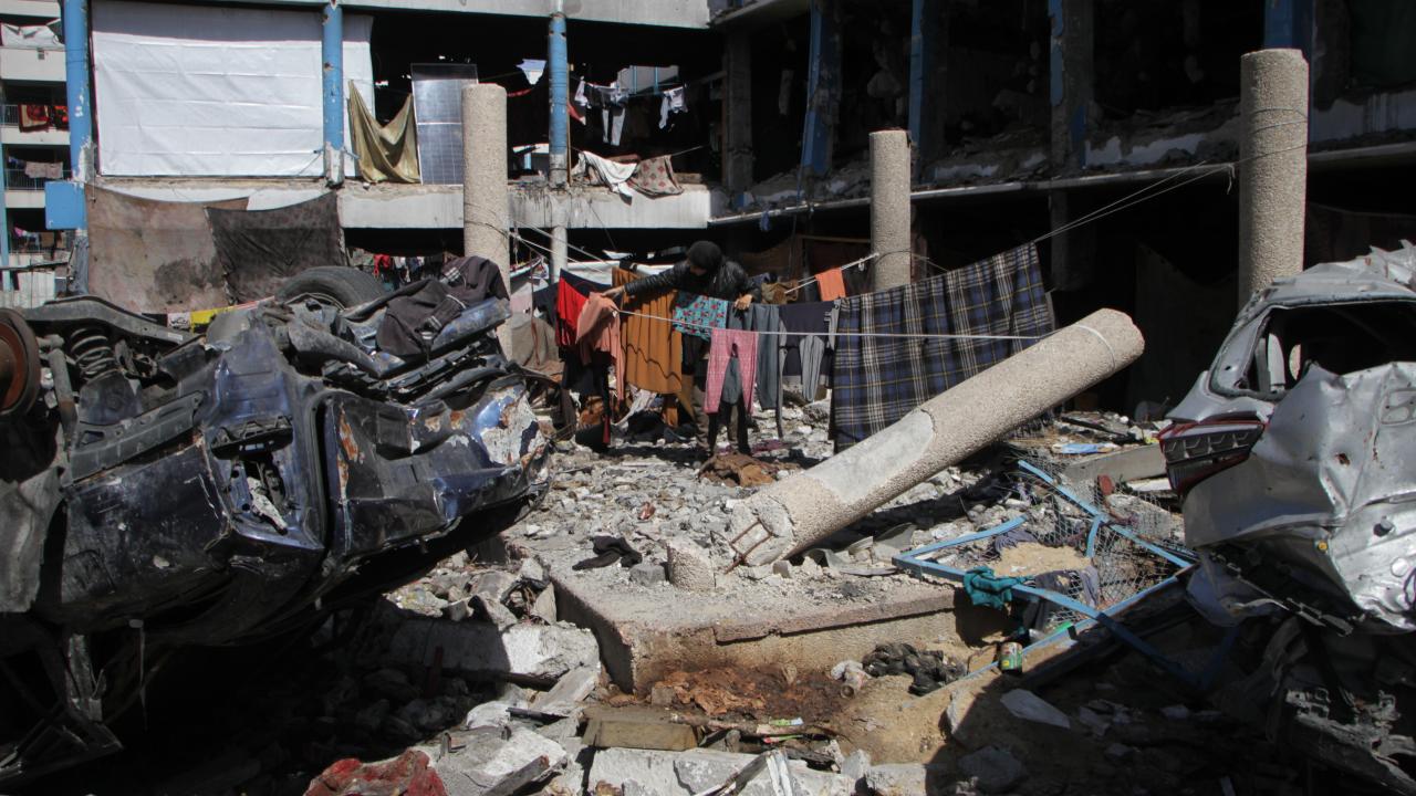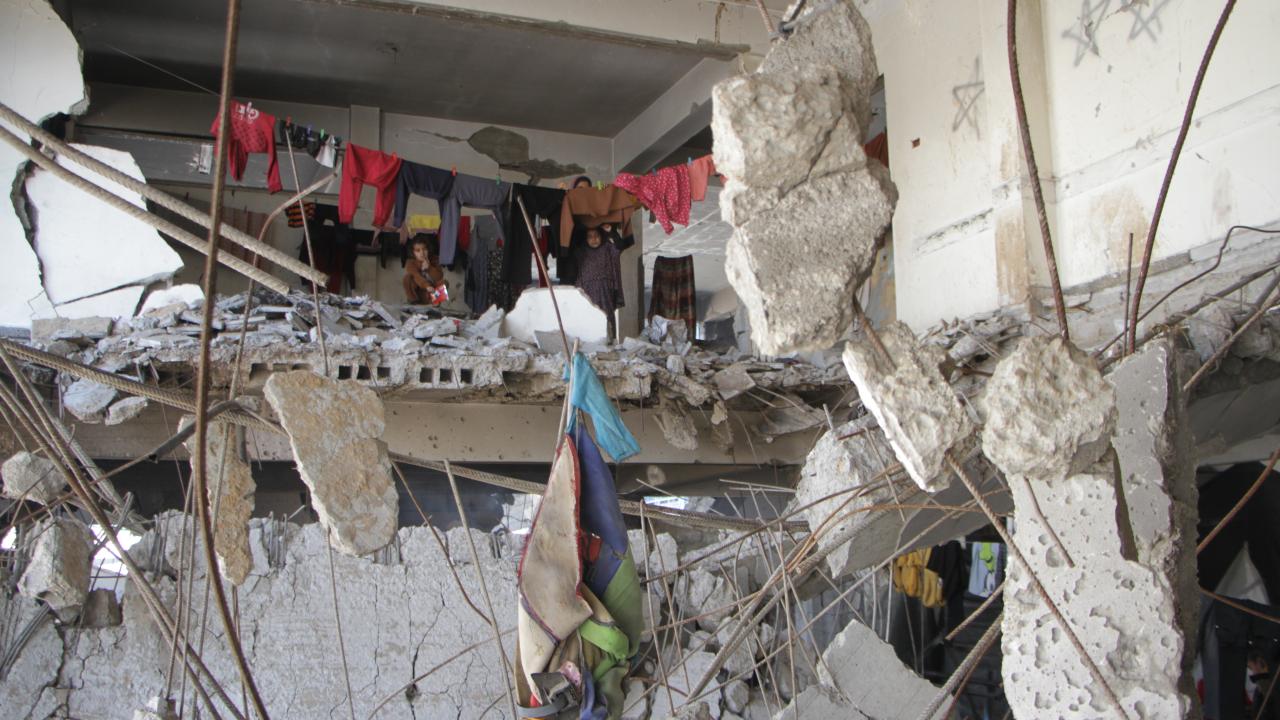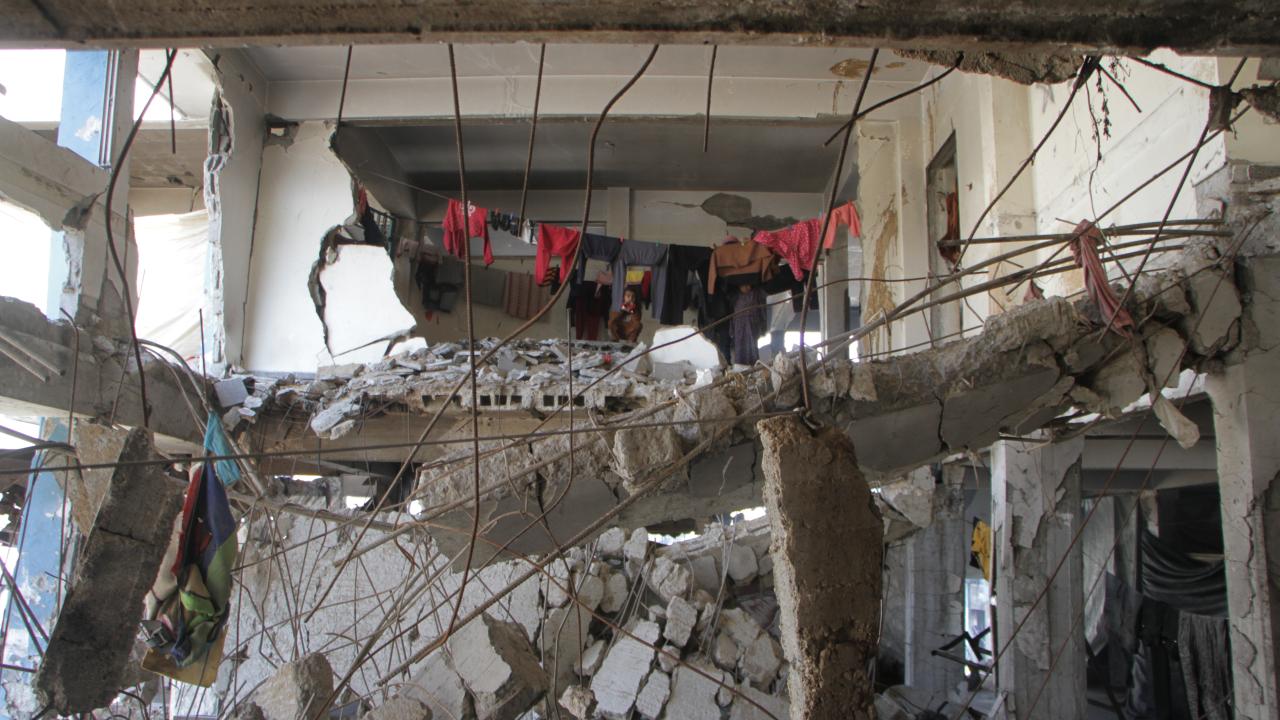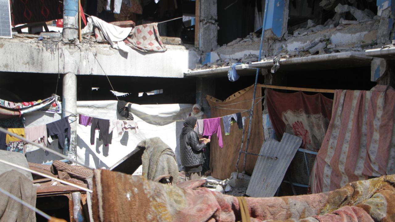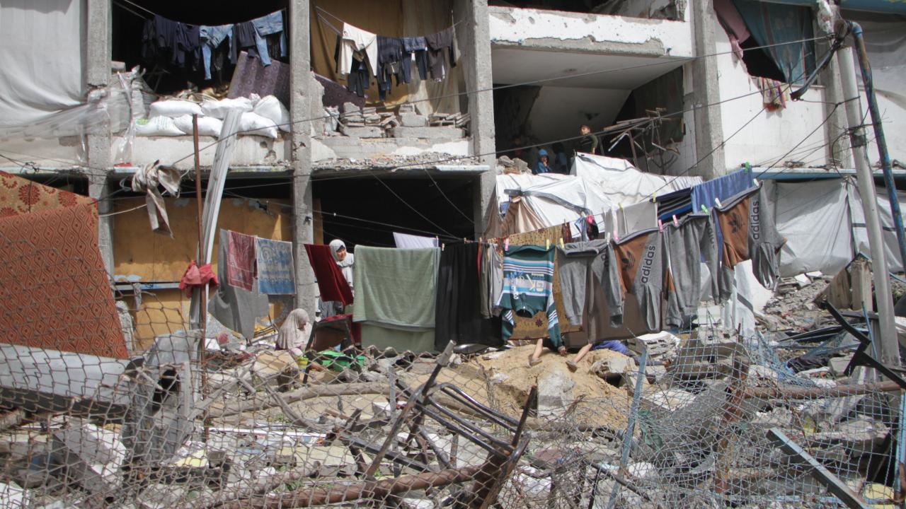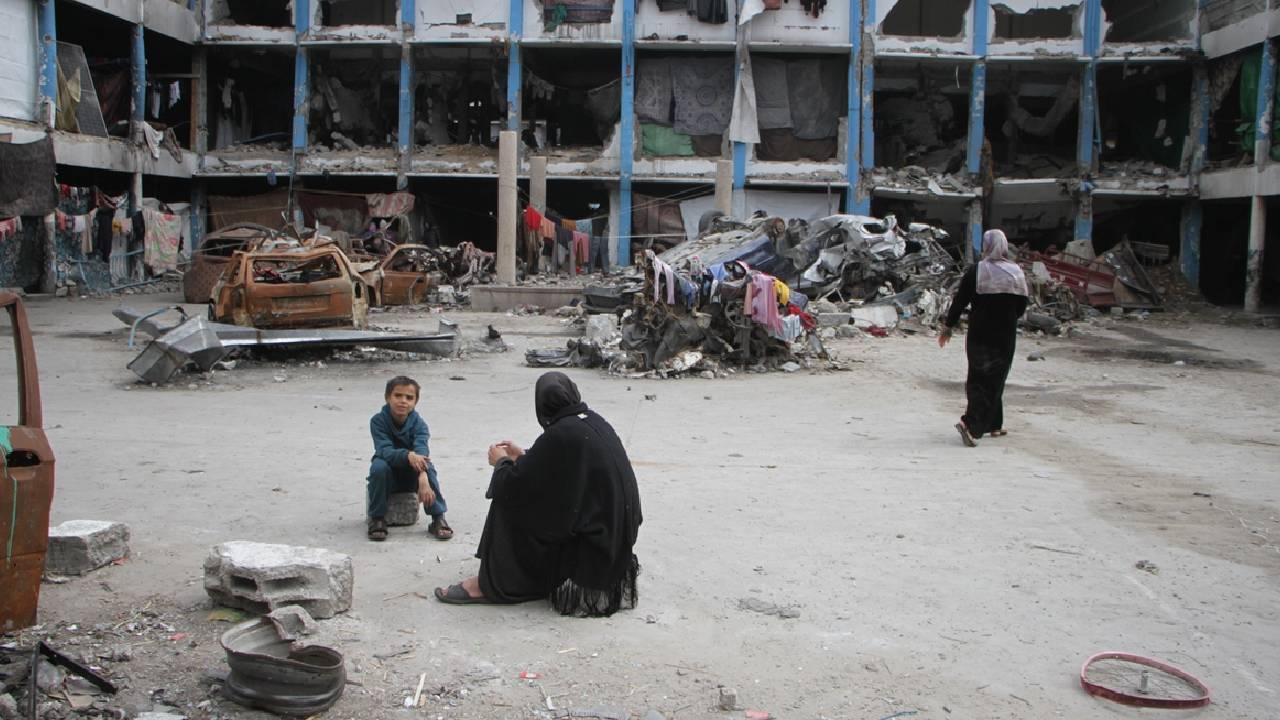 Gazze'deki BM okuluna sığınan Filistinliler, zor şartlar altında yaşamlarını sürdürüyor