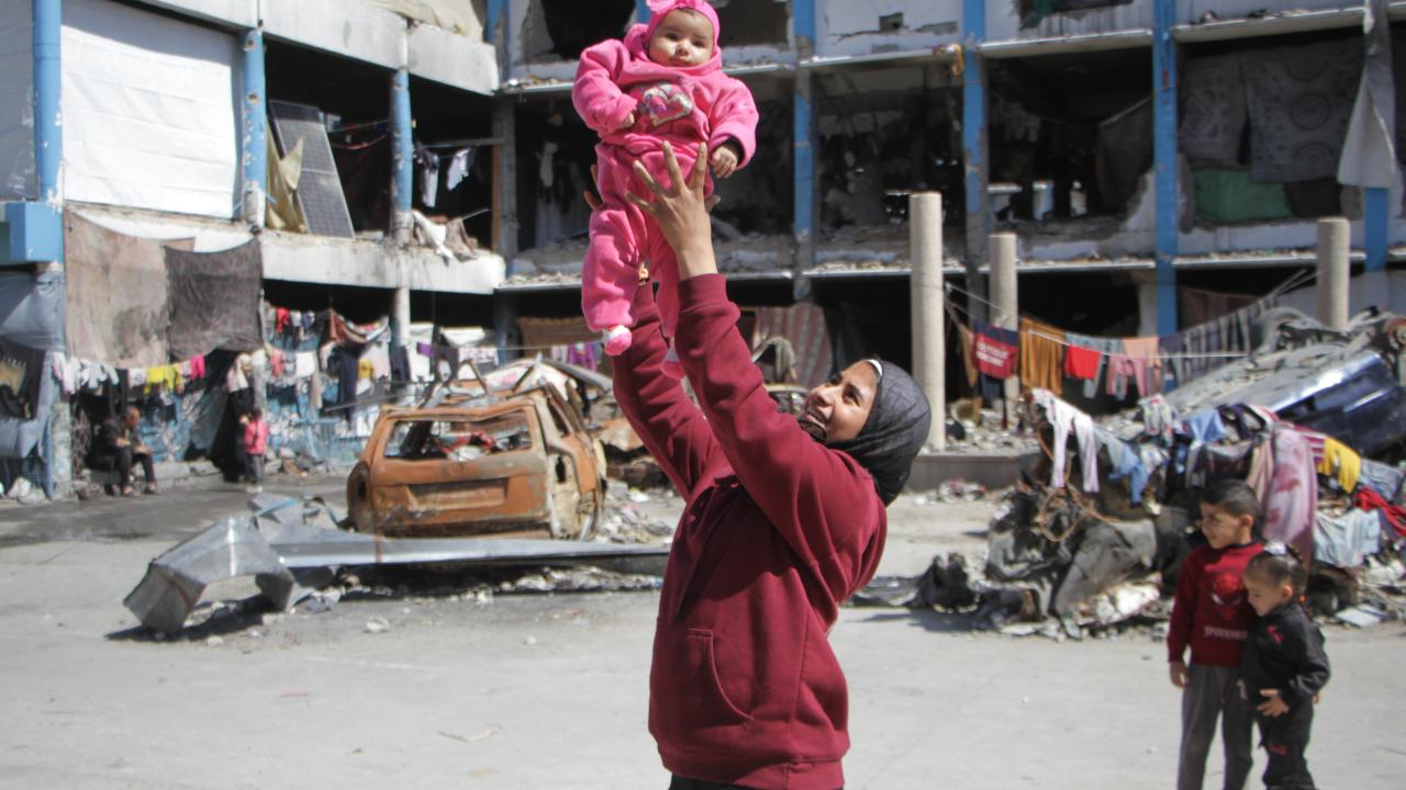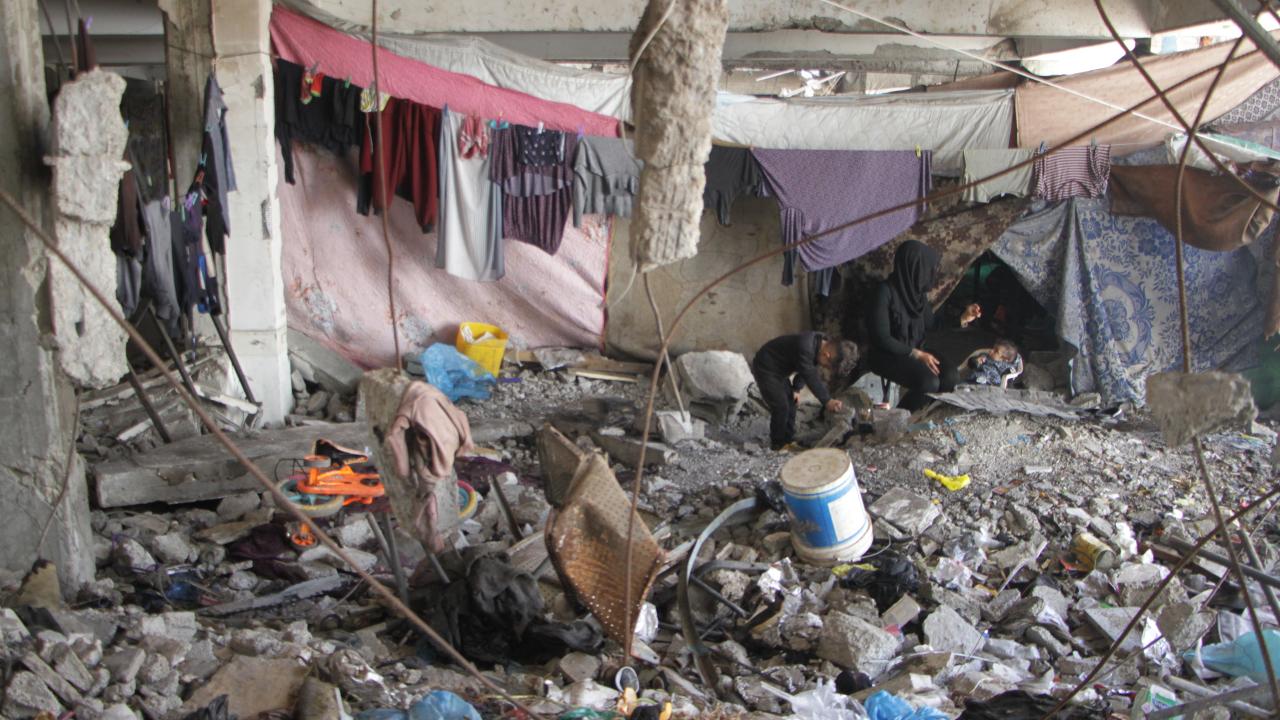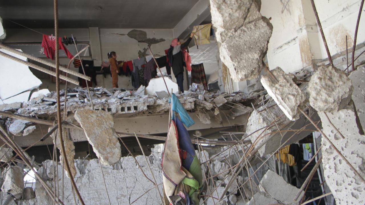 Saldırılar nedeniyle evlerini terk ederek Cibaliye Mülteci Kampı`nda daha önceki saldırılarda ağır hasar gören Birleşmiş Milletler Yakın Doğu`daki Filistinli Mültecilere Yardım ve Bayındırlık Ajansı`na ait bir okula sığınan Filistinli aileler, zor şartlar altında yaşamlarını sürdürüyor.