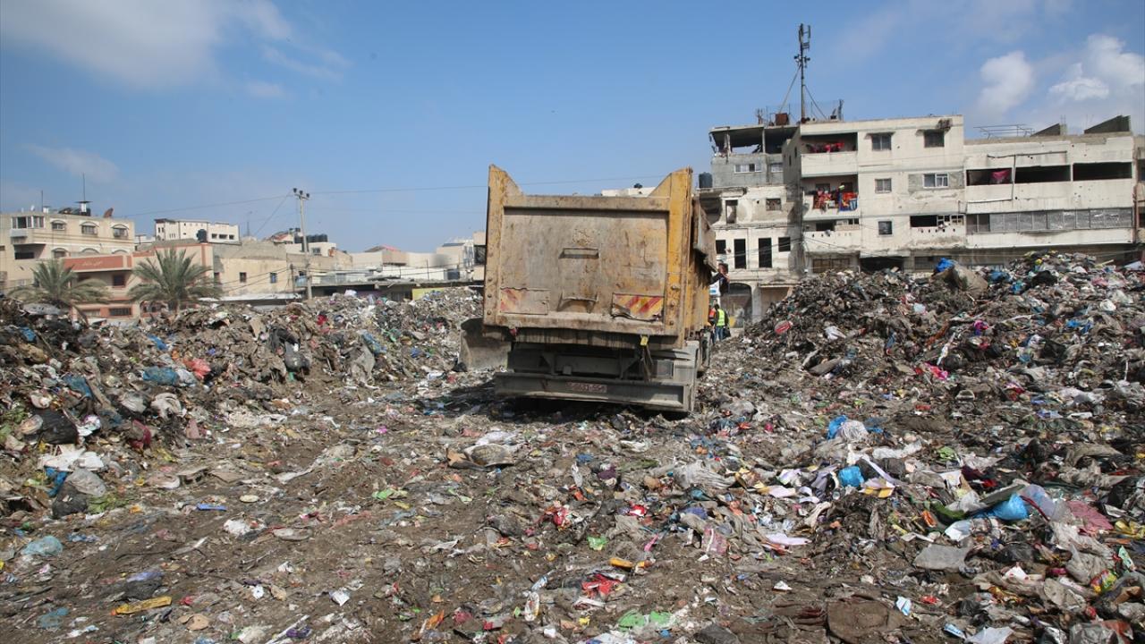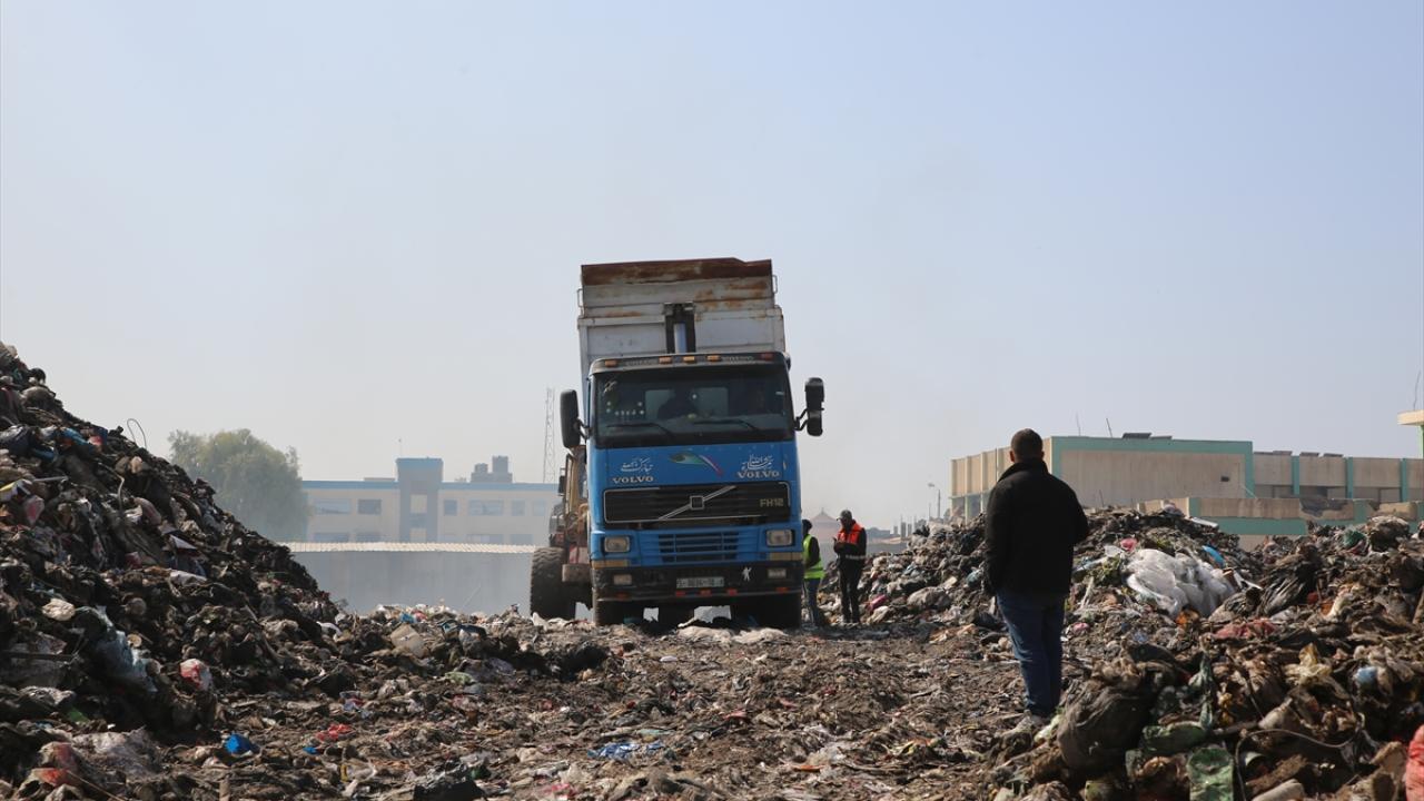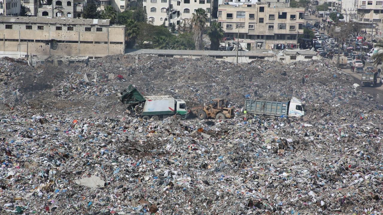 Gazze kentinde belediyelere bağlı araçların yetersizliği nedeniyle çöpler sokaklarda ve yerleşim yerlerine yakın alanlarda birikiyor.