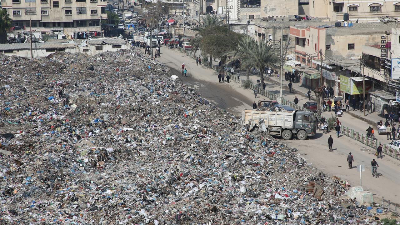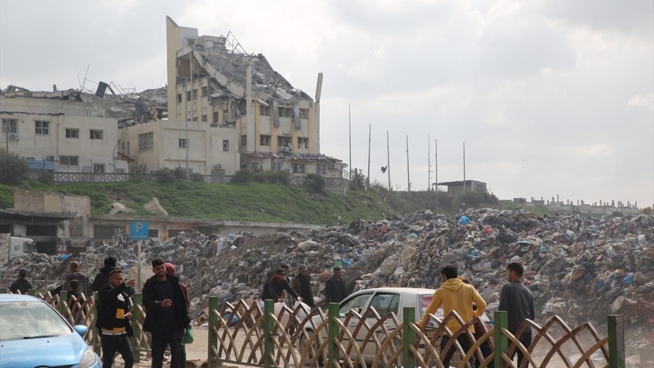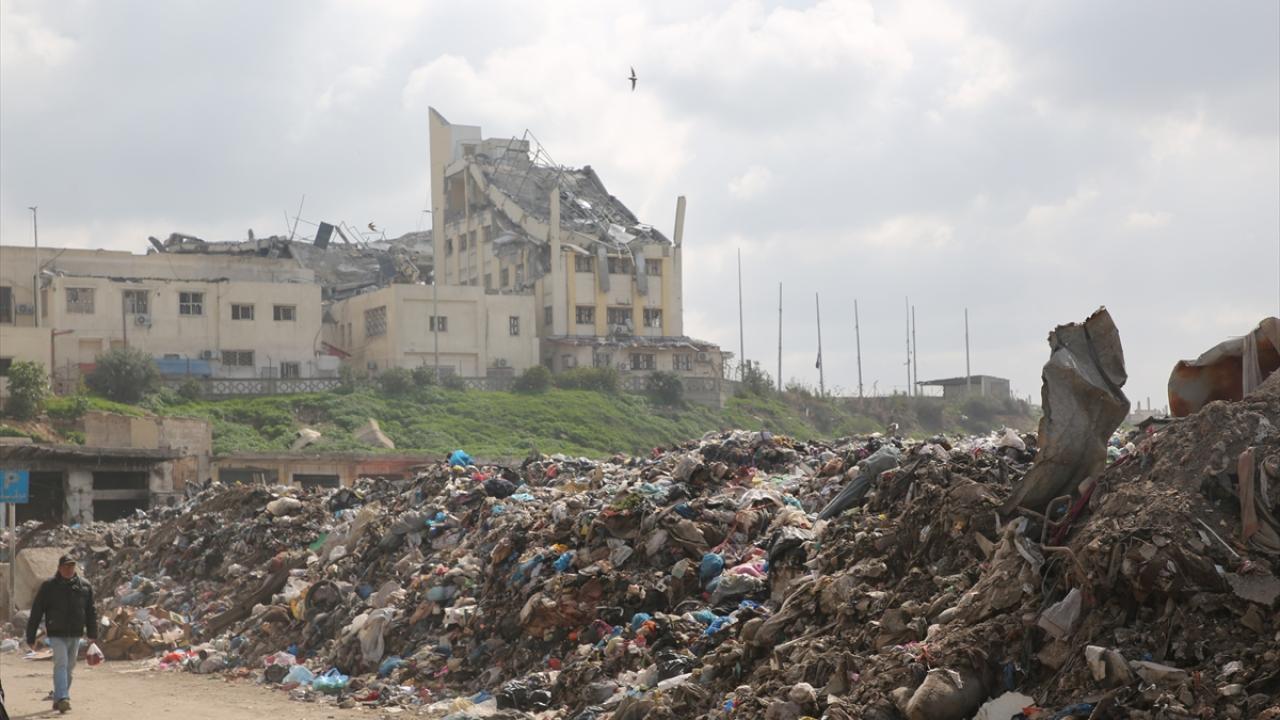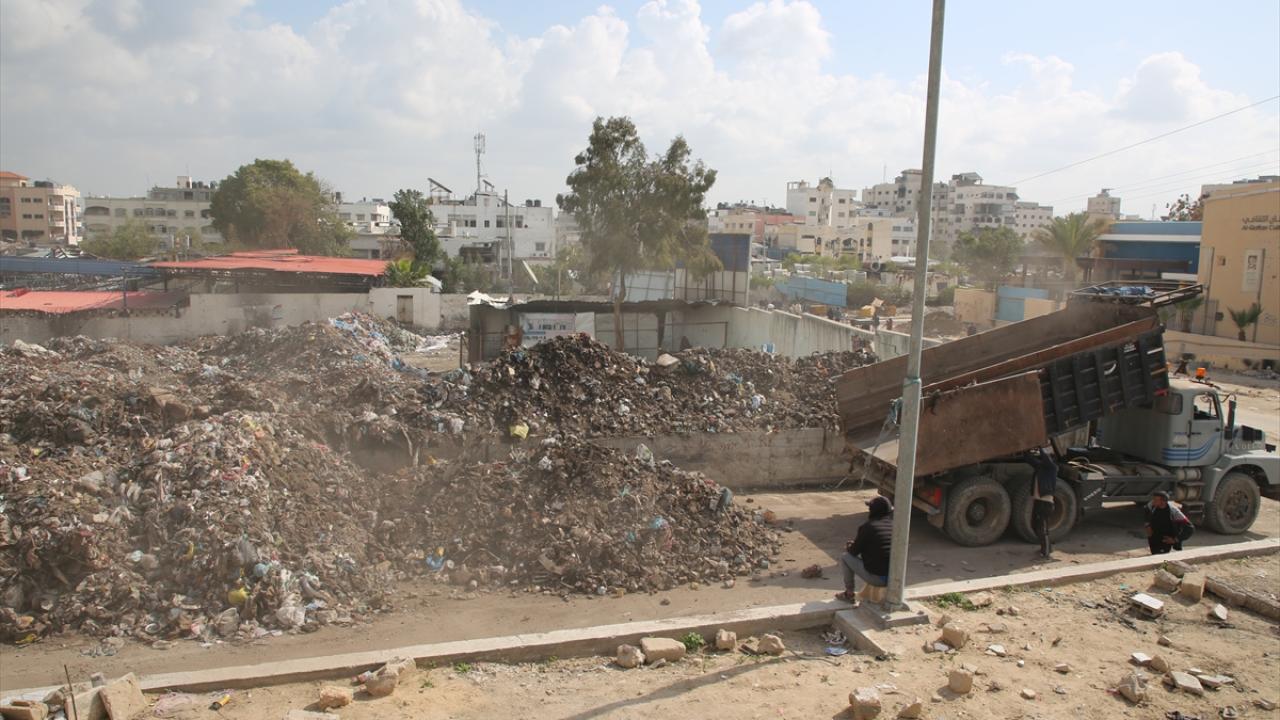 Gazze kentinde belediyelere bağlı araçların yetersizliği nedeniyle çöpler sokaklarda ve yerleşim yerlerine yakın alanlarda birikiyor.