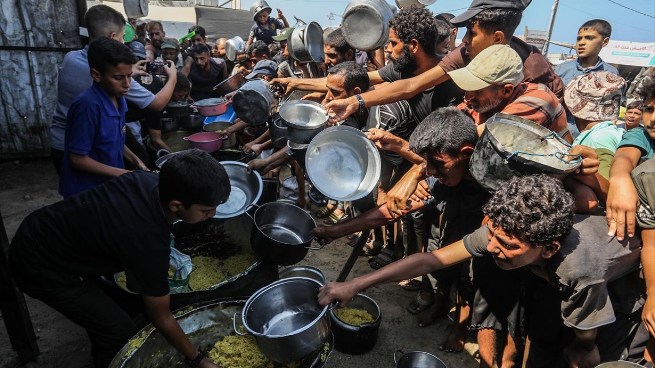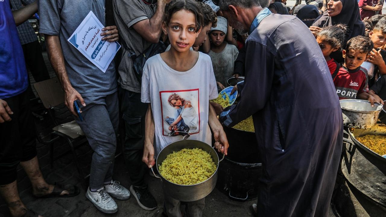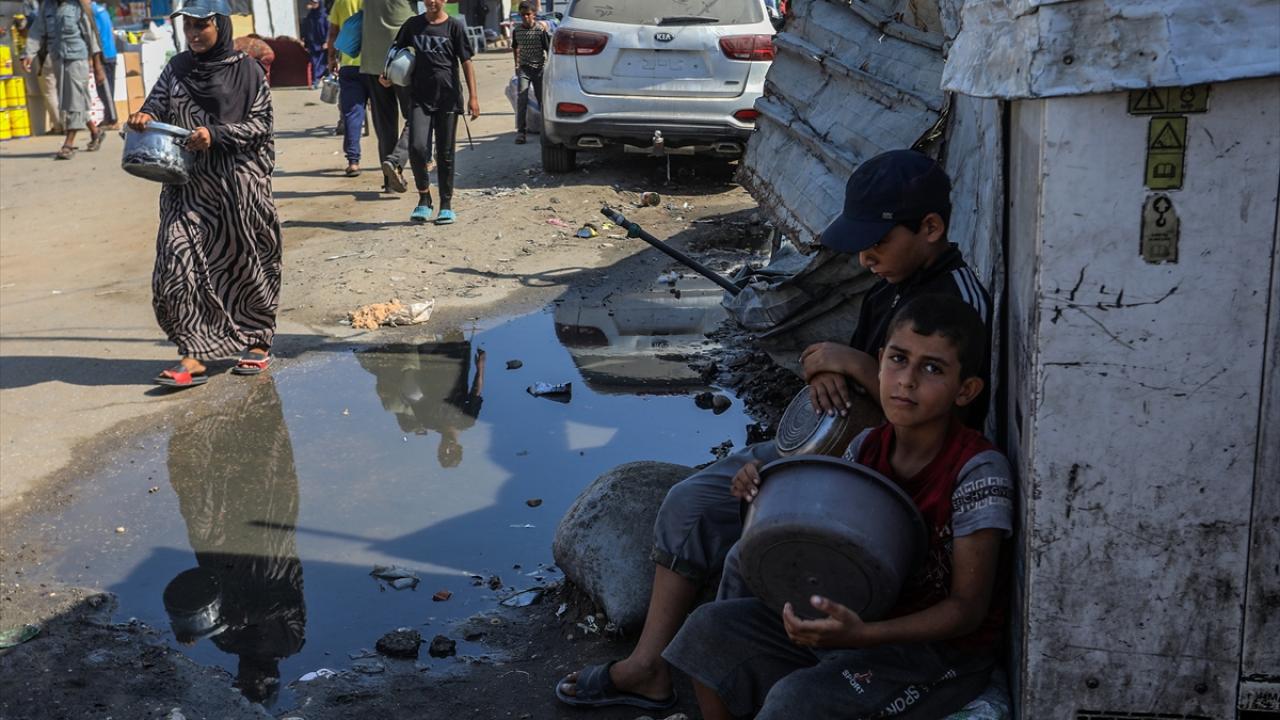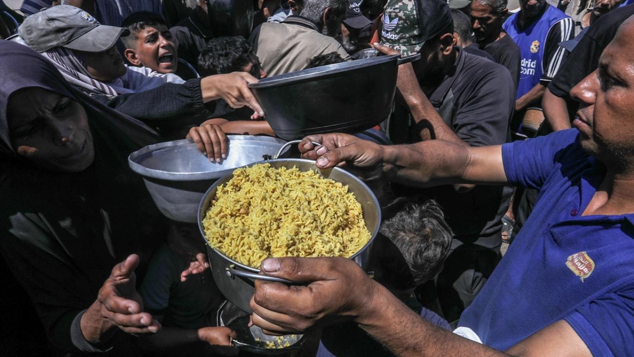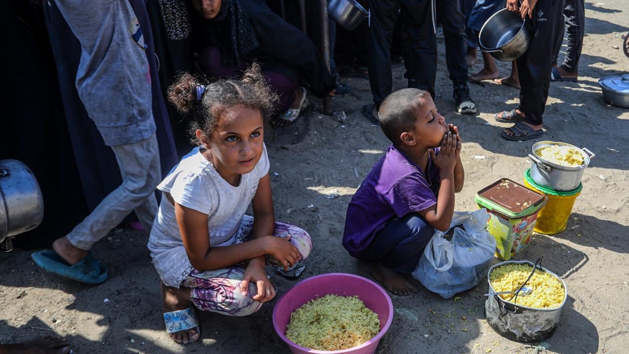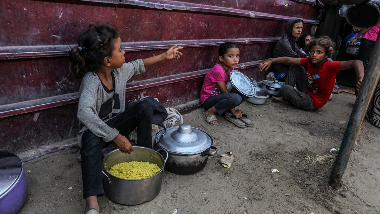 Bir hayır kurumu tarafından Gazze`nin Han Yunus kentine bağlı Mavasi bölgesinde yerinden edilen Filistinlilerin kaldığı çadır kentte, sıcak yemek dağıtımı yapıldı.