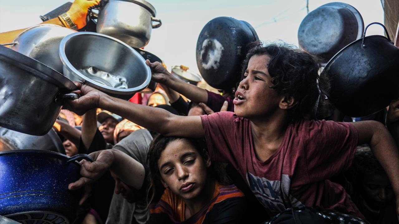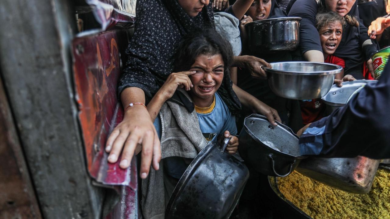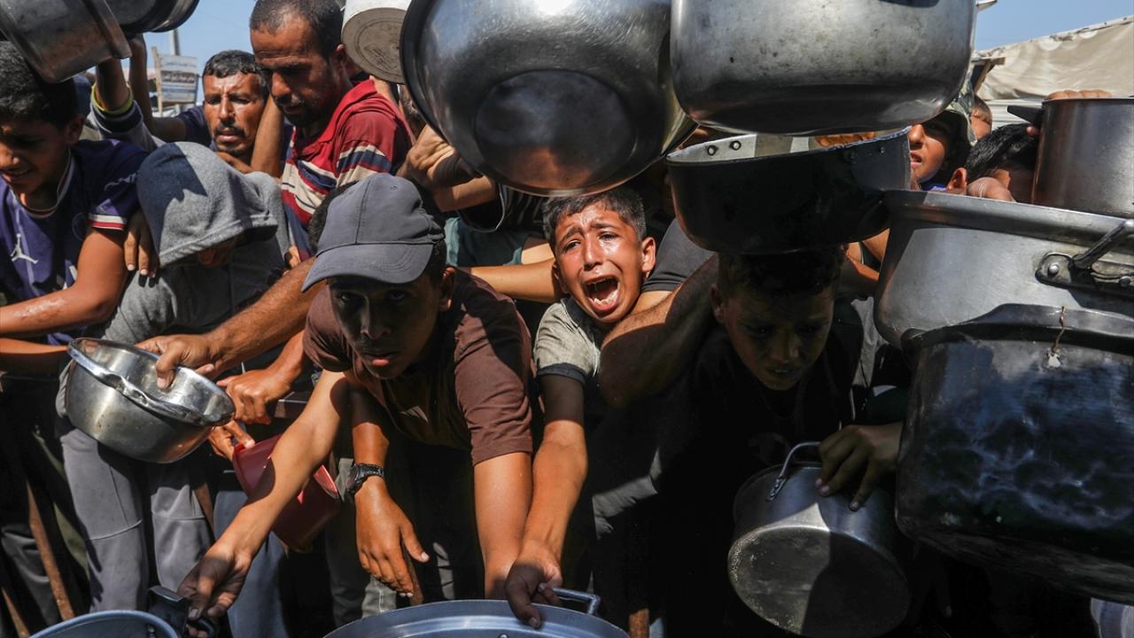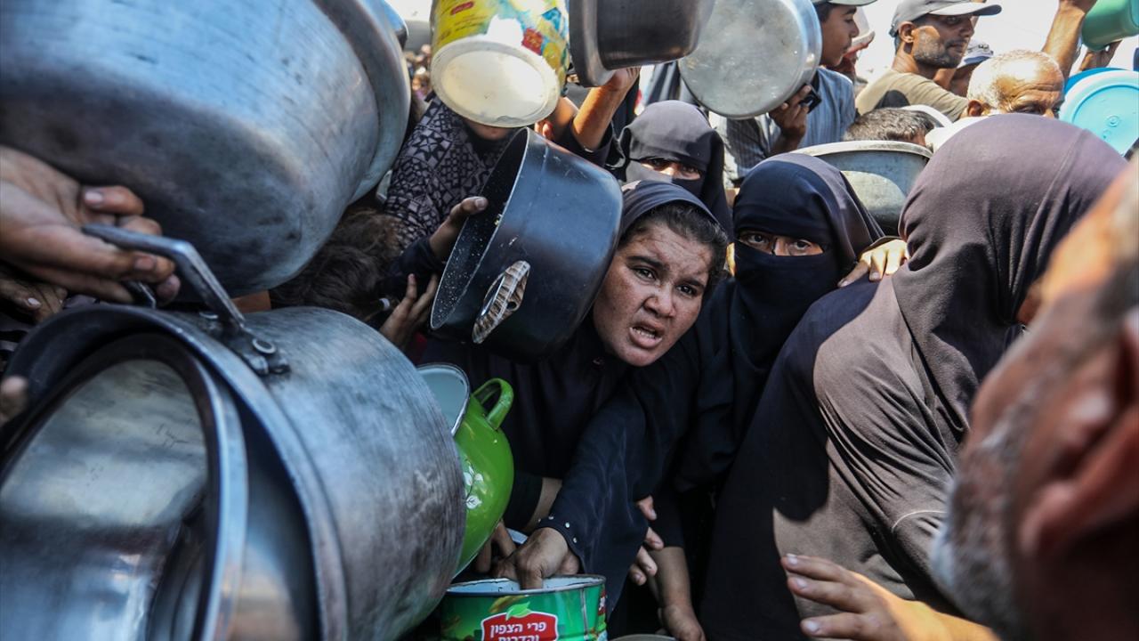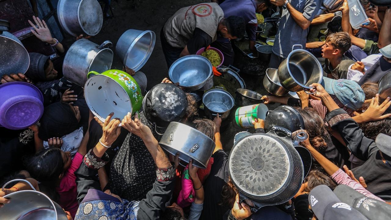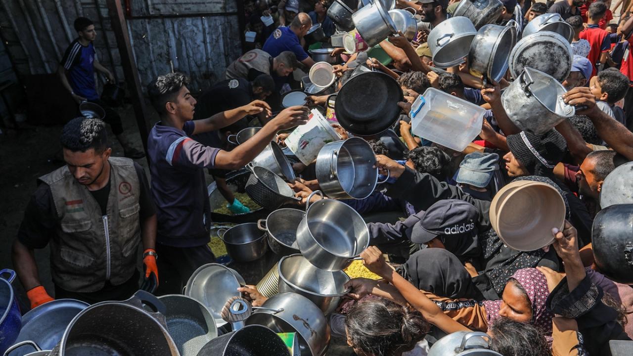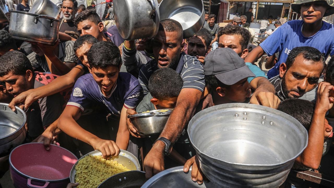 Bir hayır kurumu tarafından Gazze`nin Han Yunus kentine bağlı Mavasi bölgesinde yerinden edilen Filistinlilerin kaldığı çadır kentte, sıcak yemek dağıtımı yapıldı.