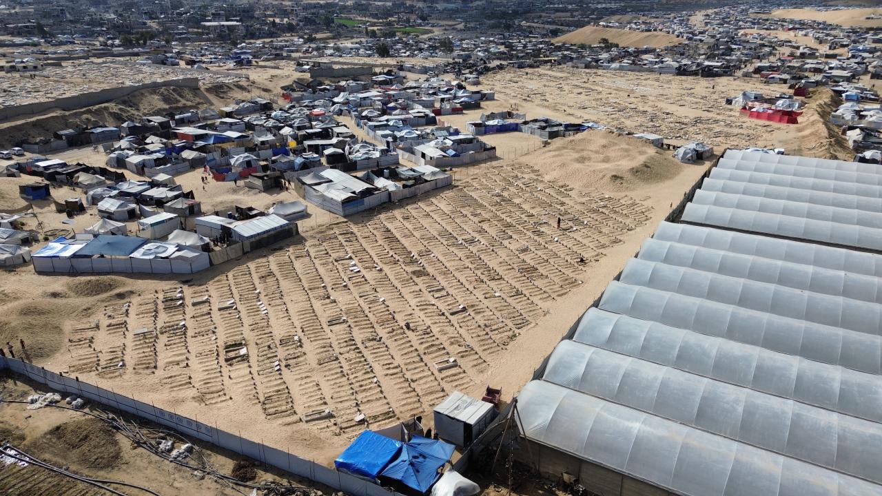 Evlerini yıkılan ve kalacak yer bulamayan Filistinliler, mezarlık çevresinde kurdukları çadırlarda yaşamlarını sürdürüyor.