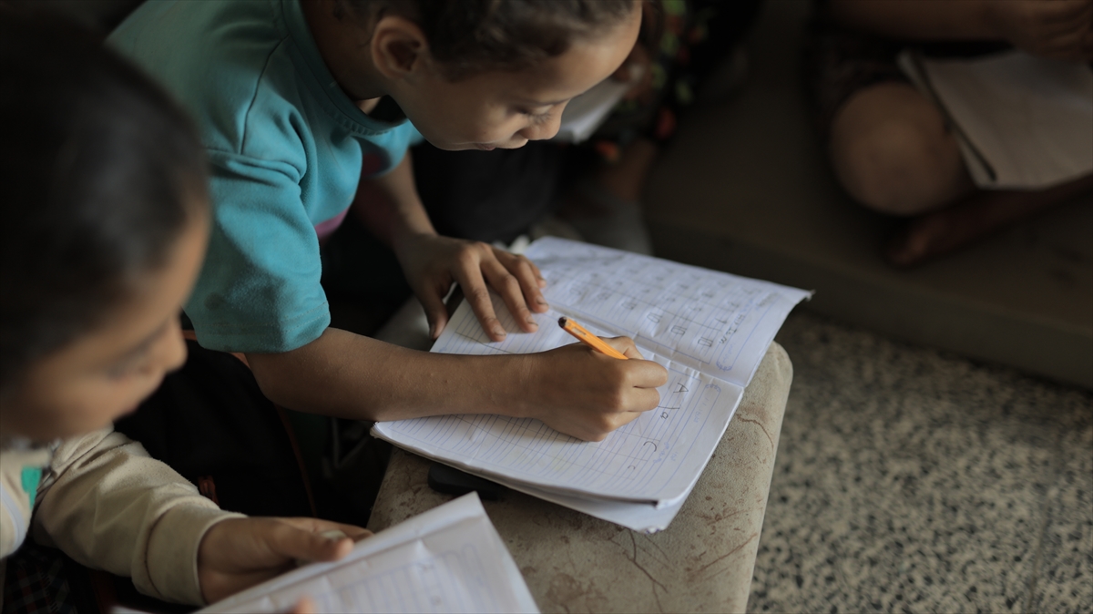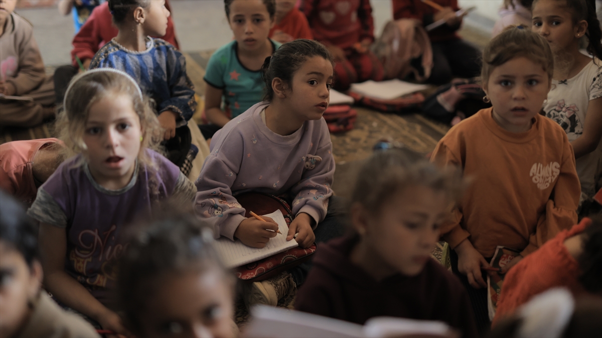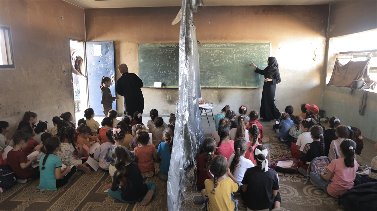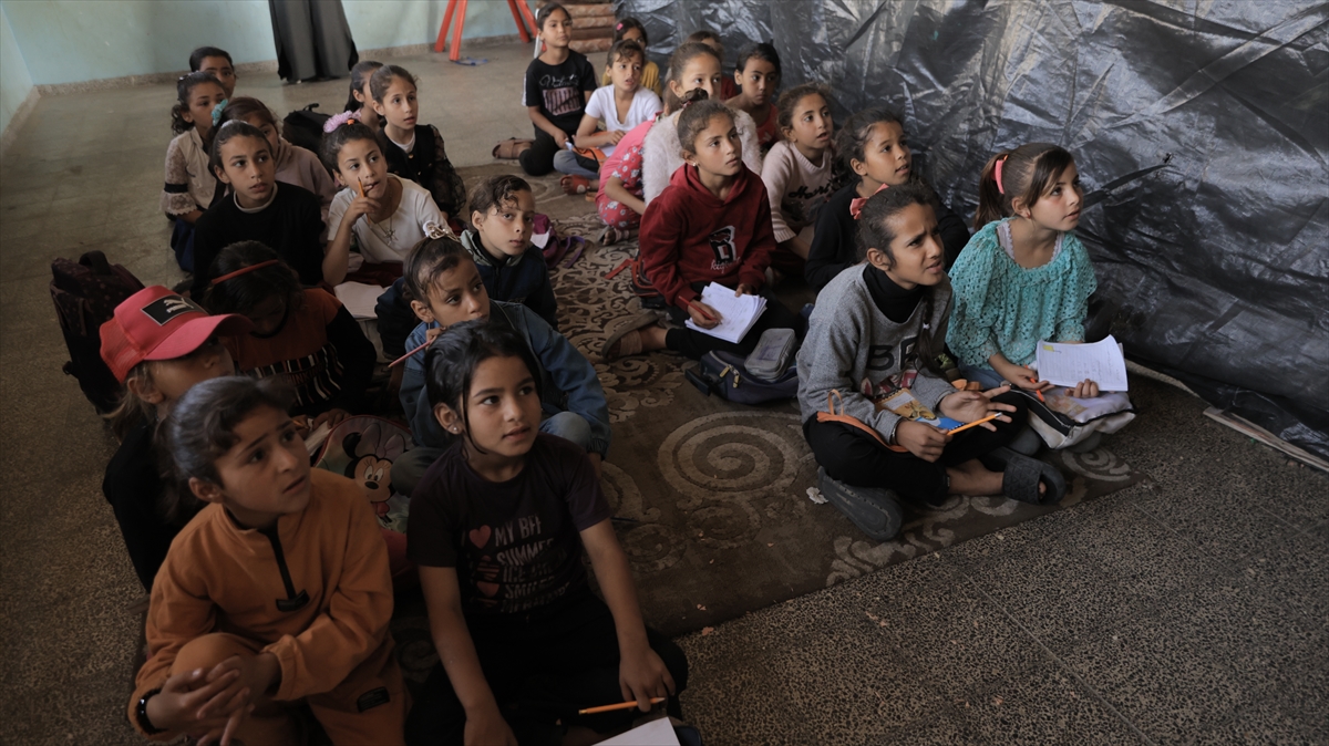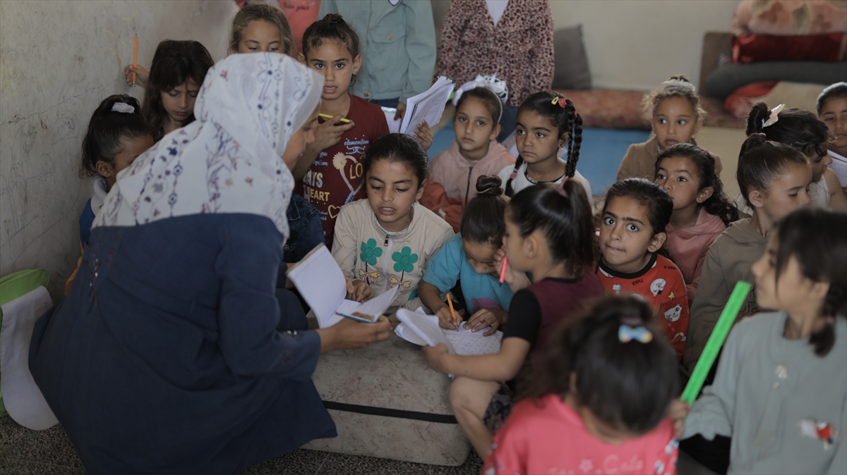 İsrail'in abluka altındaki Gazze Şeridi'ne yönelik acımasız ve yıkıcı saldırıları aralıksız devam ederken bir grup gönüllü öğretmen, yerinden edilen ve sığındıkları Gazze'nin kuzeyindeki Beyt Lahya Lisesi'nde 400 çocuğa yakın eğitim imkanı kısıtlı şartlar dahilinde sunmaya çalışıyor.