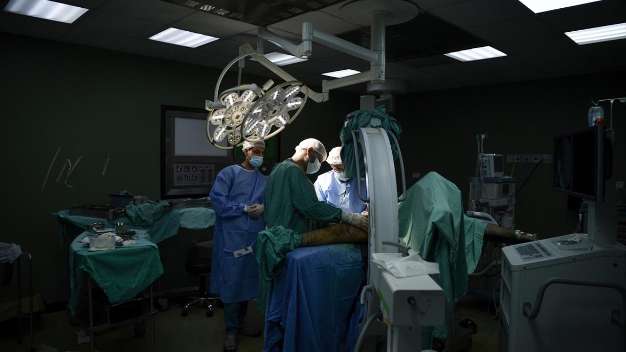 Gazze'nin Han Yunus kentindeki Nasır Hastanesi'nde görev yapan doktor ve hemşireler, İsrail saldırılarında uzuvlarından yaralanan Filistinlileri tedavi etmek için yoğun mesai harcıyor.