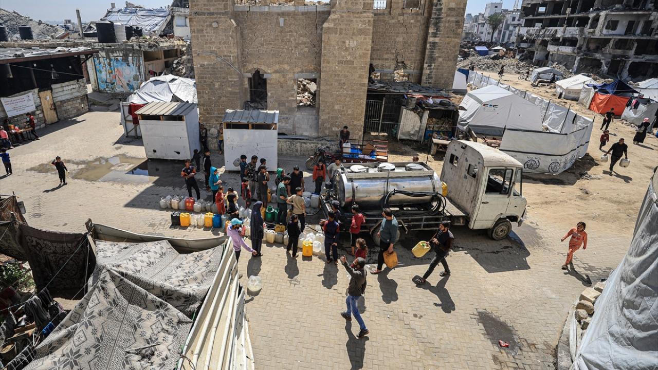 Gazze kentinde yaşayan Filistinliler, su ihtiyaçlarını tankerlerle dağıtılan suyu bidonlara doldurarak karşılamaya çalışıyor