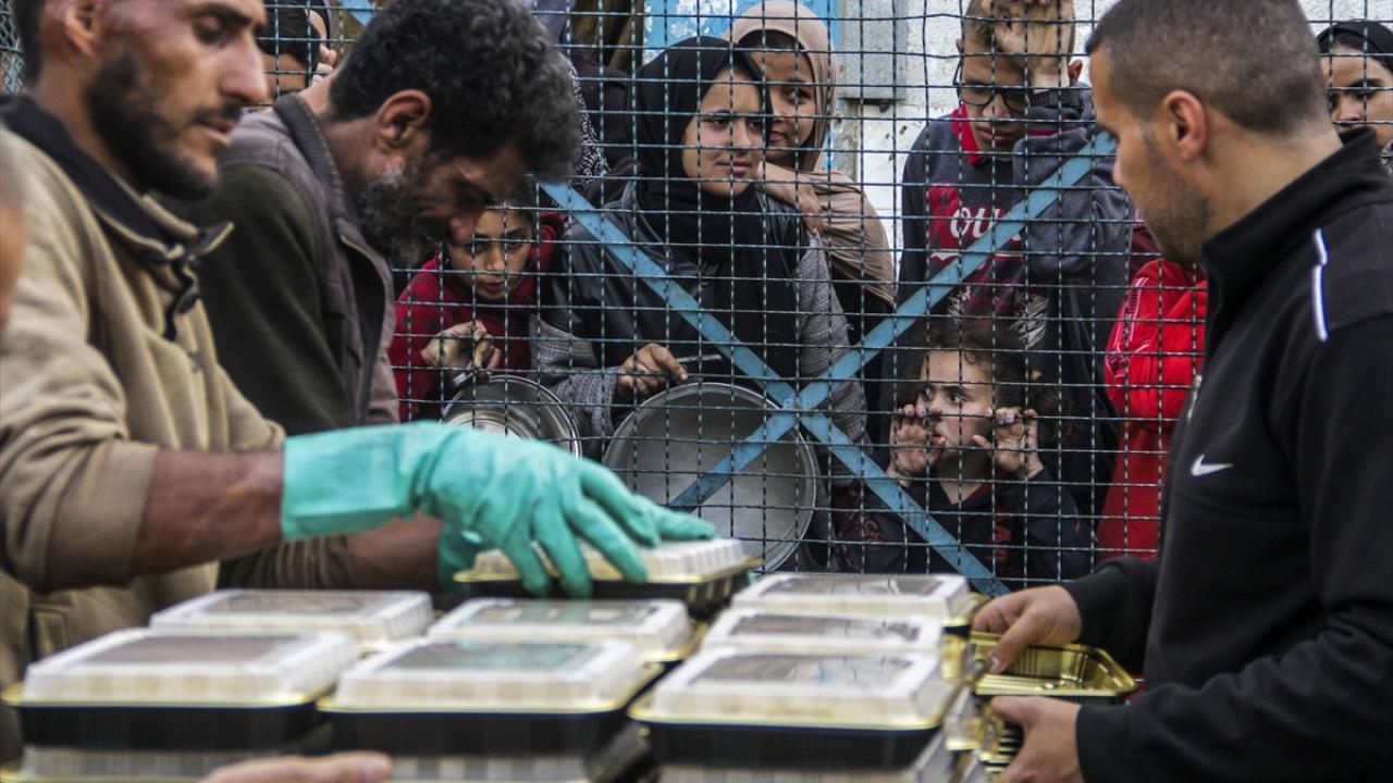 Gazze Şeridi'nin Cibaliye Mülteci Kampı'nda bir hayır kurumu, İsrail ordusunun 7 Ekim'den bu yana düzenlediği saldırılar nedeniyle evlerini terk etmek zorunda kalan Filistinlilere, yemek dağıttı.