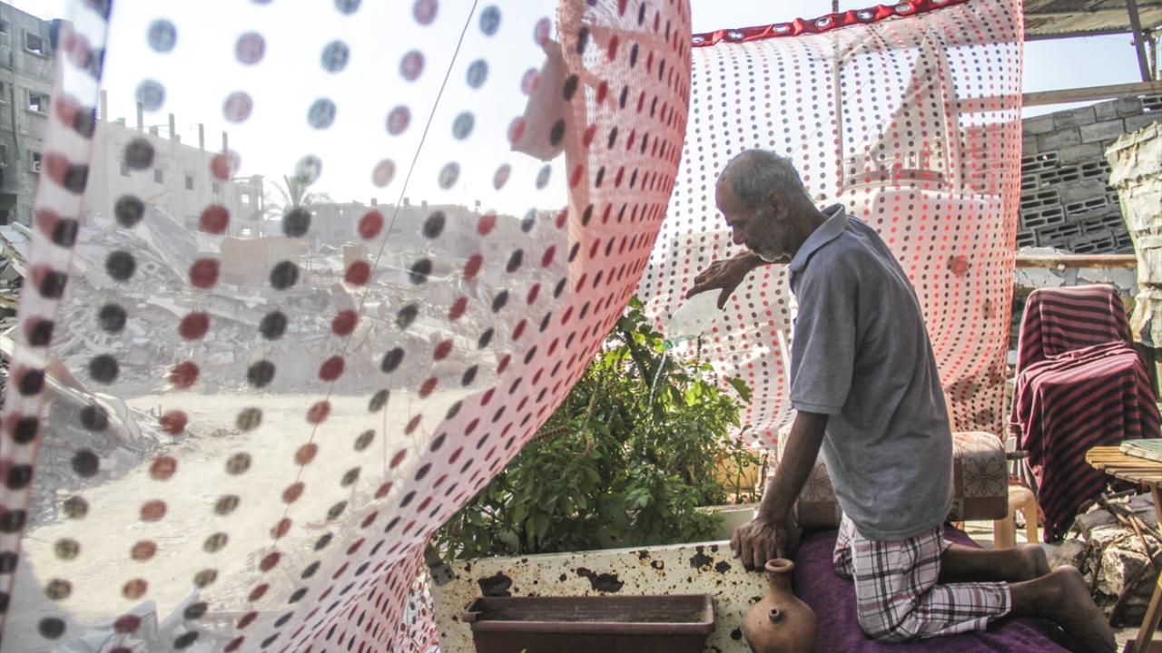 Abu Nael Al-Kahlot ve ailesi, İsrail güçlerinin saldırılarında yıkılan Gazze Şeridi'nin kuzeyindeki Beyt Lahya bölgesindeki evlerinin üzerine kurdukları çadırda yaşıyor. Aile, İsrail saldırılarından kaçarak Gazze'nin farklı yerlerine göç ettikten sonra Beyt Lahya'ya geri döndü ve yıkılan evlerinin enkazında zor koşullar altında yaşamlarını sürdürmeye çalışıyor.