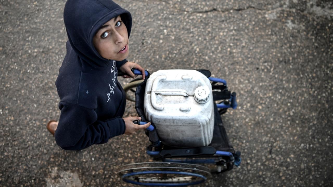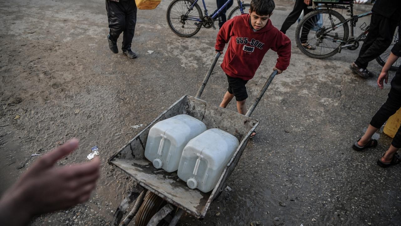 Filistinli çocuklar, ailelerine su ve gıda temin edebilmek için büyükler kadar mücadele veriyor. Çocuklar, bidonlara doldurdukları suları ağır olmasına rağmen el arabaları veya taşıyarak çadırlarına taşıyor.