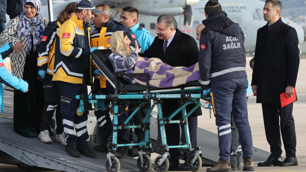 Gazze'den Mısır'a geçişleri sağlanan 61 hasta ve 49 refakatçi Milli Savunma Bakanlığına ait uçakla tedavi için Türkiye'ye getirildi. Sağlık Bakanı Fahrettin Koca, hastaları karşıladı.