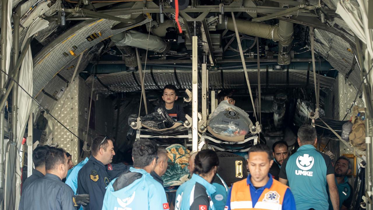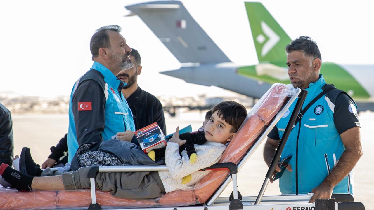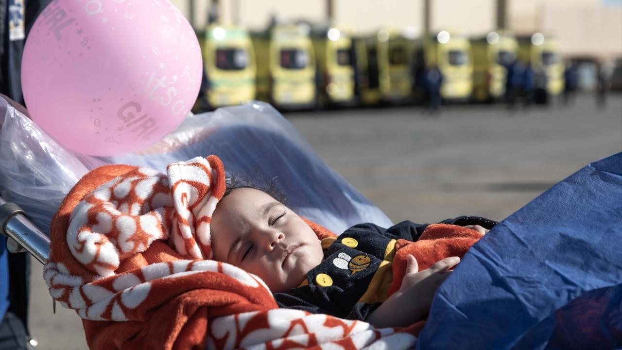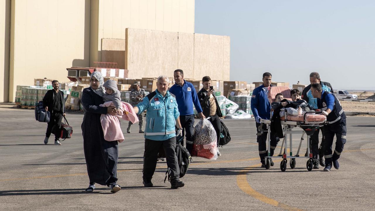 Gazze'den çıkarılan aralarında 7 aylık yaralı Hala Asraf isimli kız bebeğin de bulunduğu kanser ve ortopedi hastalarıyla refakatçilerini Ankara’ya getirecek uçak, El Ariş Havalimanı'ndan hareket etti.