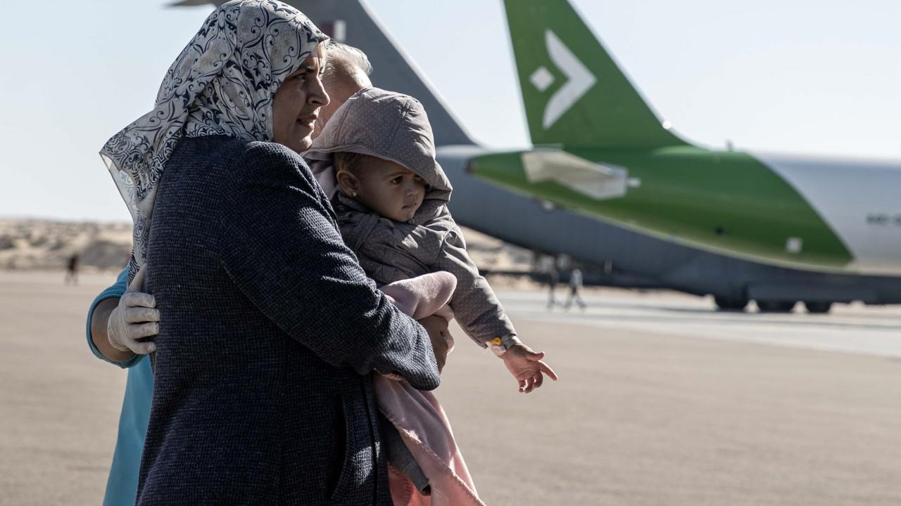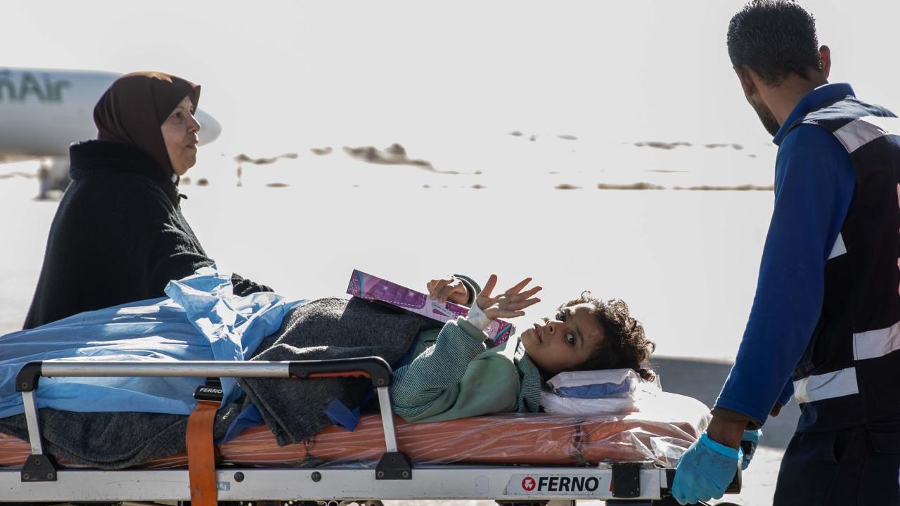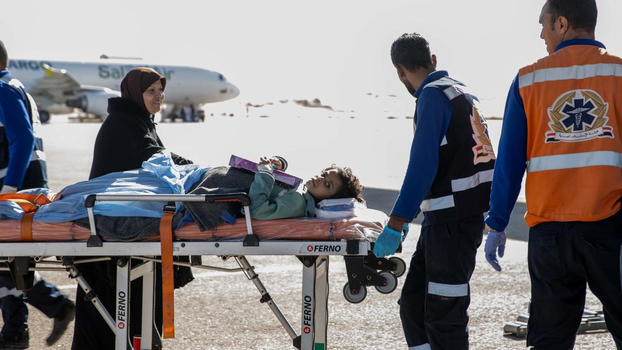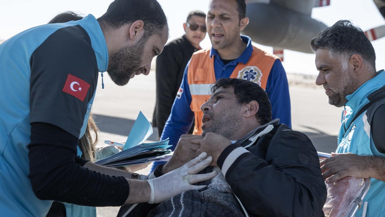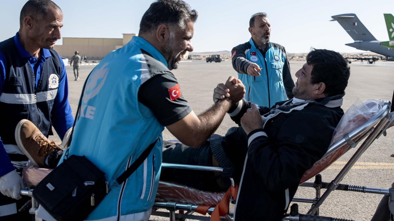 Gazze'den çıkarılan aralarında 7 aylık yaralı Hala Asraf isimli kız bebeğin de bulunduğu kanser ve ortopedi hastalarıyla refakatçilerini Ankara’ya getirecek uçak, El Ariş Havalimanı'ndan hareket etti.