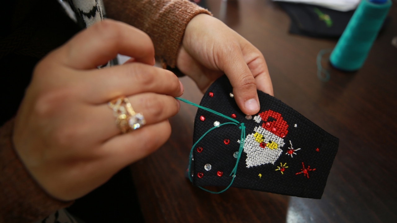 Gazzeli kadın tasarımcı maskeleri yeni yıl desenleri ile süslüyor