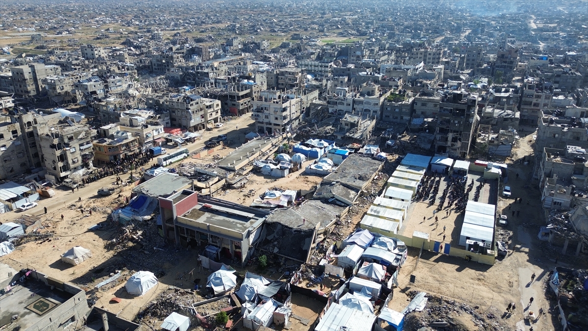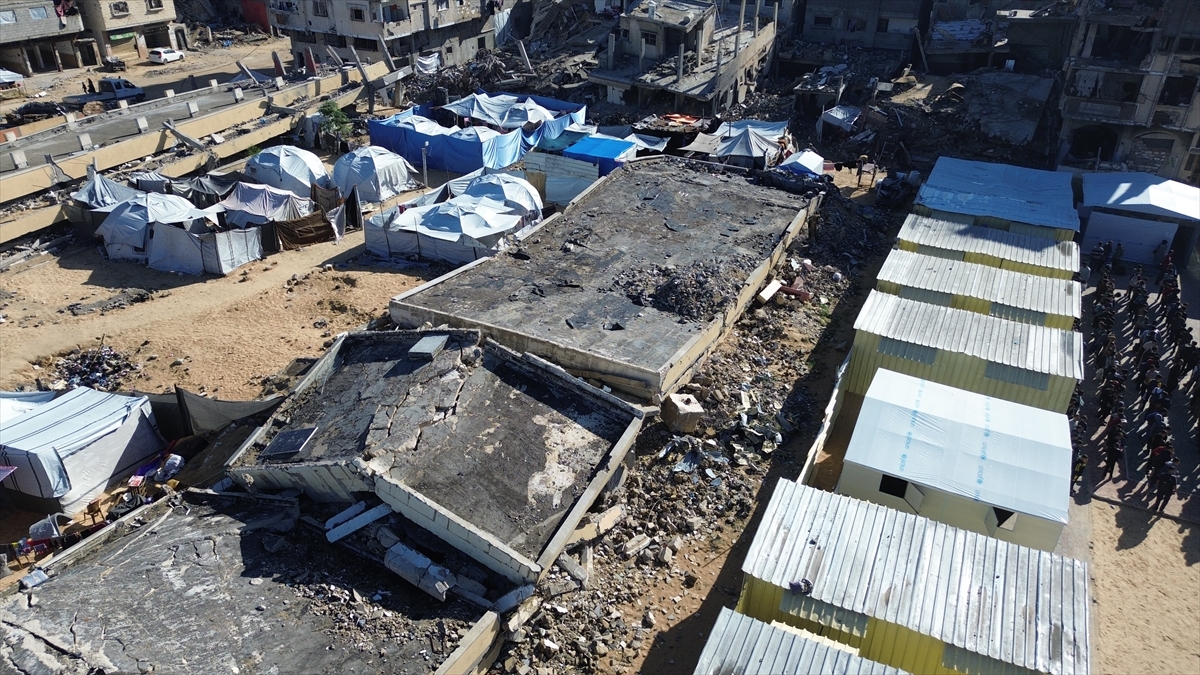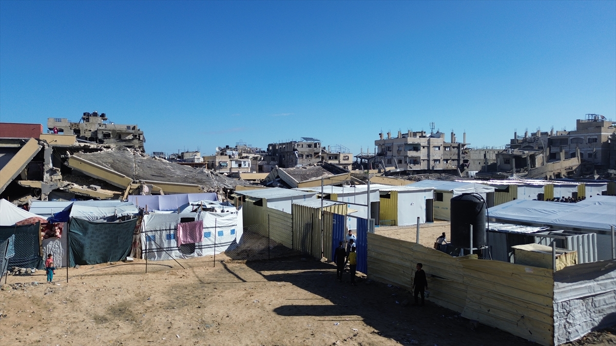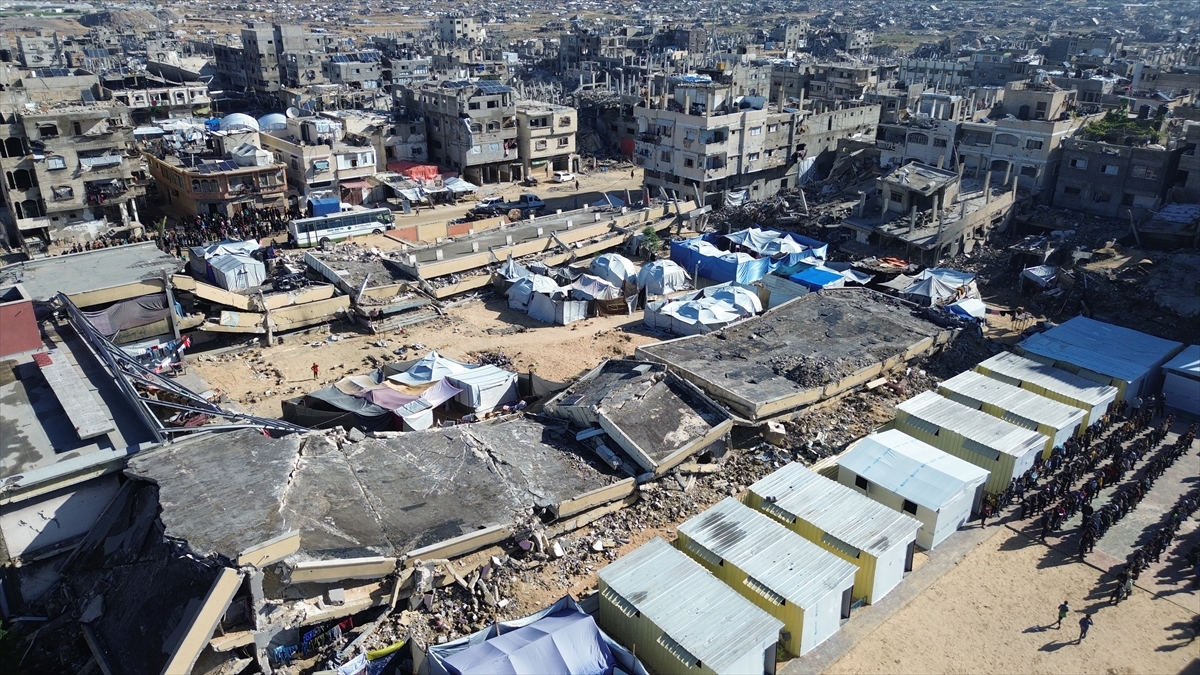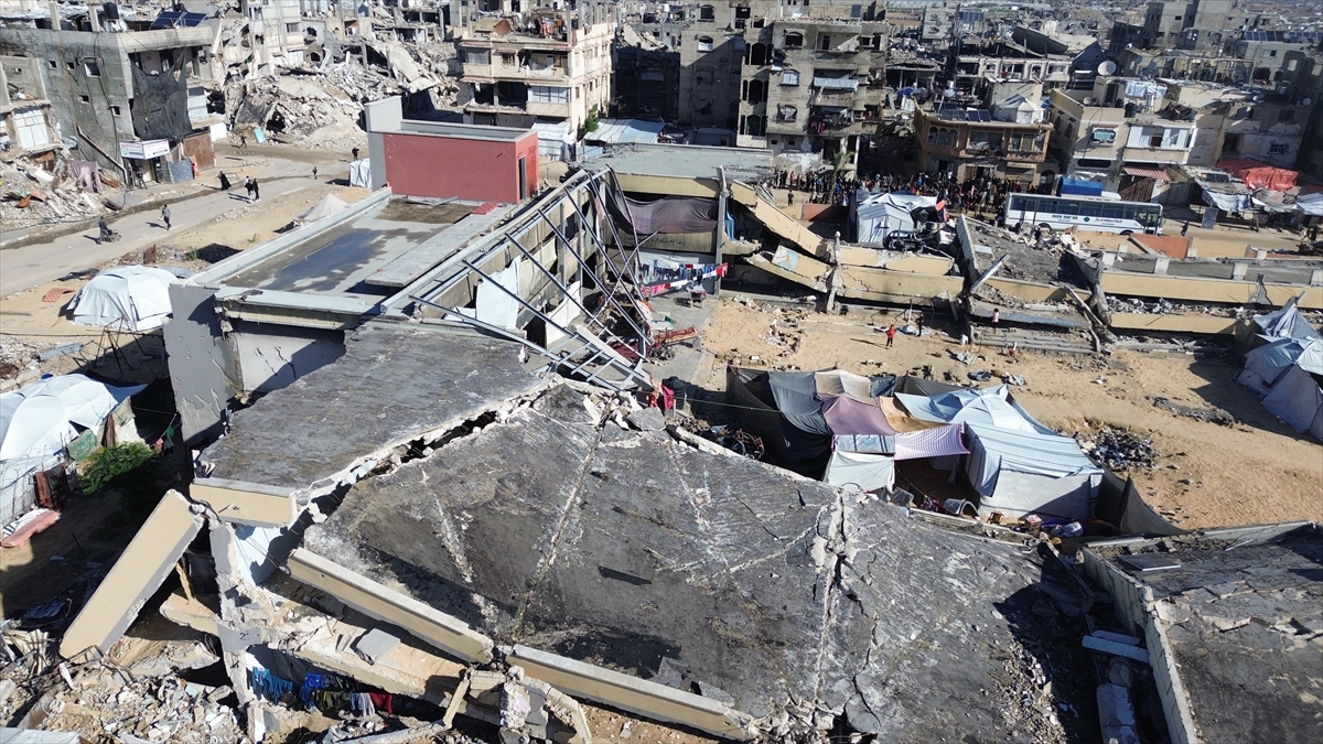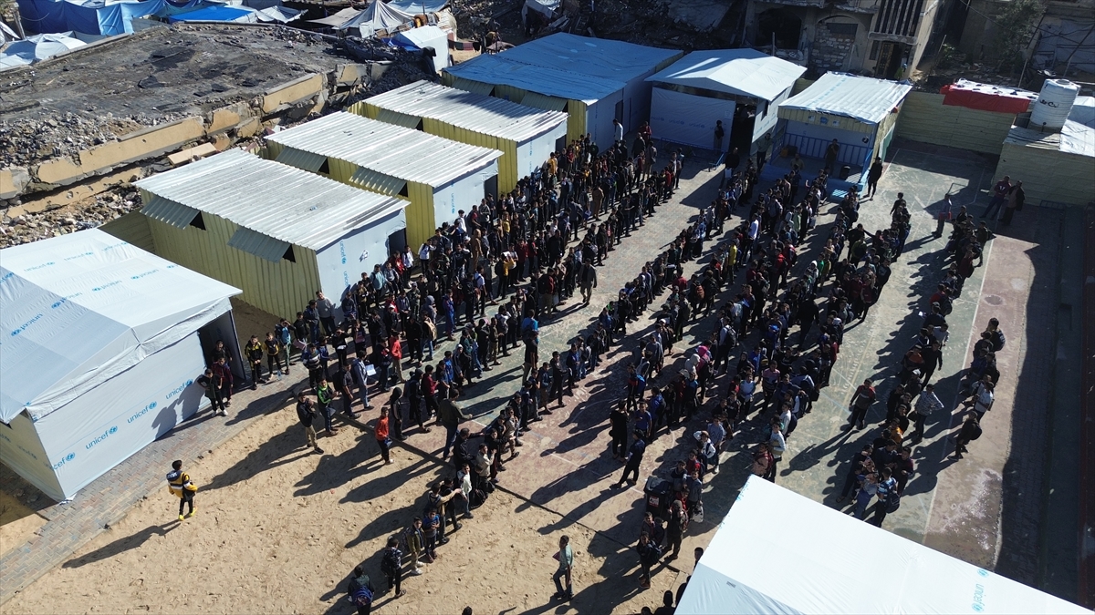 Gazze Şeridi güneyindeki Han Yunus kentinde yaşayan öğrenciler, İsrail saldırısında tamamen yıkılan okulda tüm zorluklara rağmen eğitime devam ediyor.