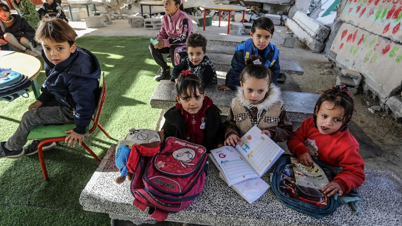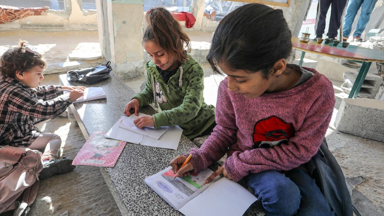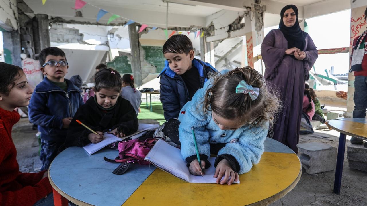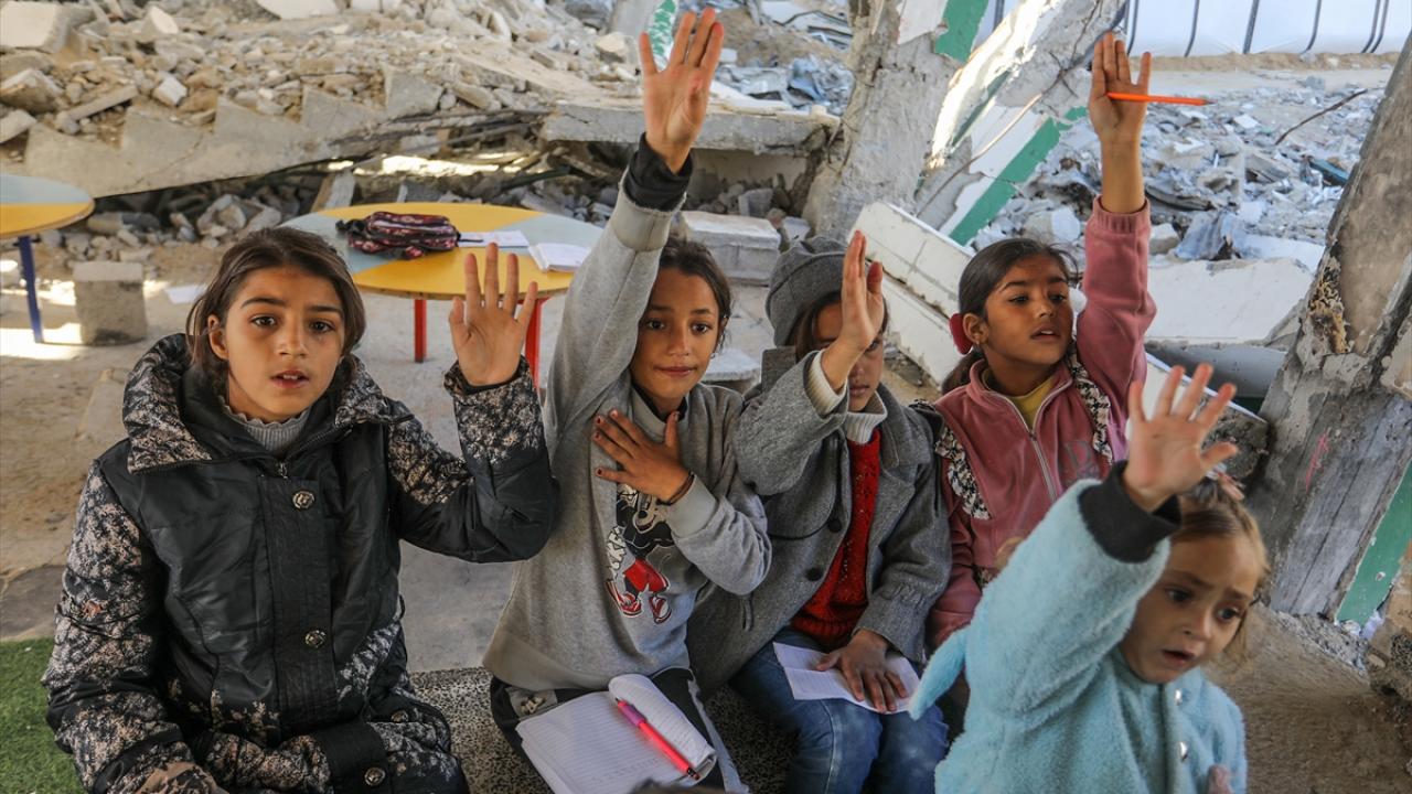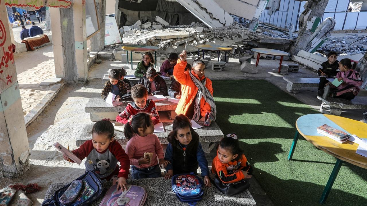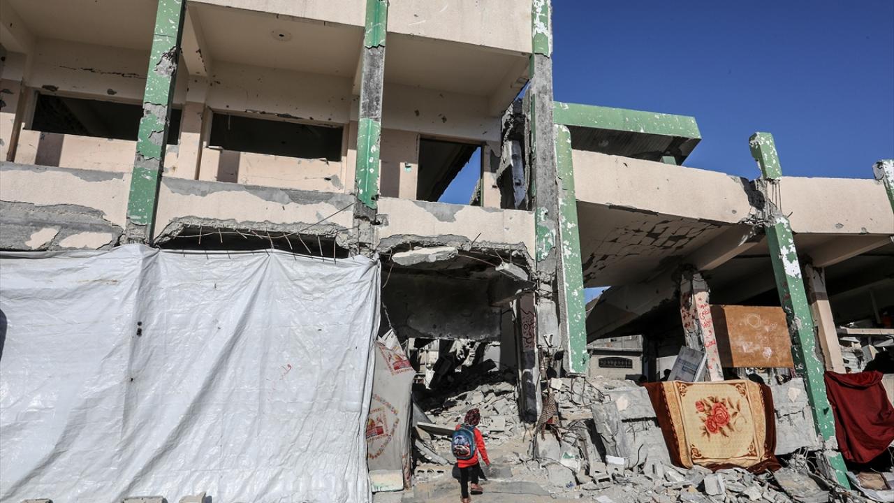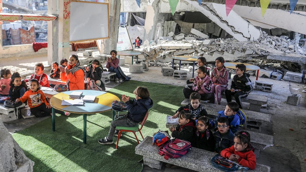 Filistinli öğretmen Doha el-Attar, İsrail ordusunun Gazze Şeridi'nin güneyindeki Han Yunus kentine düzenlediği saldırılarda büyük bölümü yıkılan okulun enkazında öğrencilere ders vermeye devam ediyor.