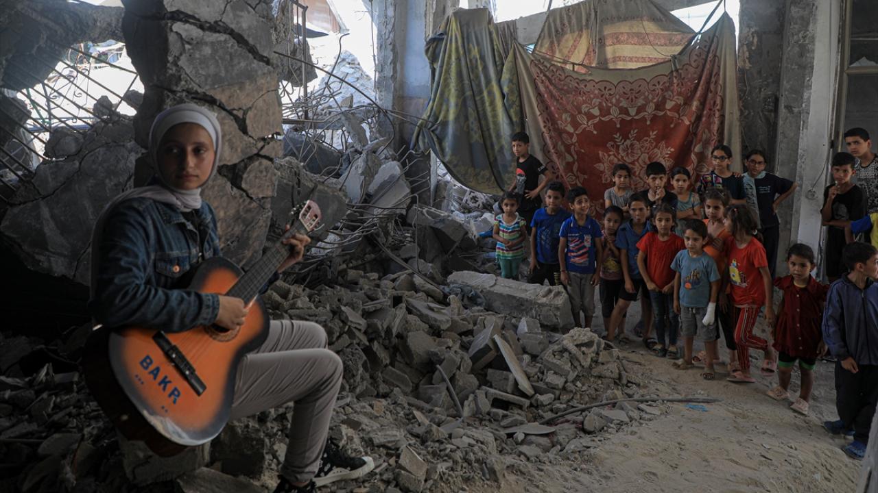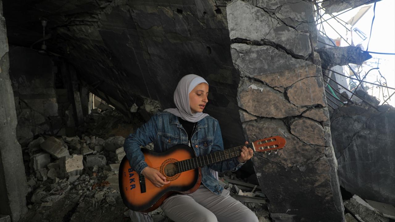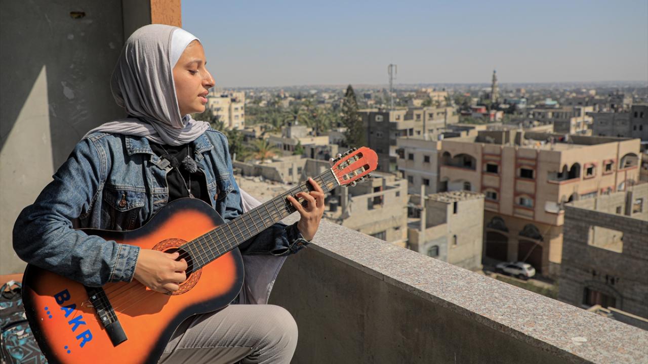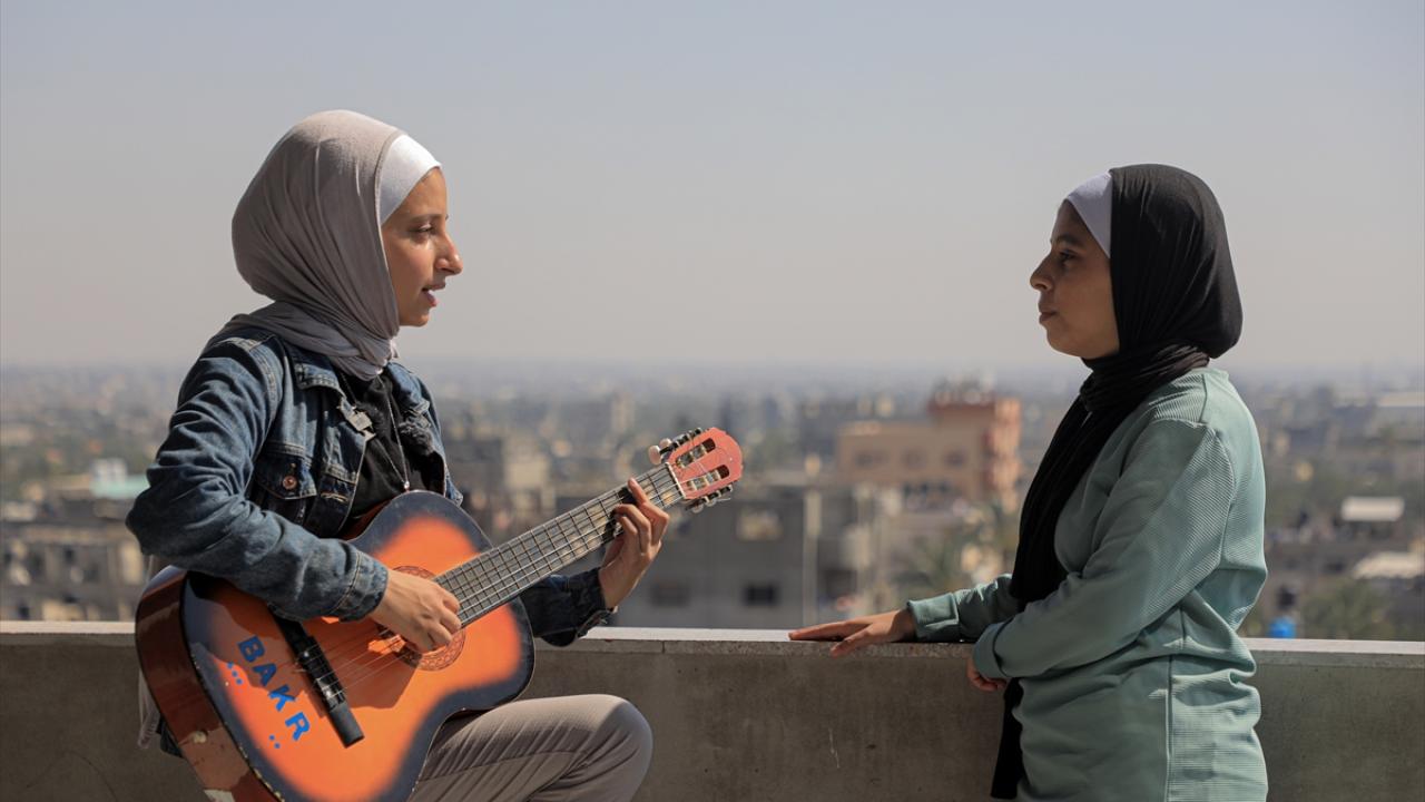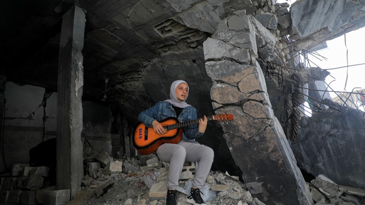 İsrail'in Gazze'ye yönelik saldırılarında evi ile birlikte sahip olduğu enstrümanlarını da kaybeden ve ailesiyle Deyr Belah kentine göç etmek zorunda kalan Filistinli Rahaf Nasır, babasının bir arkadaşından ödünç aldığı gitarı çalarak ve şarkı söyleyerek zorlu savaş koşullarındaki Gazzelilerin yaşadığı acıları anlatıyor.