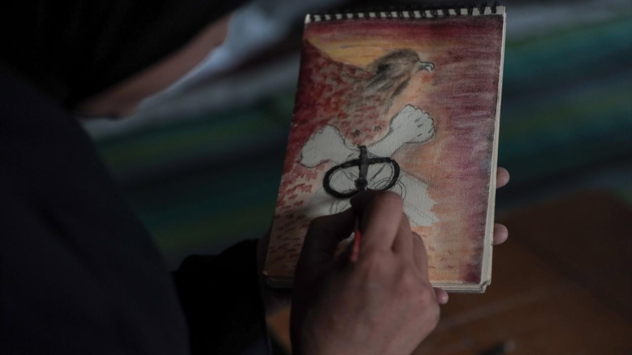 "İçimdeki duyguları resimlerle dışa vuruyorum. Kelimelerle ifade edemediklerimi, insanların savaşta neler çektiğini, kağıt ve kalemle anlatıyorum." diyen Guneym, sanatın, savaşla açılan yaraları iyileştirici yönüne dikkati çekti.
